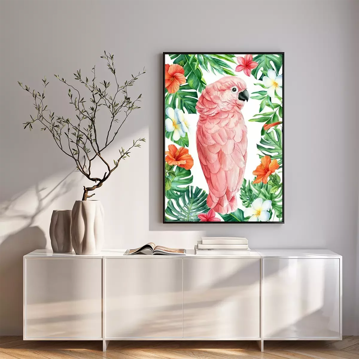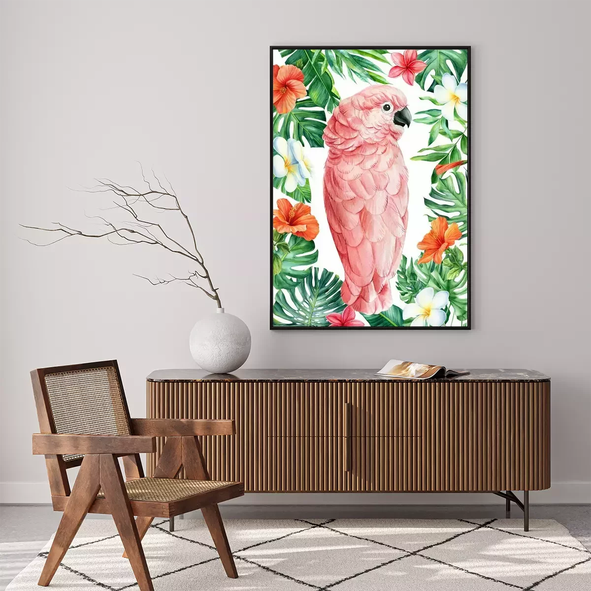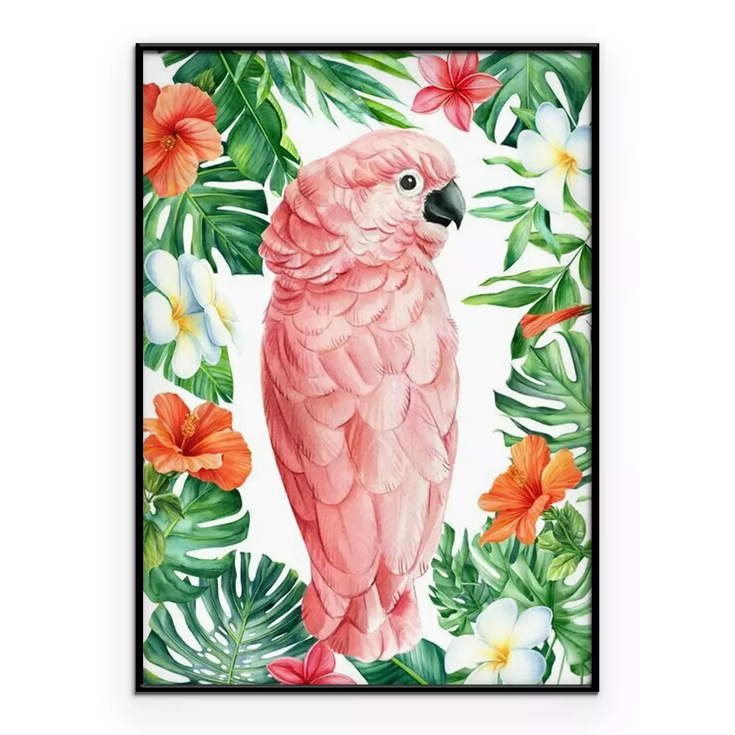 Poster Rosa Papageien- und Hibiskusblüten