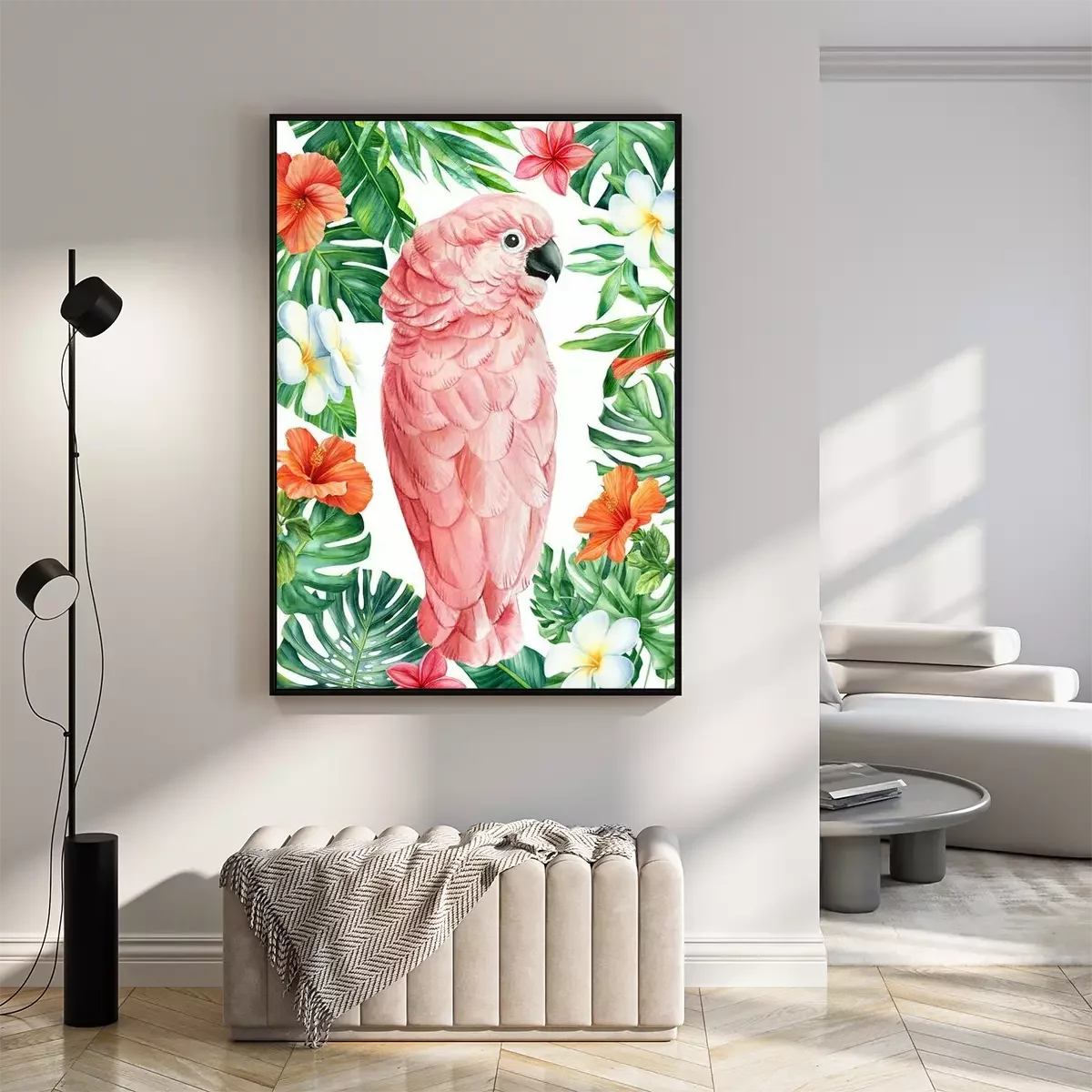 Poster: Rosa Papageien- und Hibiskusblüten