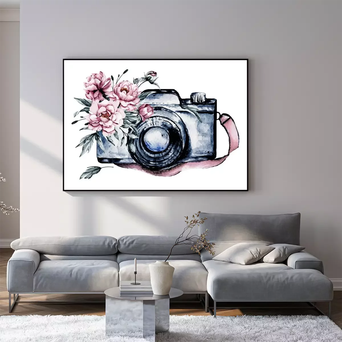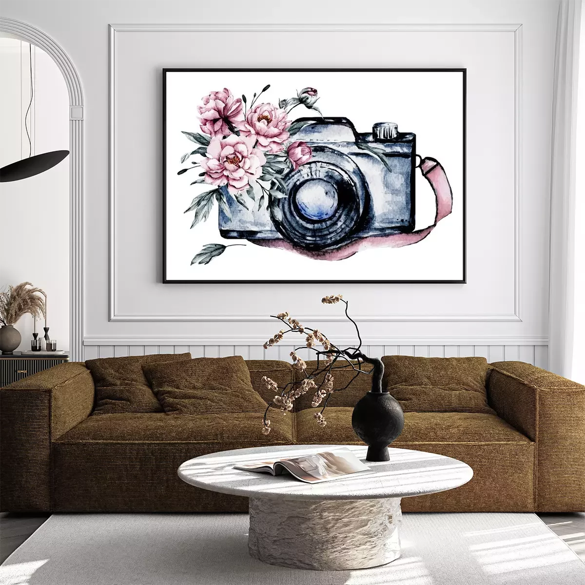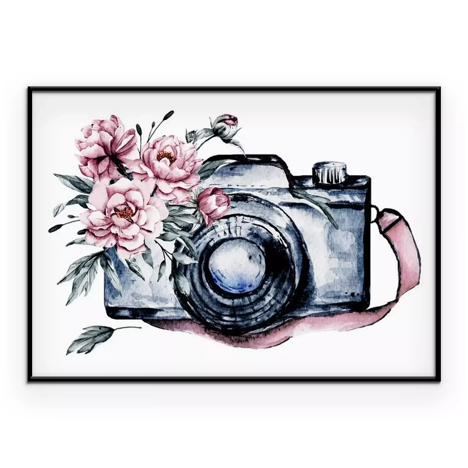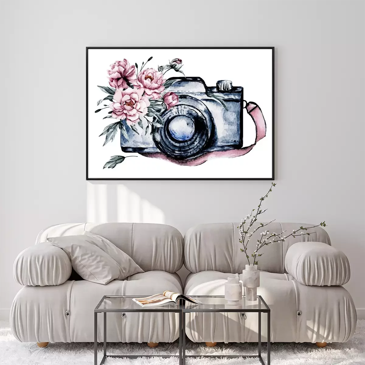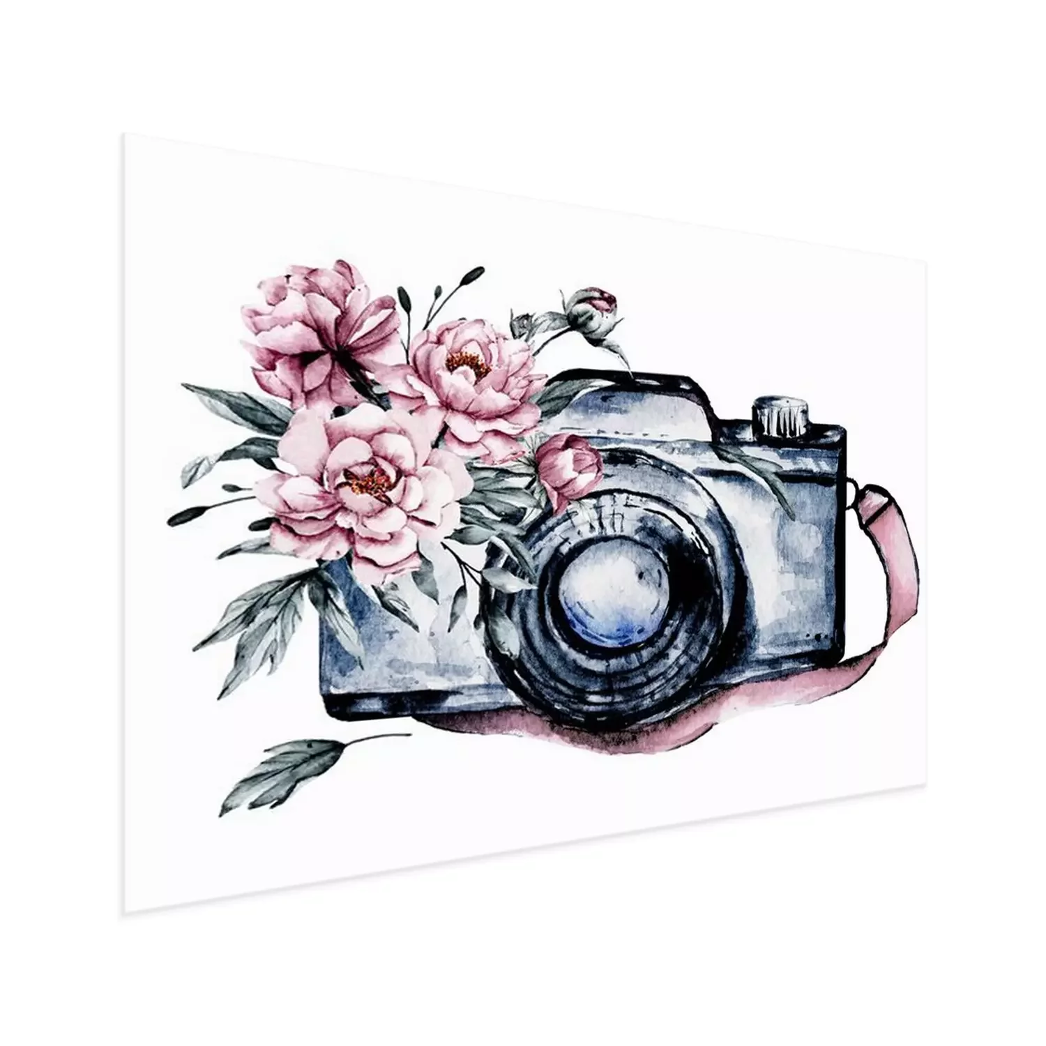 Poster: Rosa Pfingstrosen auf einer Aquarellkamera