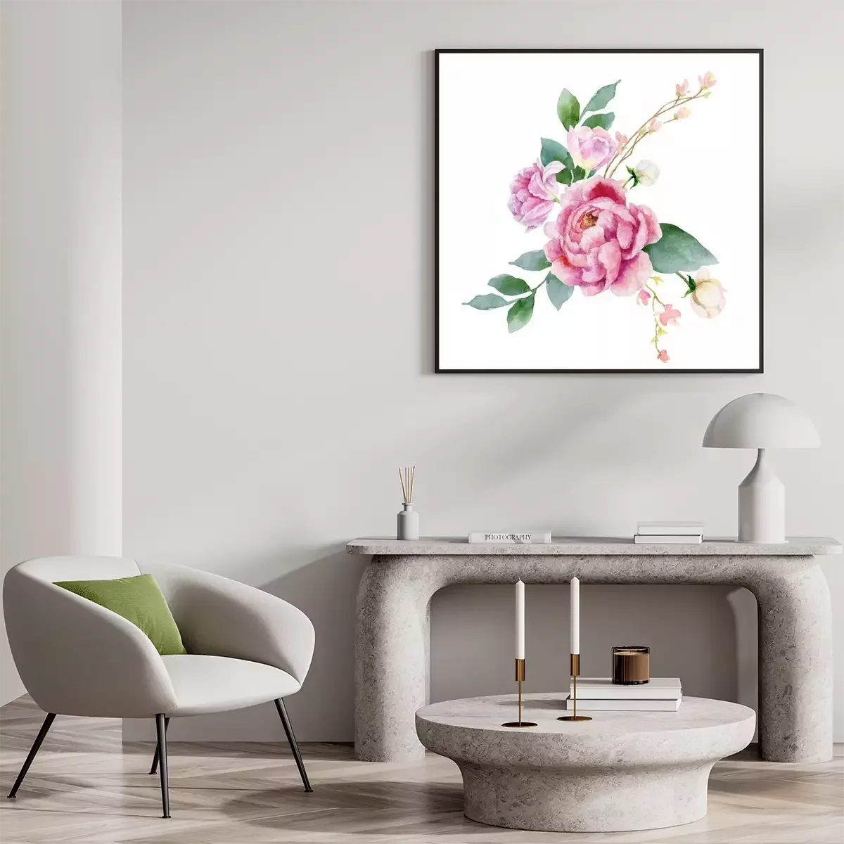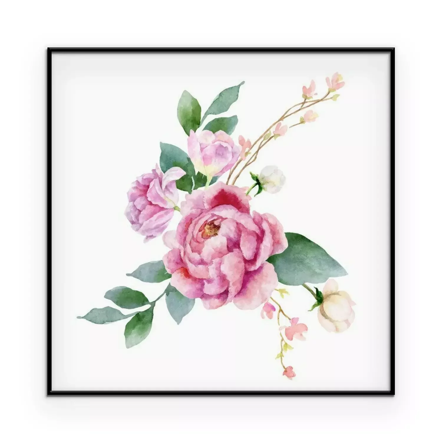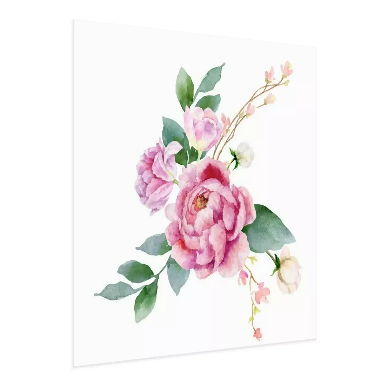 Poster: Rosa Pfingstrosen auf grünen Blättern