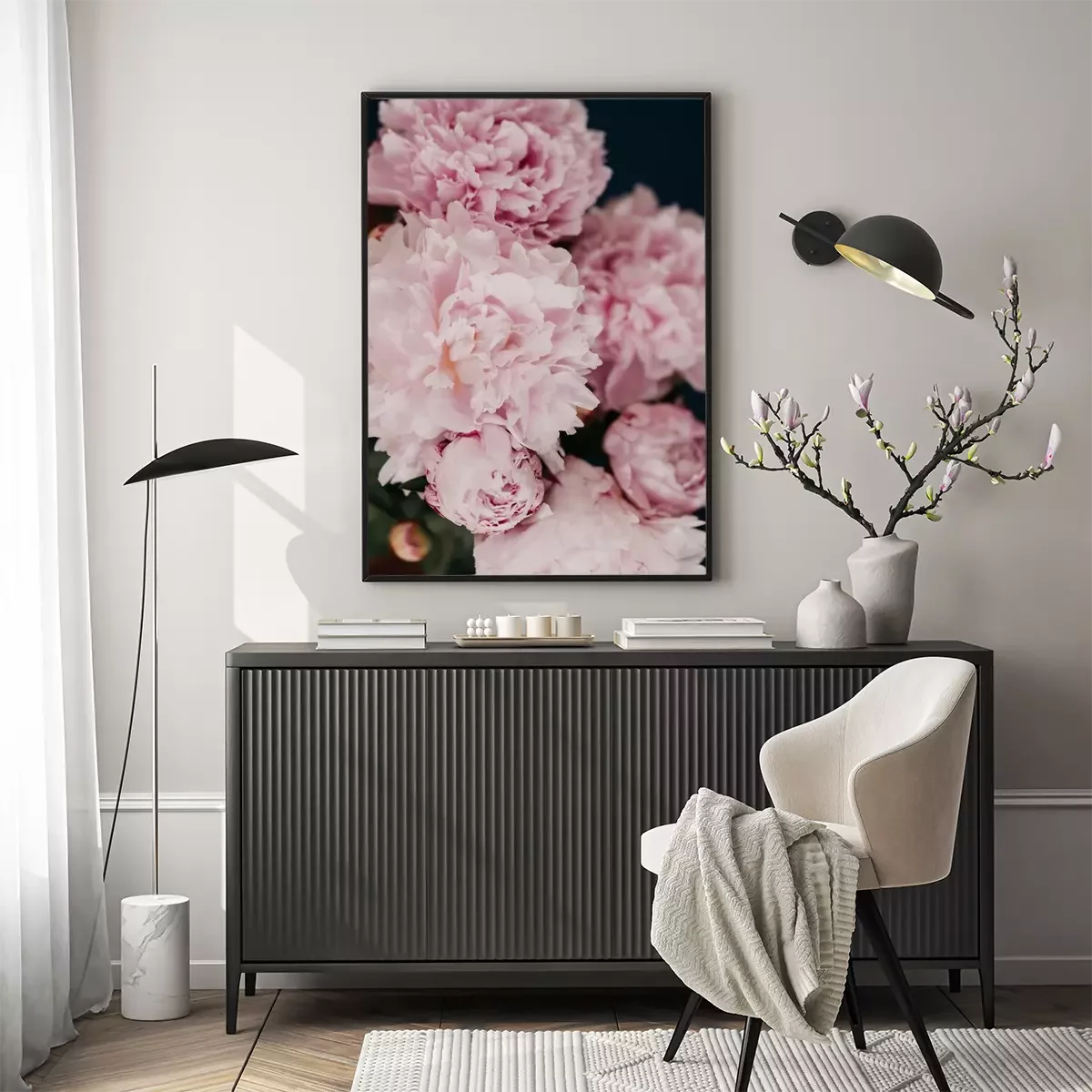 Poster: Rosa Pfingstrosen mit ausgefransten Blütenblättern