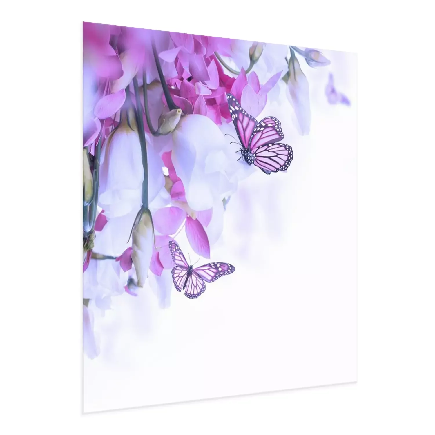 Poster Rosa Schmetterlinge, die Nektar von den Blumen trinken