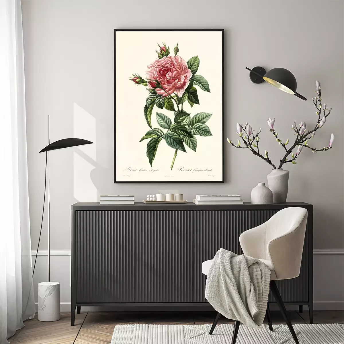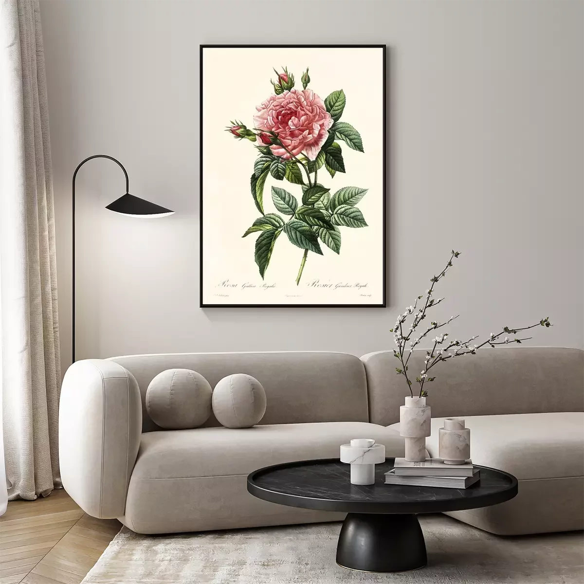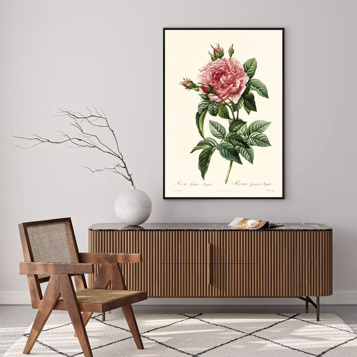 Botanische Grafik rosa Retro-Rose