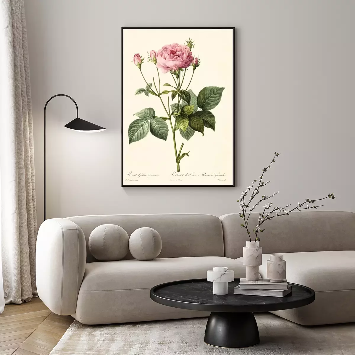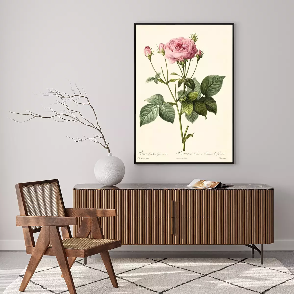 Botanische Grafik rosa Retro-Rose
