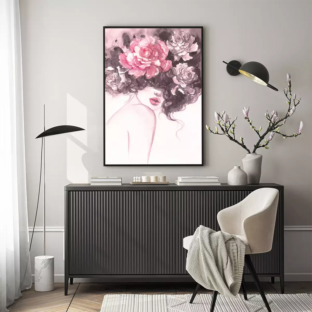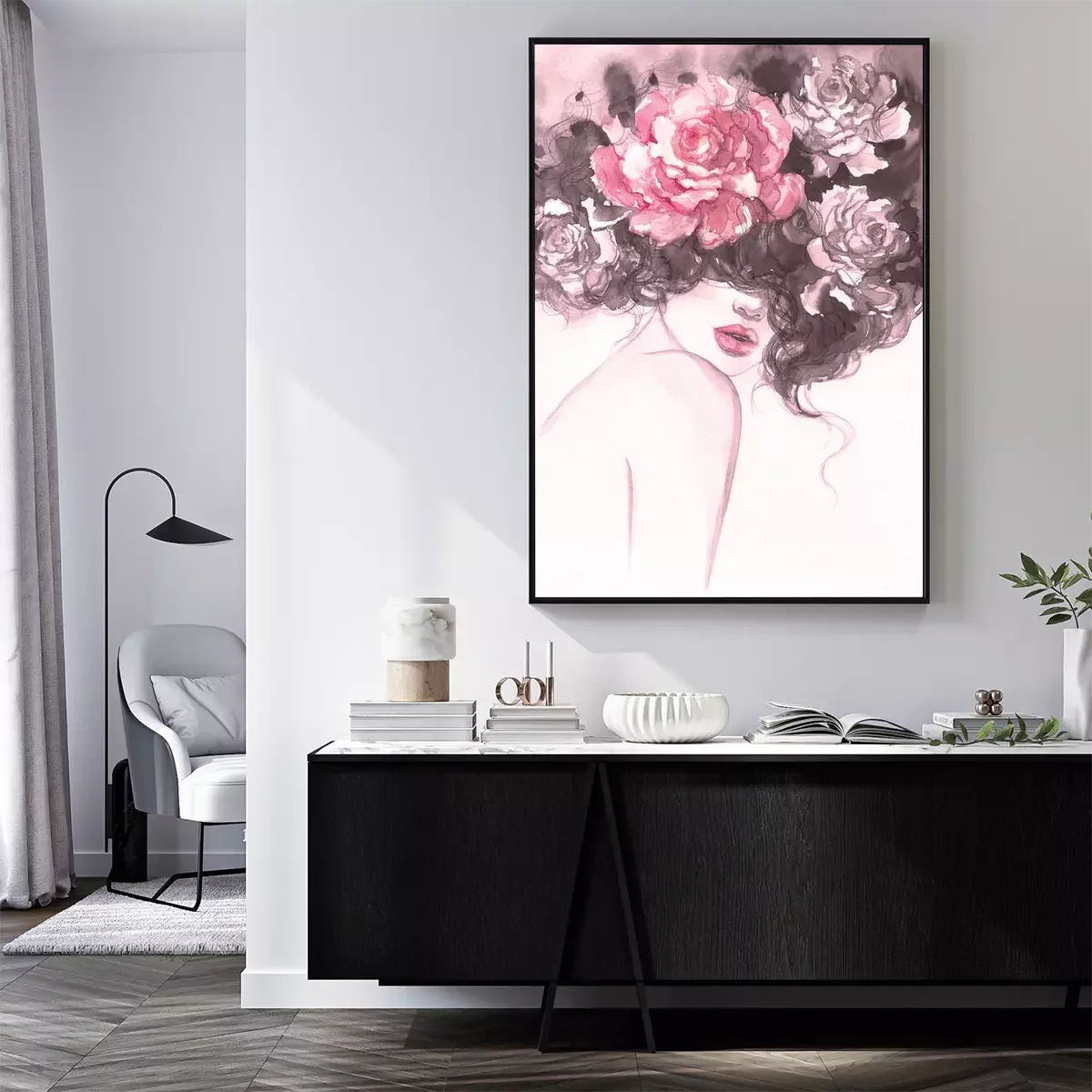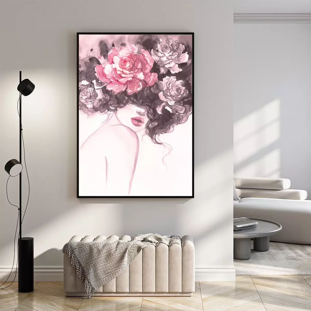 Woman with flowers. beauty background. fashion illustration. watercolor painting