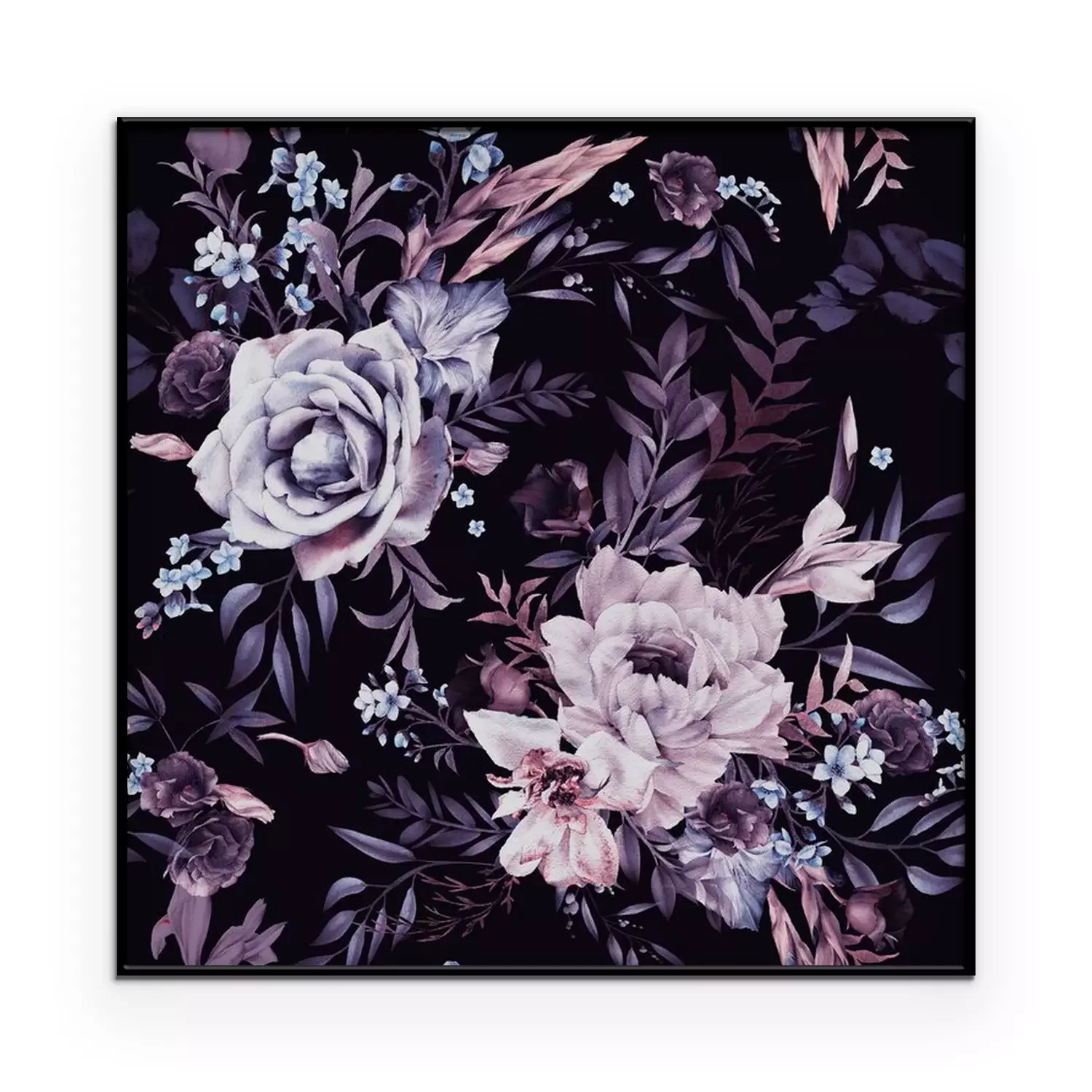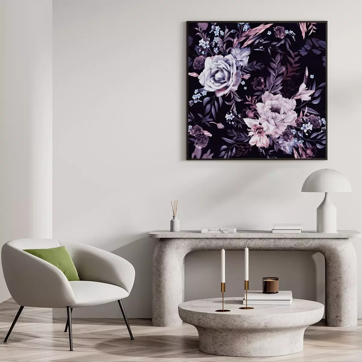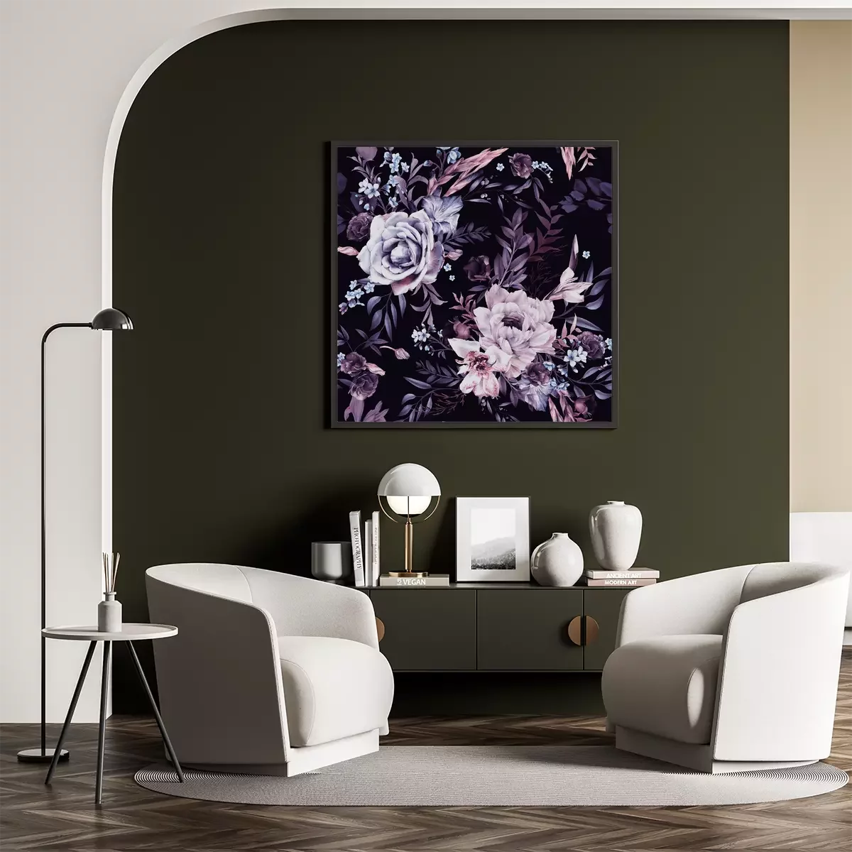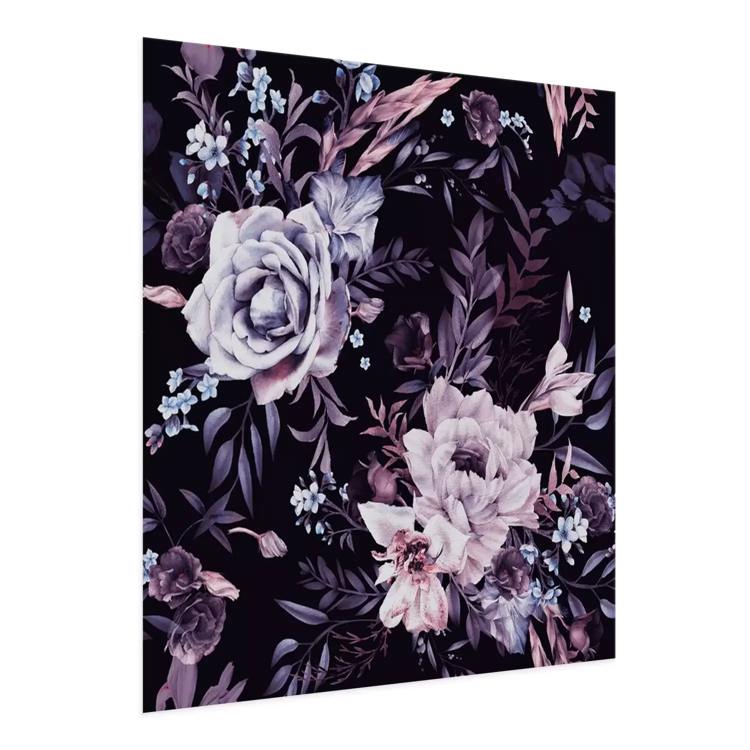 Poster: Rosen und Zweige mit Blättern auf einem dunklen Hintergrund
