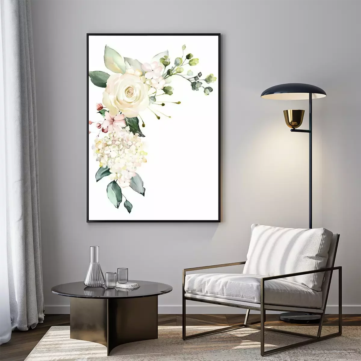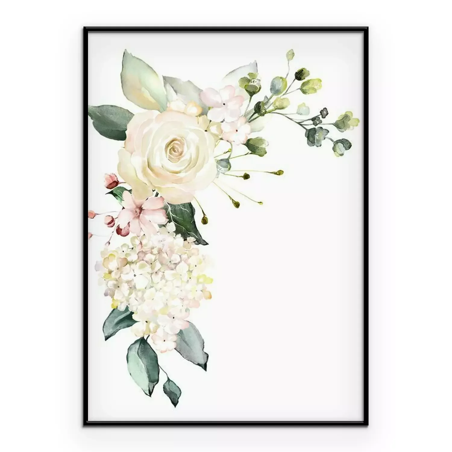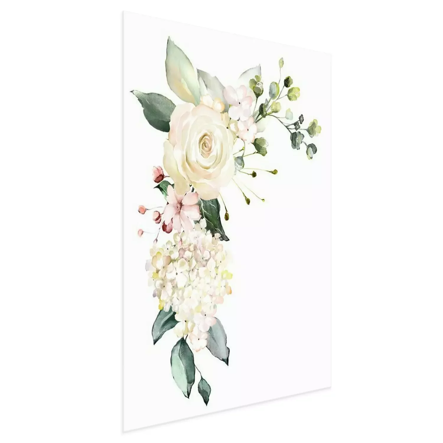 Poster Rosen weiss ätherisches Motiv mit Blättern