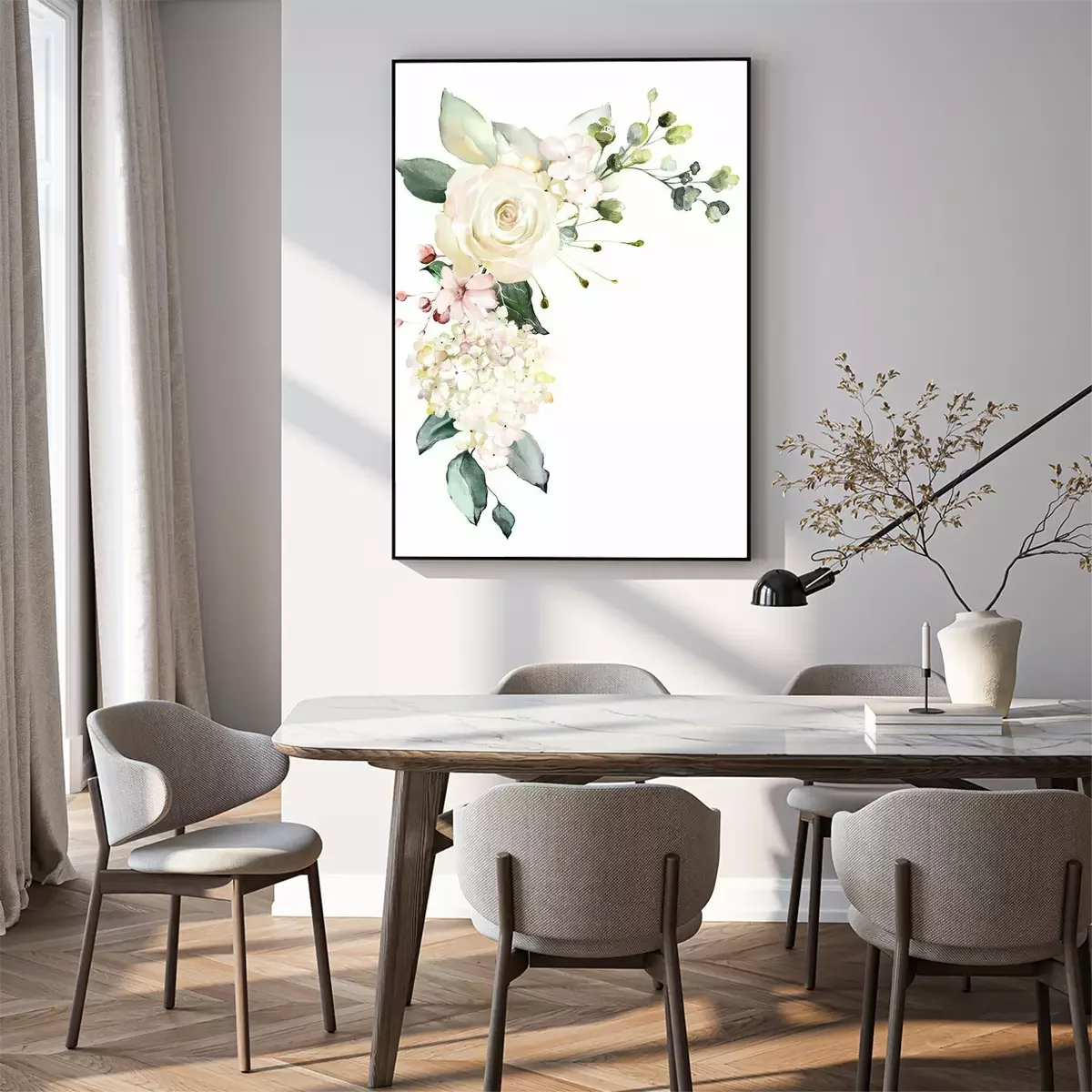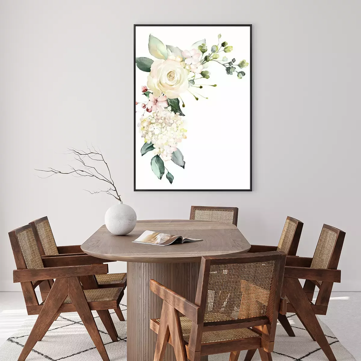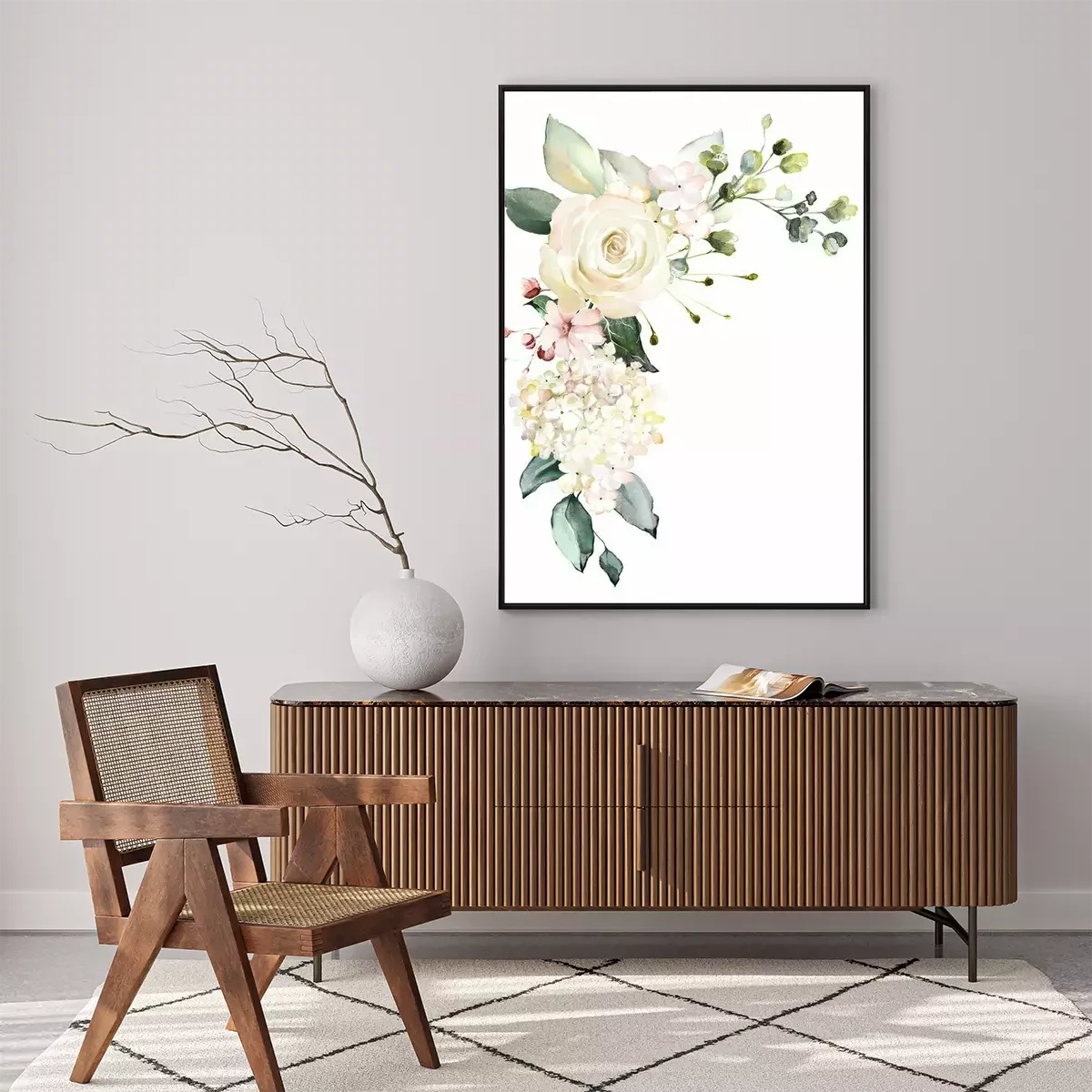 Poster Rosen weiss ätherisches Motiv mit Blättern