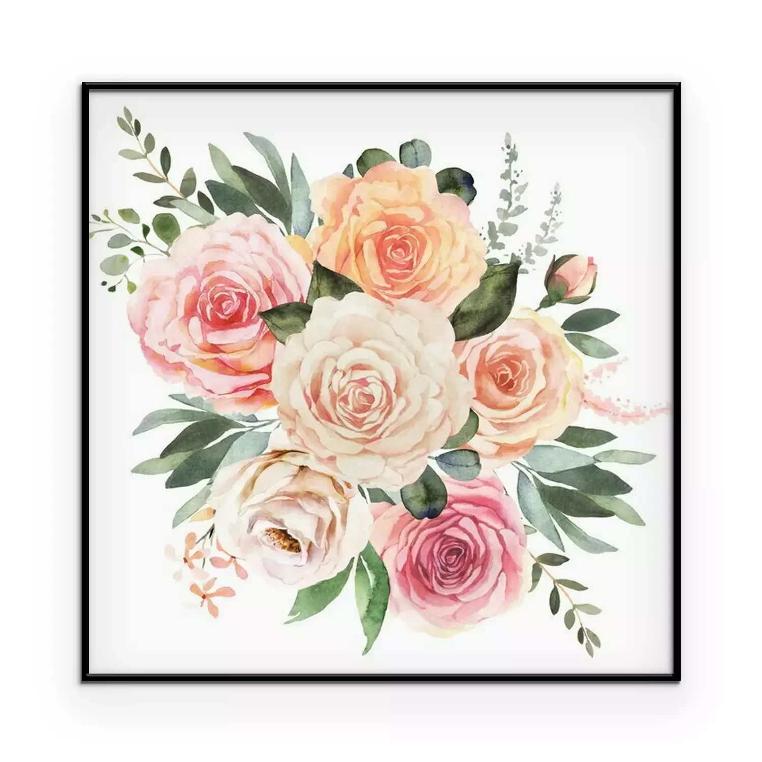 Poster Rosen weiss, Teerosen und rosa Rosen mit Aquarell gemalt
