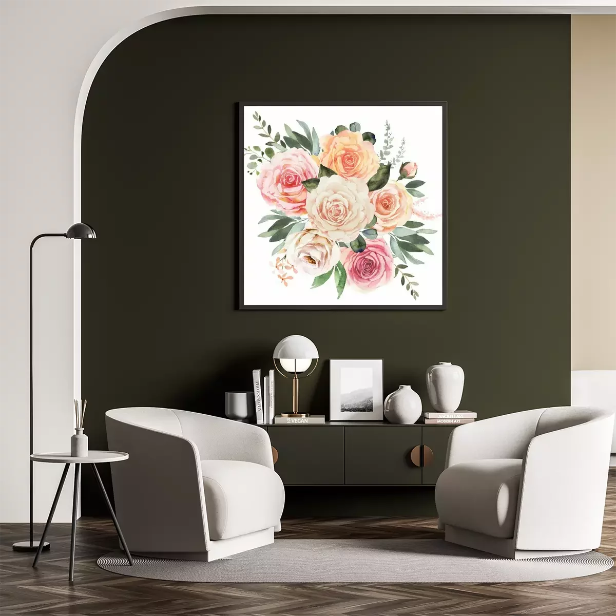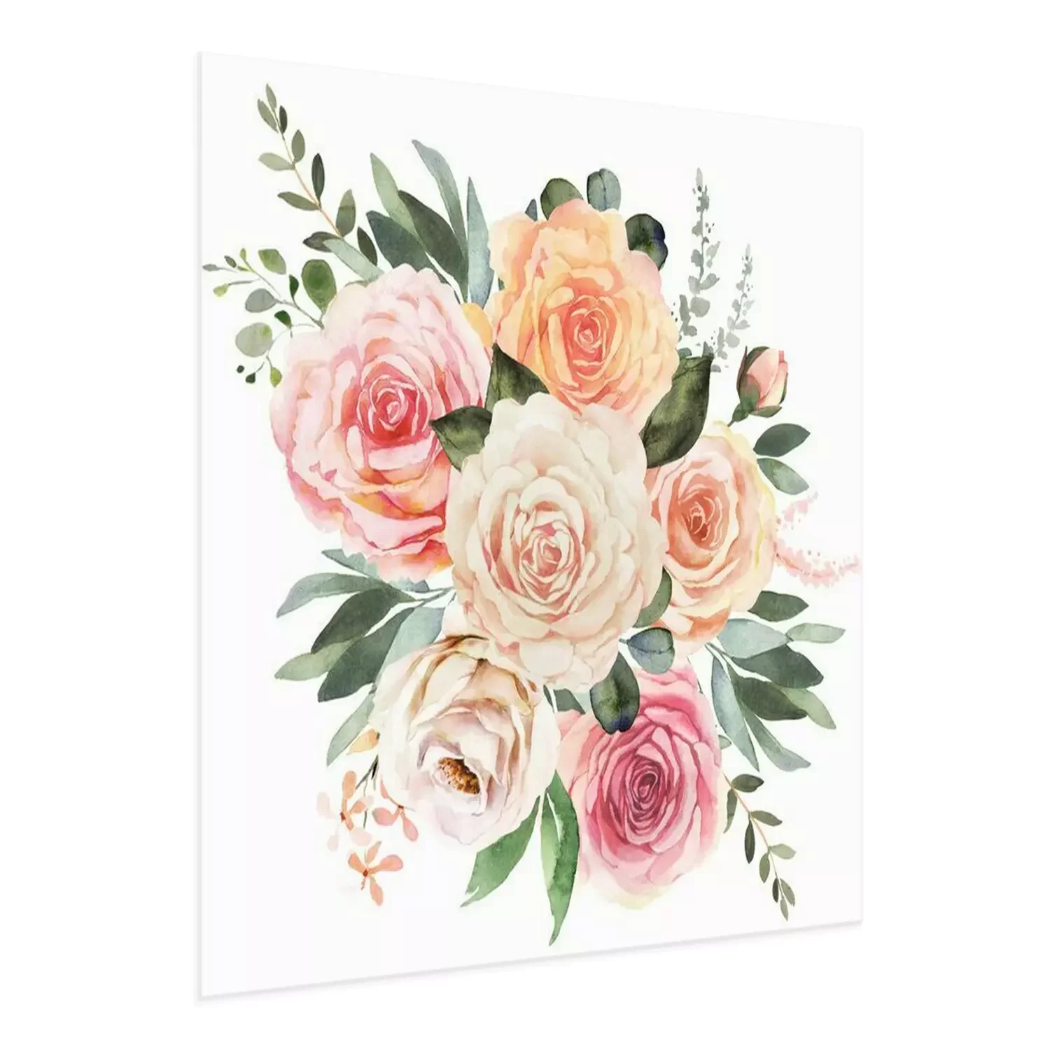 Poster: Rosen weiss, Teerosen und rosa Rosen mit Aquarell gemalt