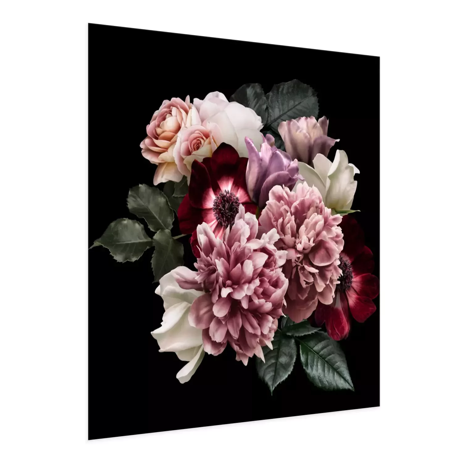 Poster: Rosen weiss und Pfingstrosen in einem romantischen Strauß