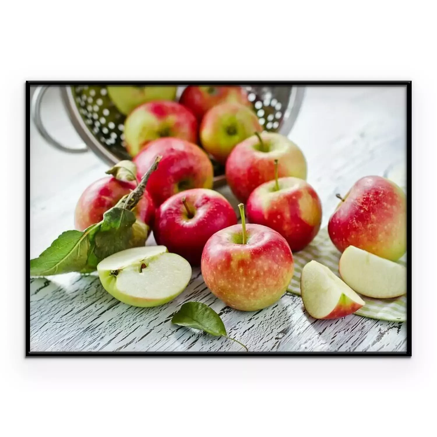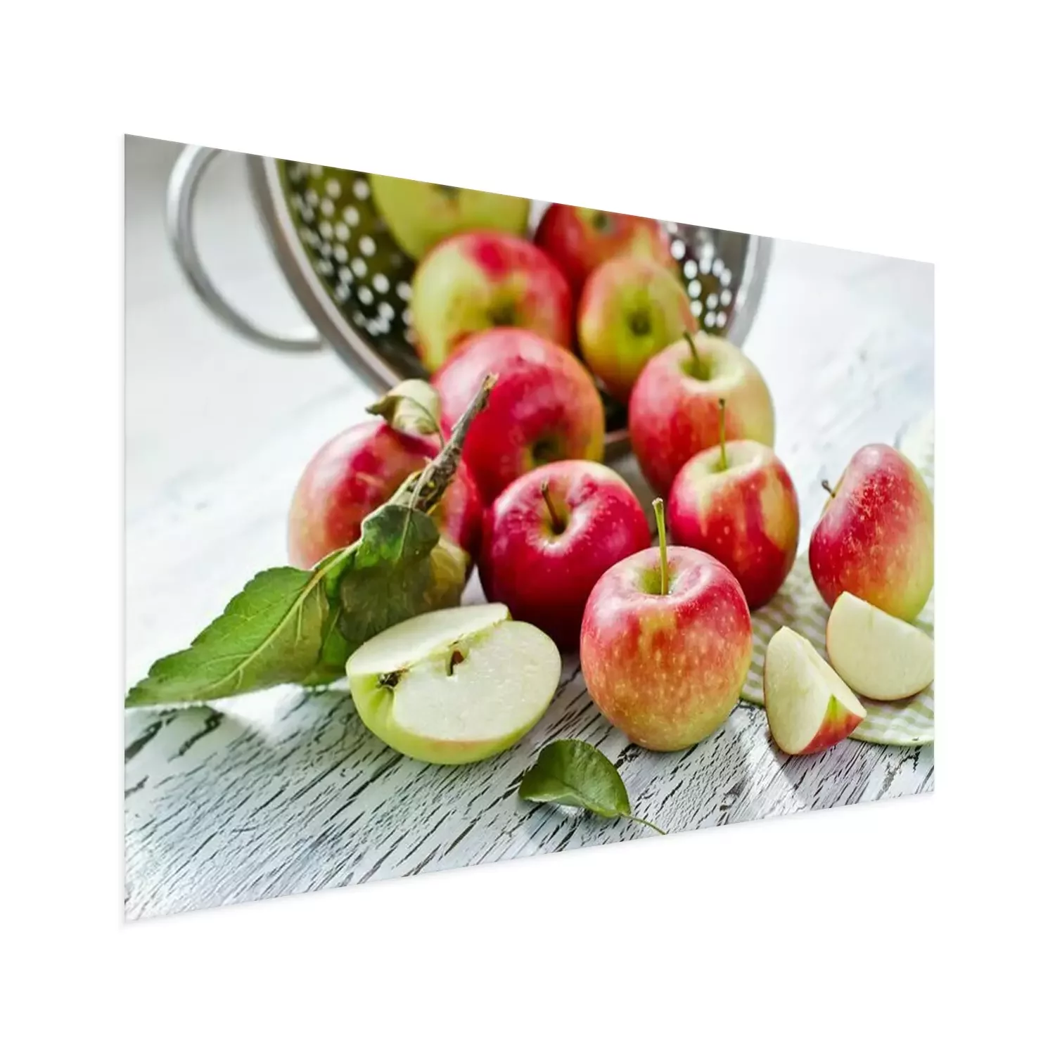 Poster: Rote Äpfel mit Blättern auf einem Holzbrett