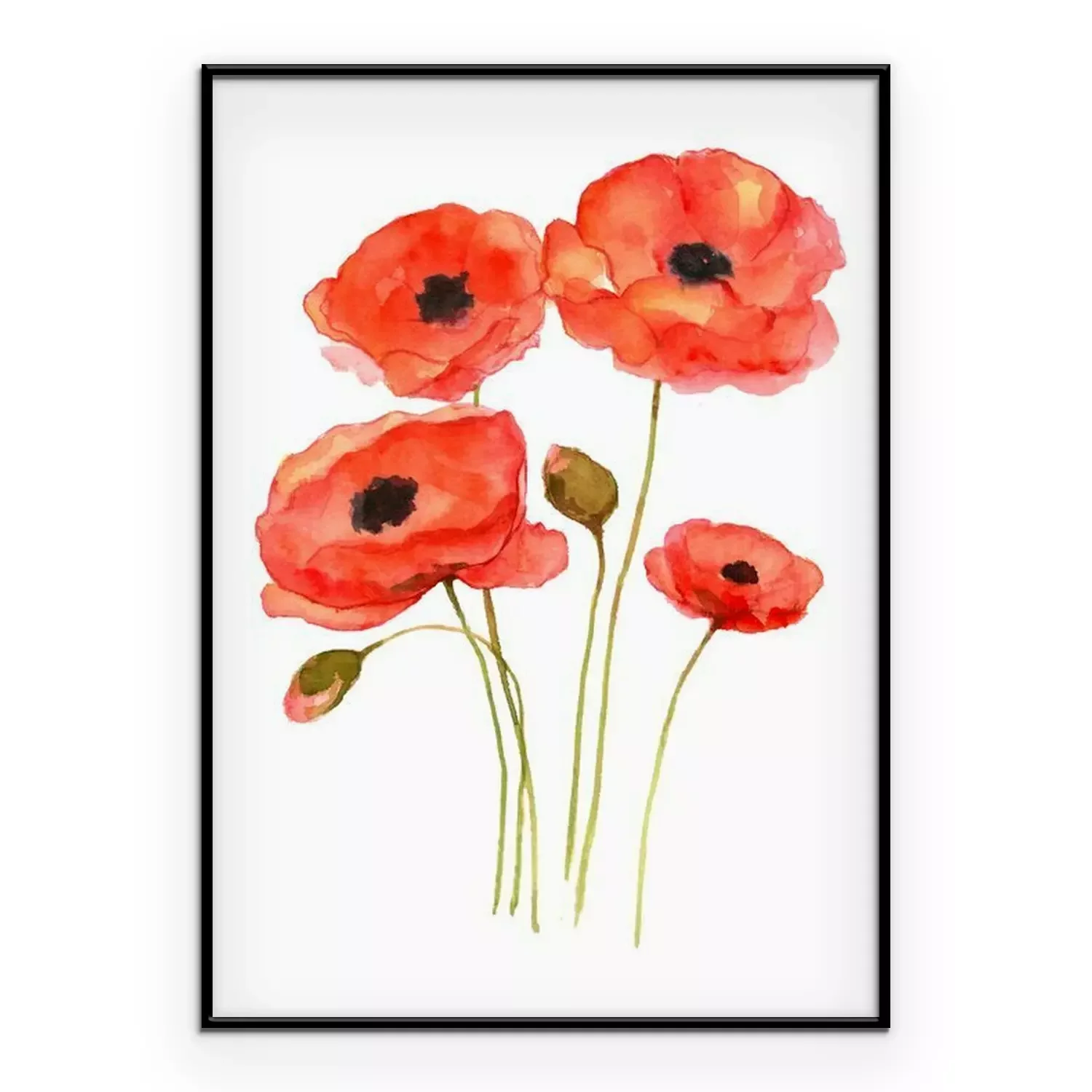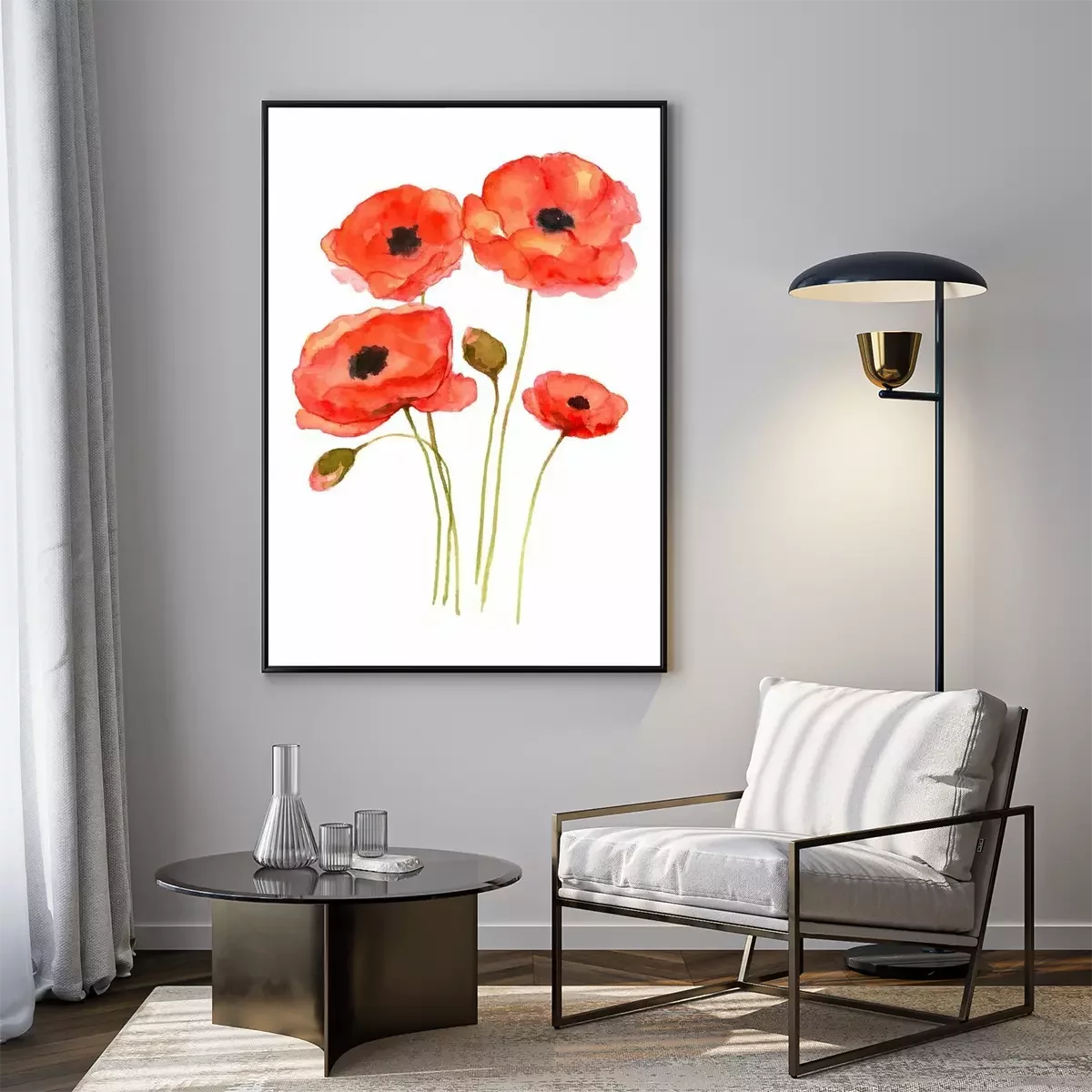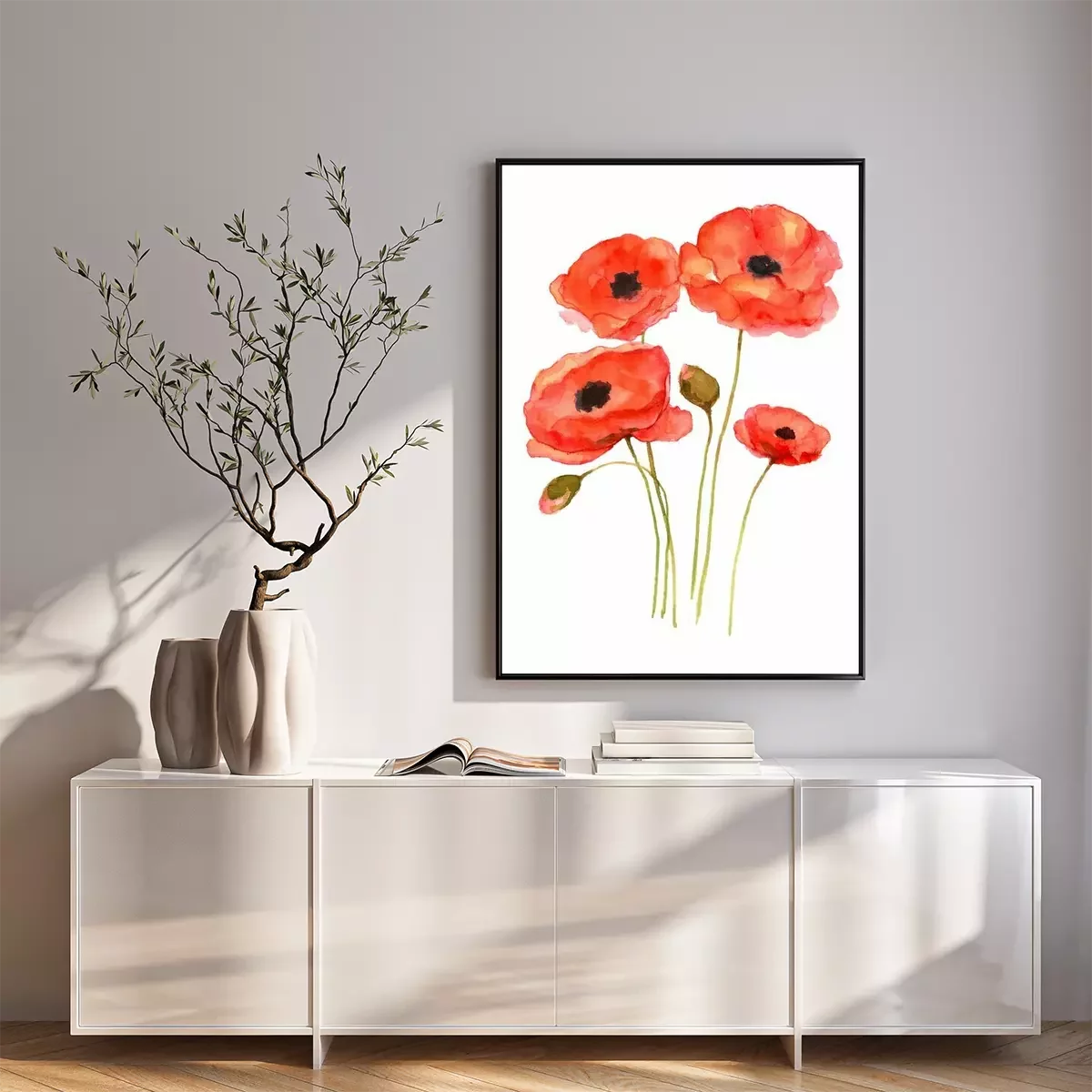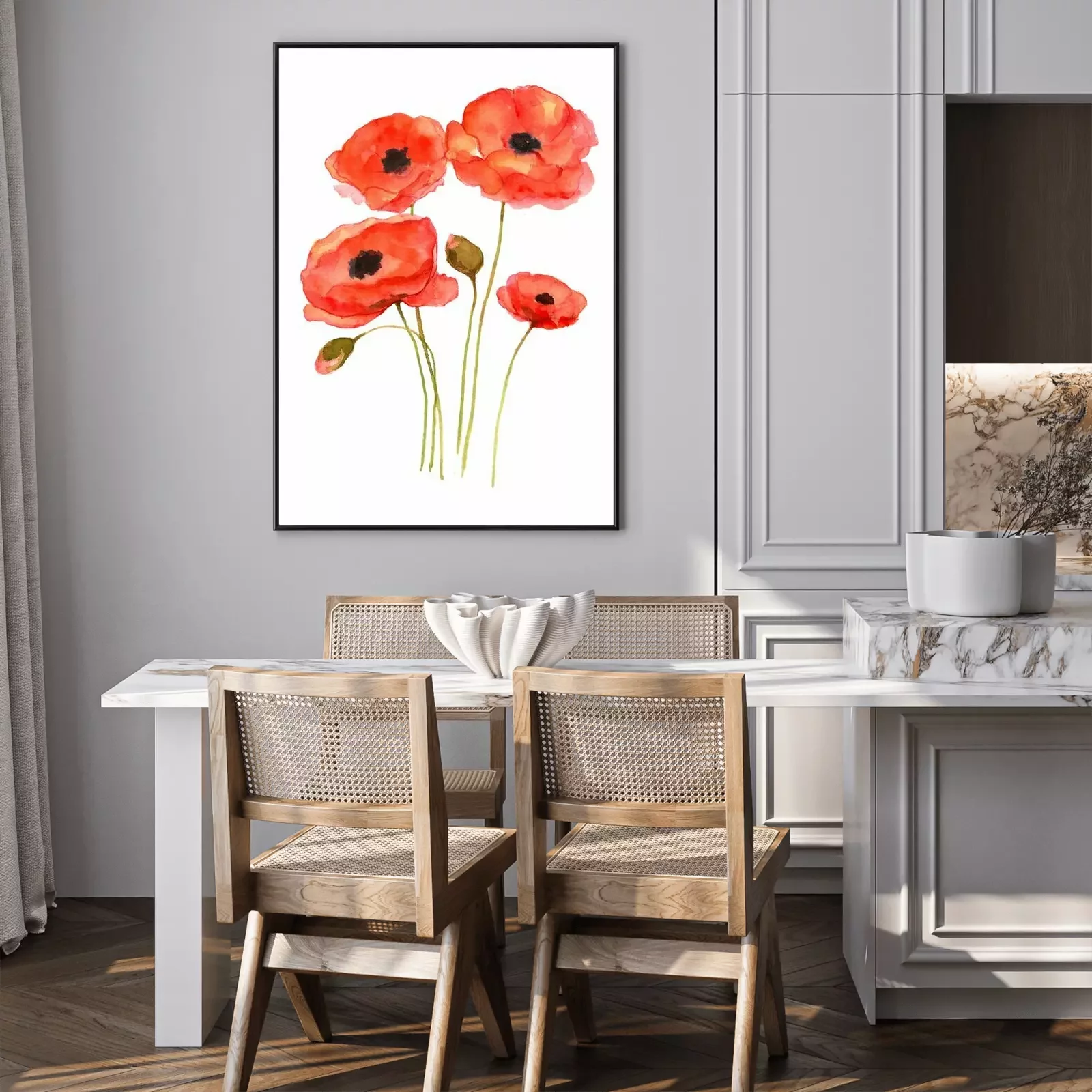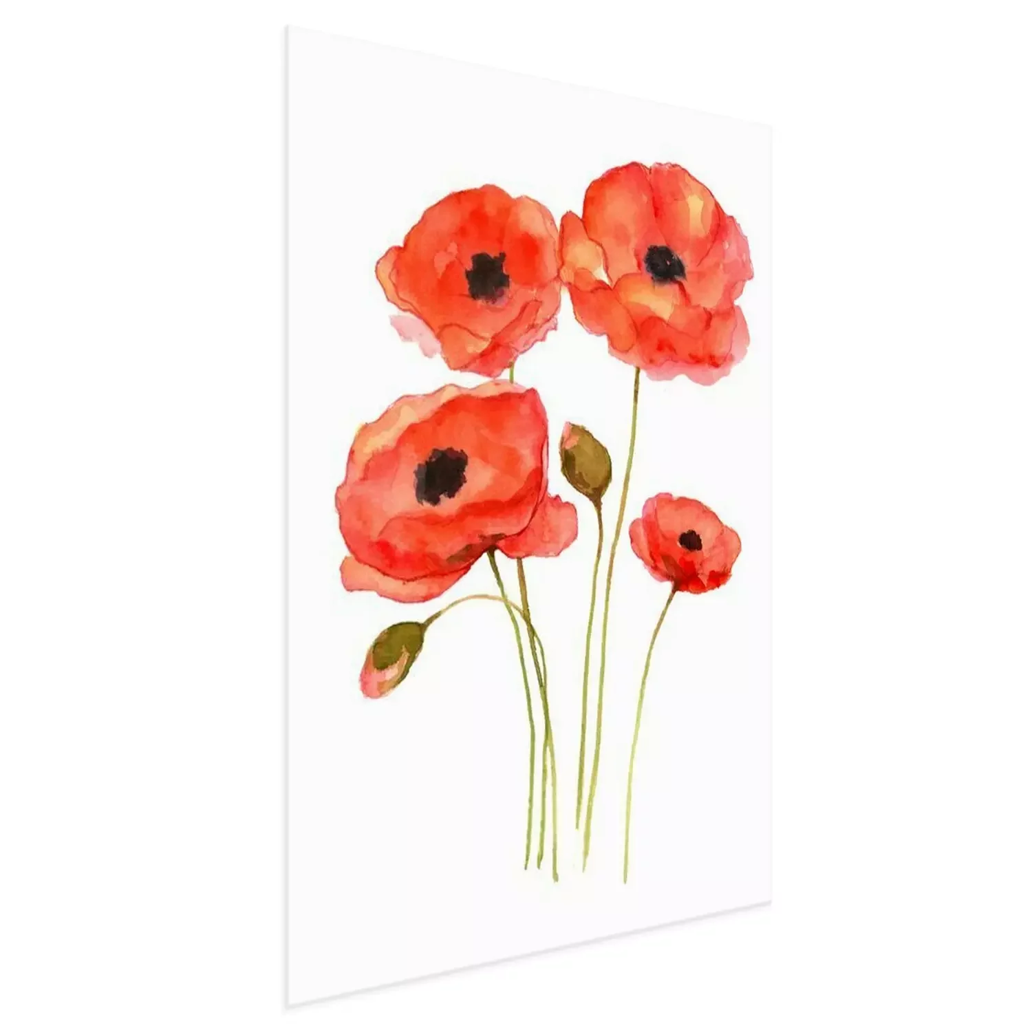 Poster: Rote Mohnblumen auf weißem Hintergrund schattiert