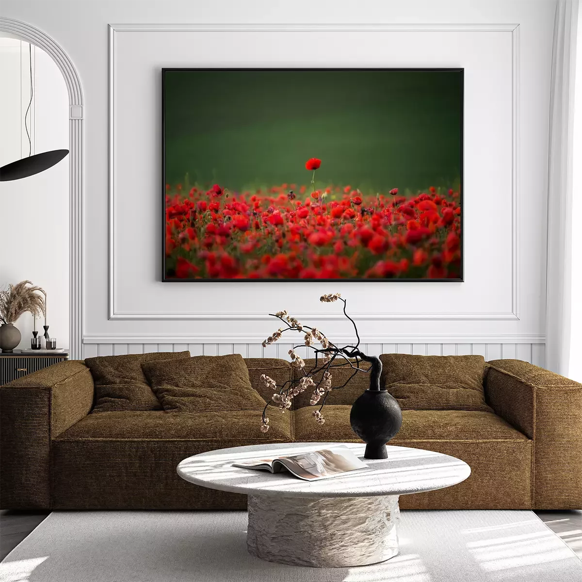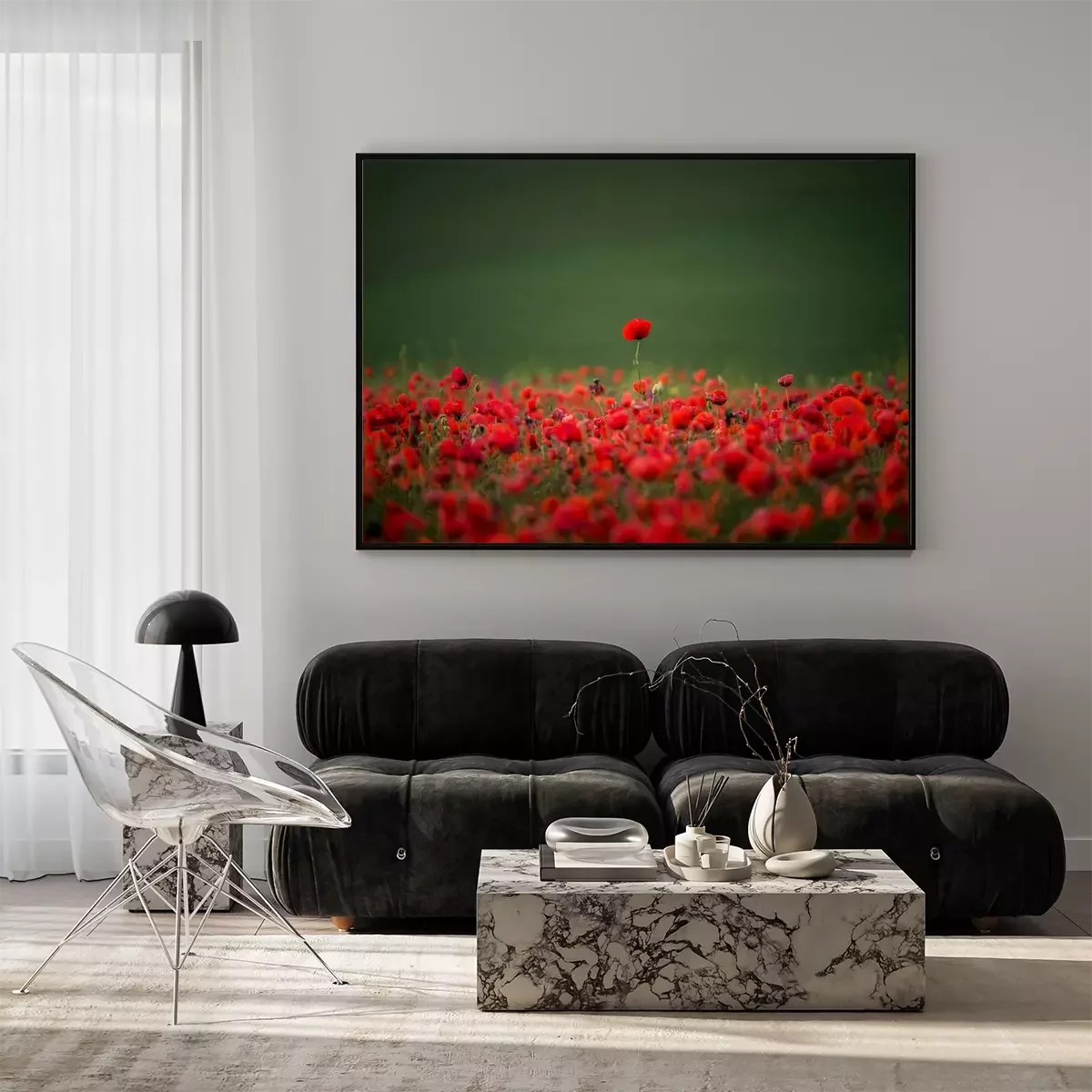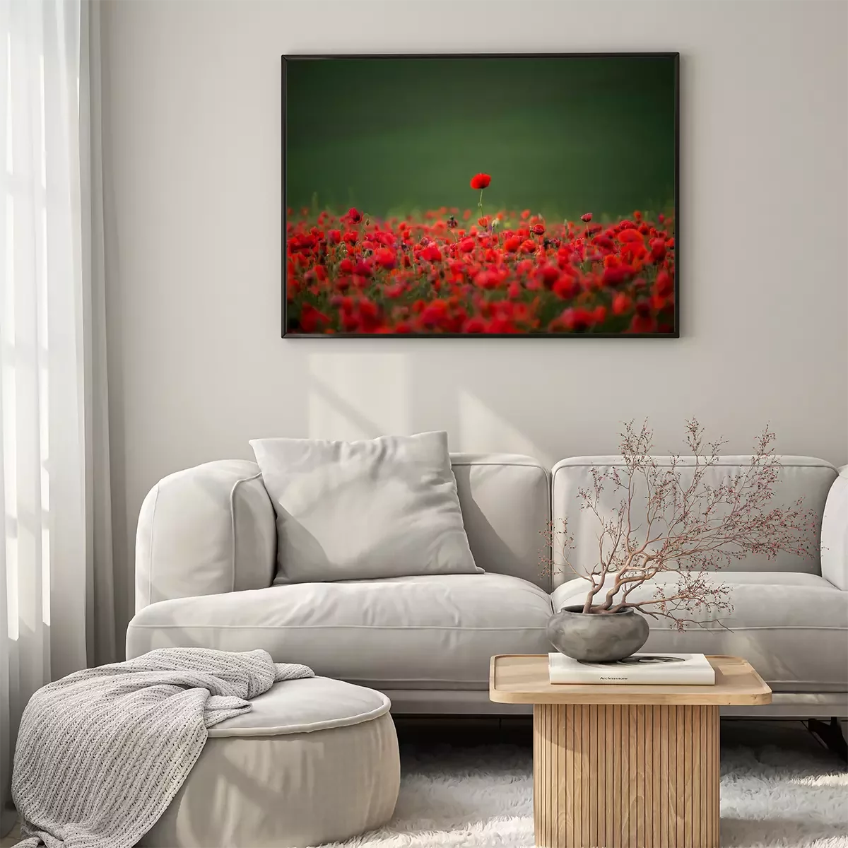 Poster: Rote Mohnblumen bedecken eine grüne Wiese