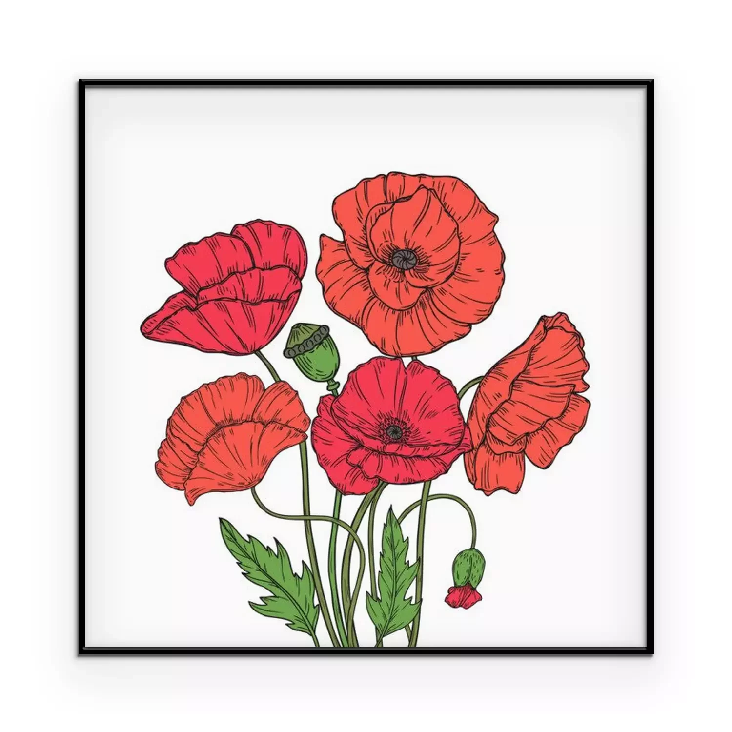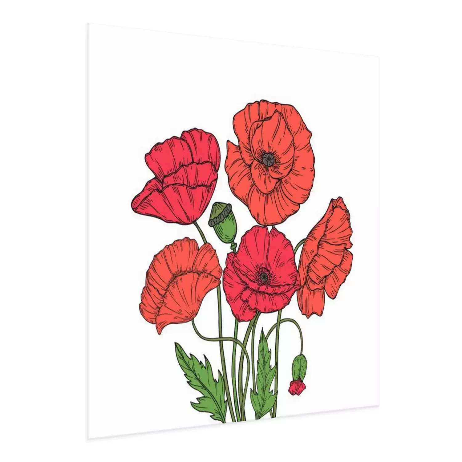 Poster: Rote Mohnblumen Skizze gefüllt mit Farben