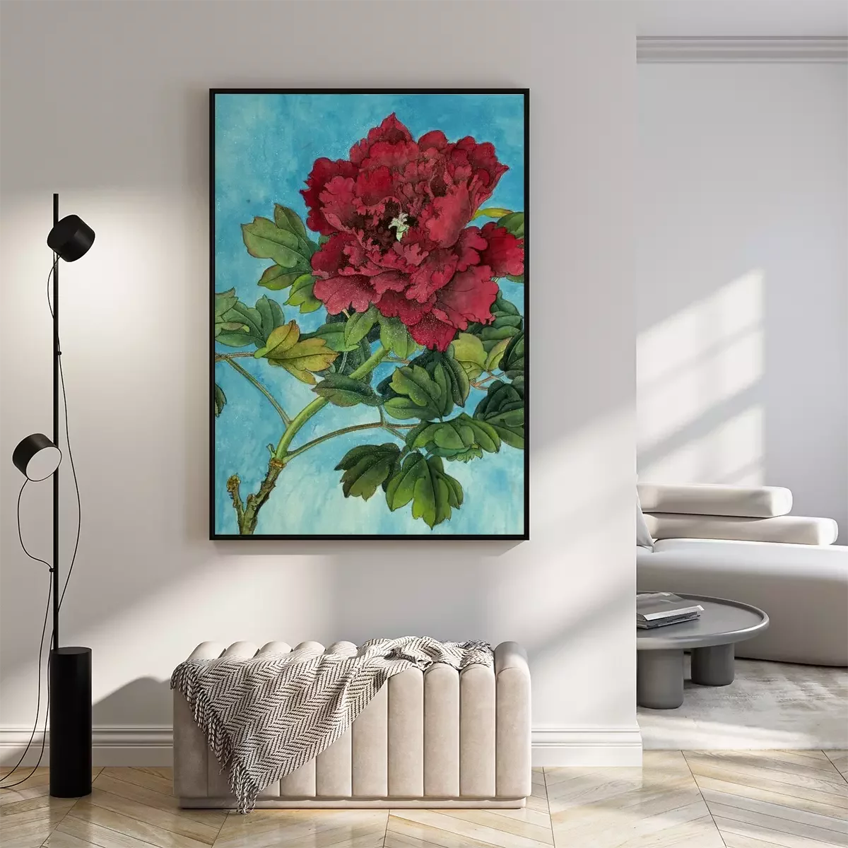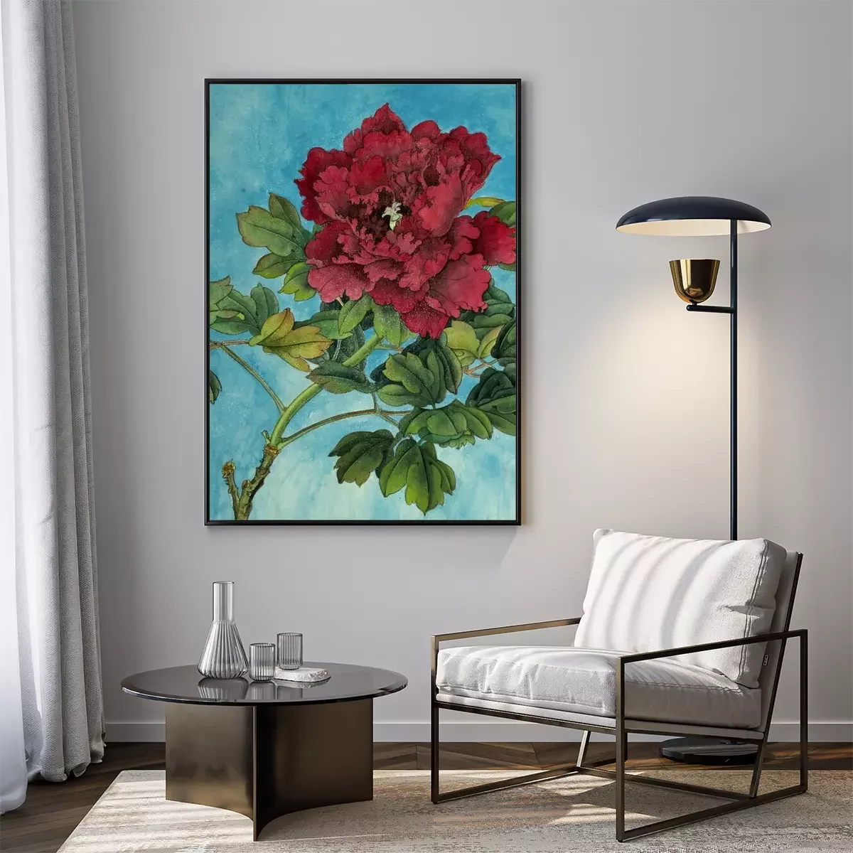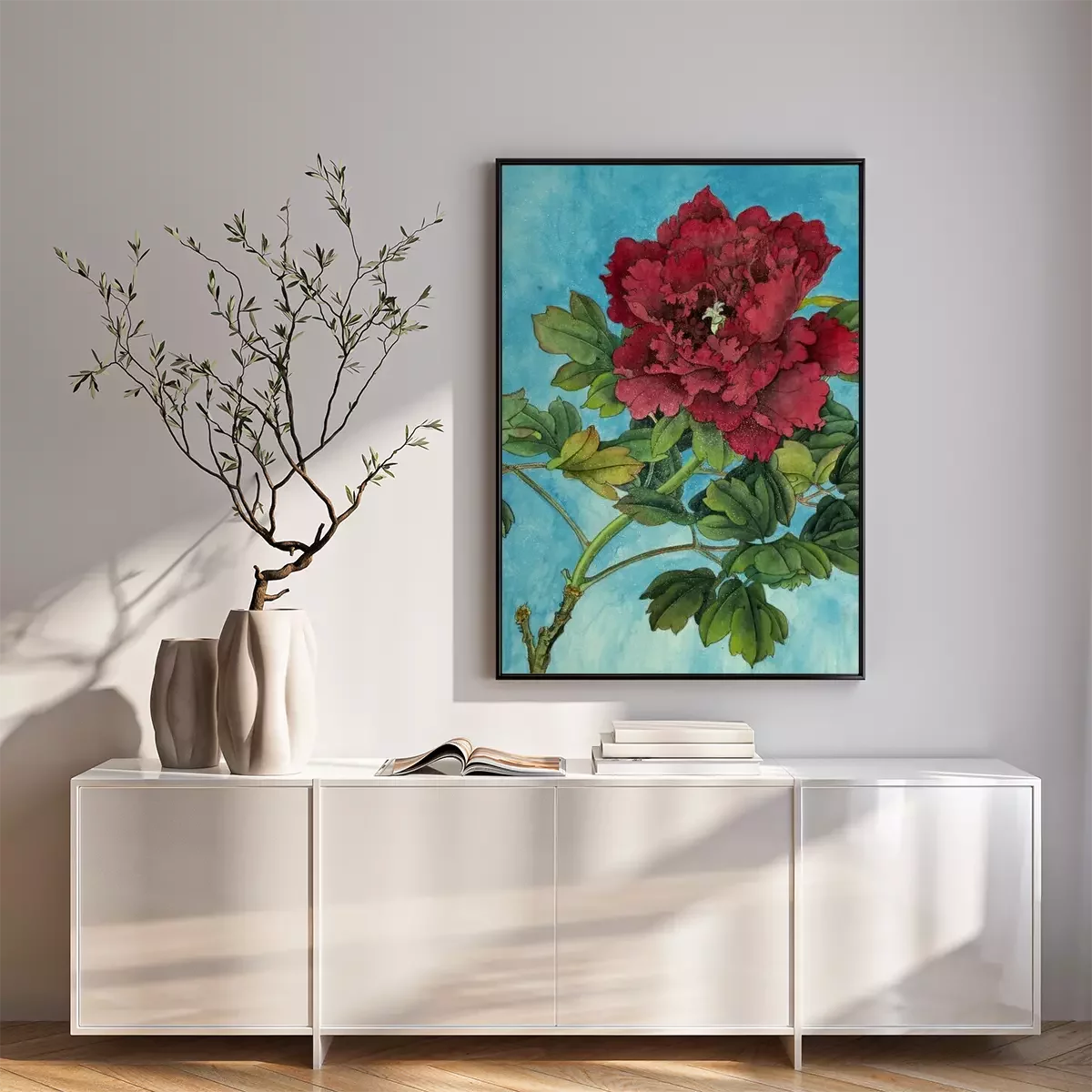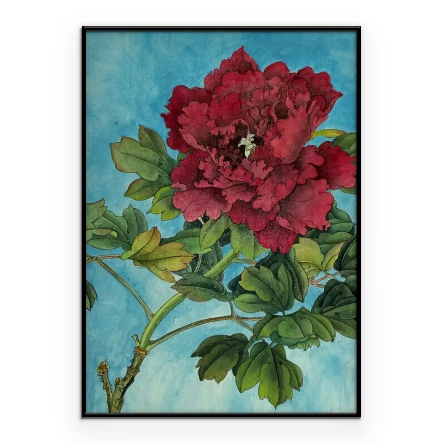 Rosa Pfingstrose auf einem blauen Hintergrund