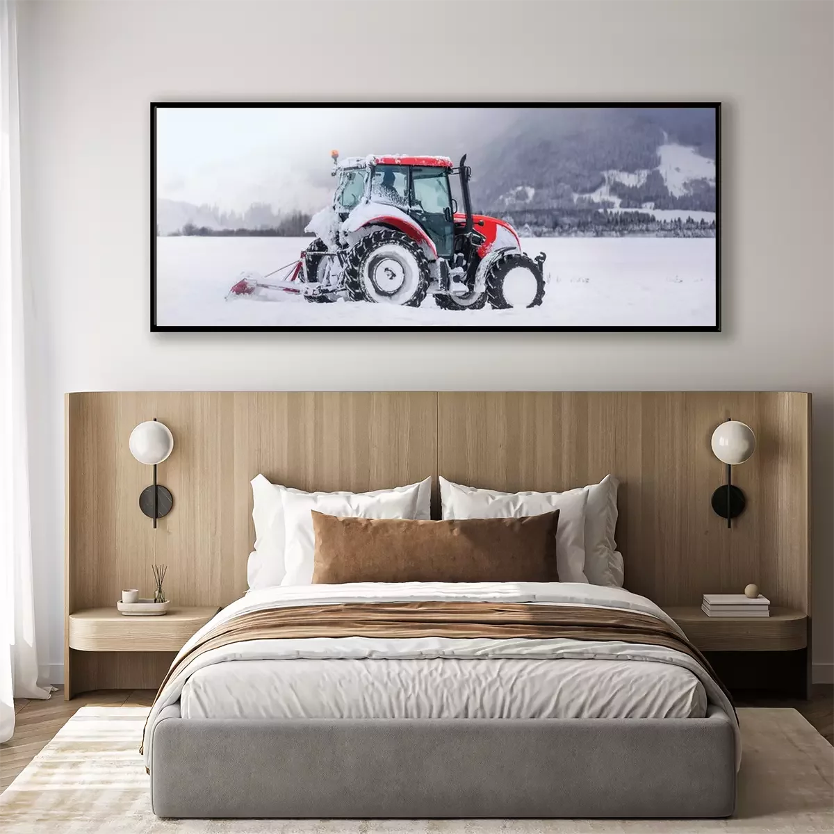 Poster: Roter Traktor im Winter
