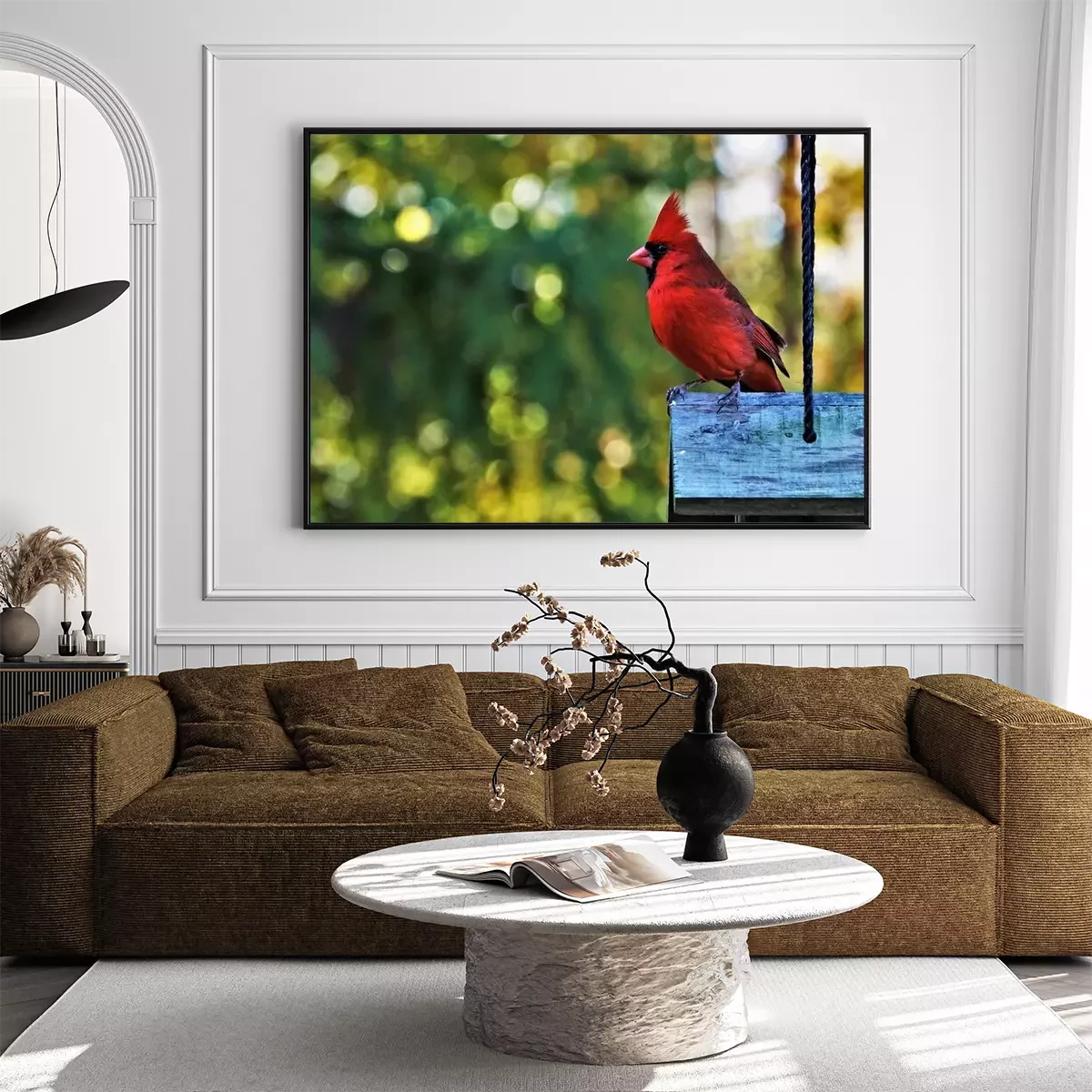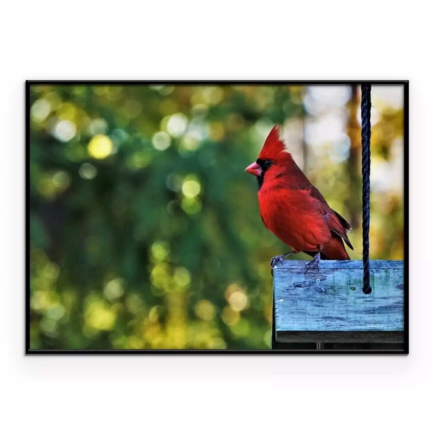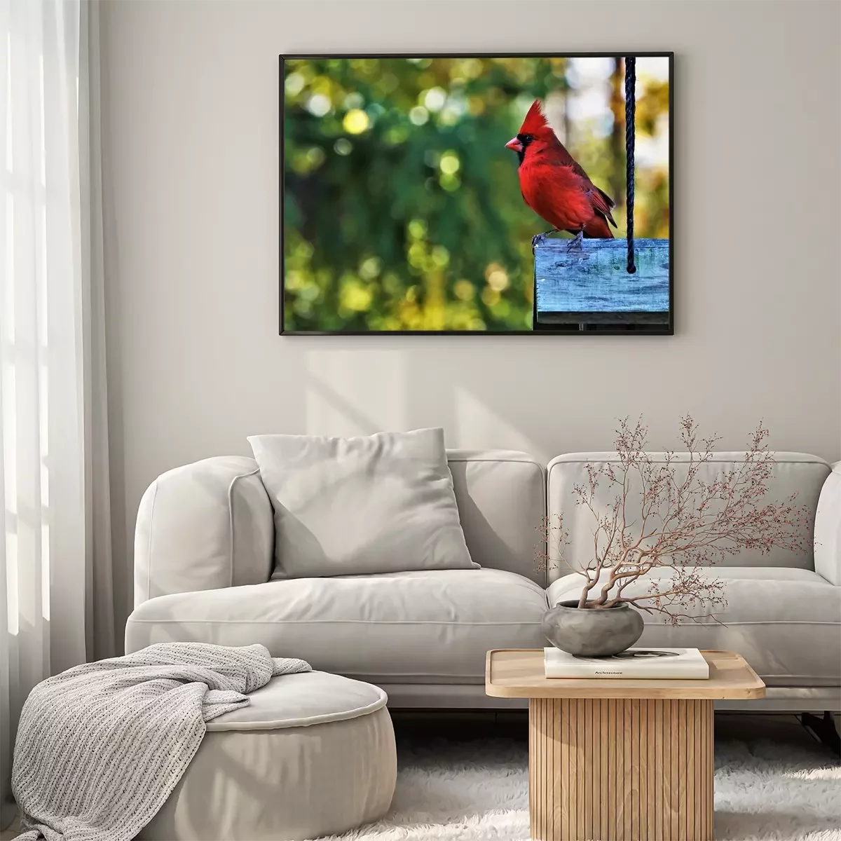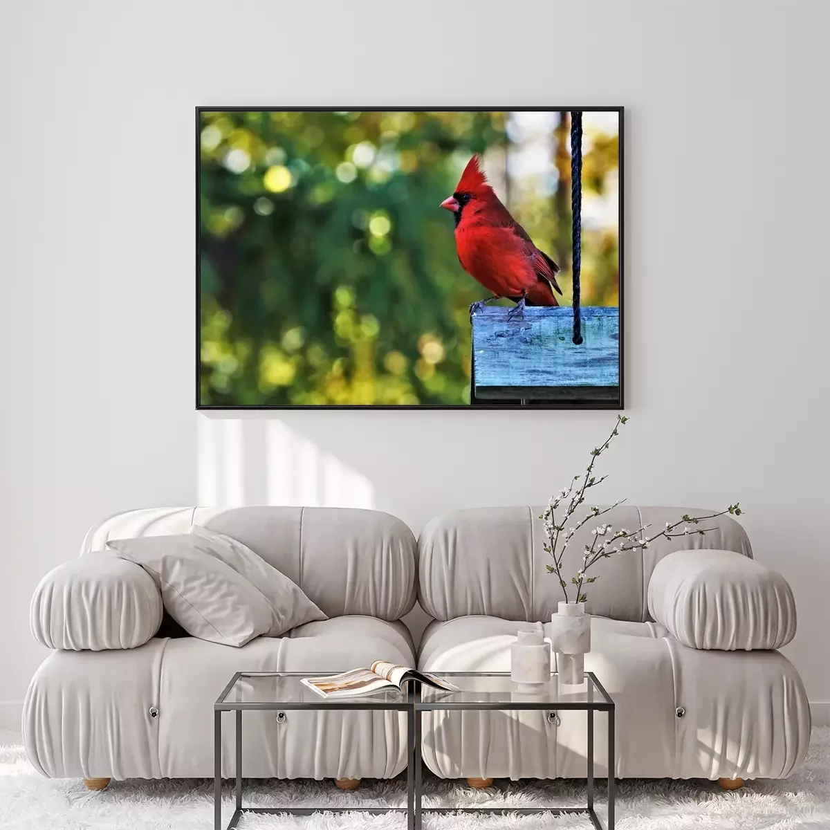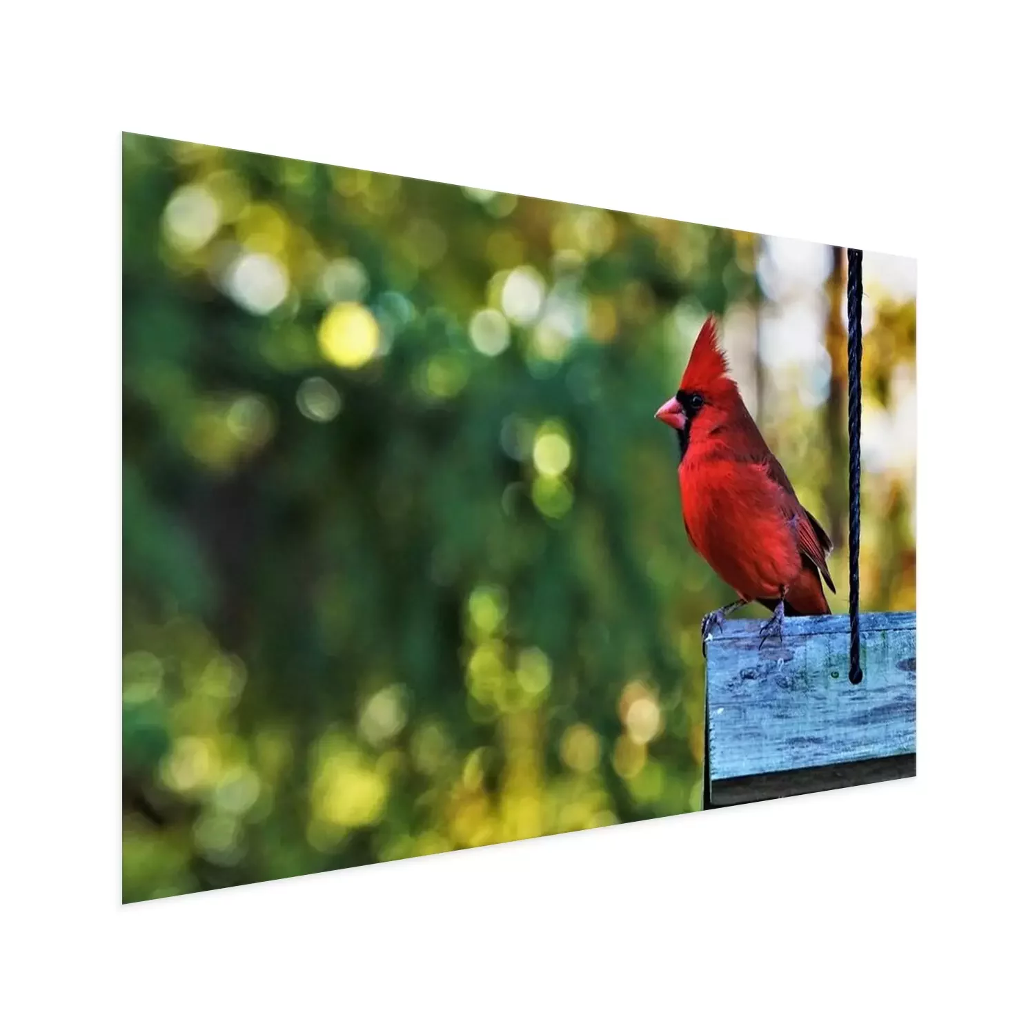 Poster: Roter Vogel auf dem Hintergrund des Waldes