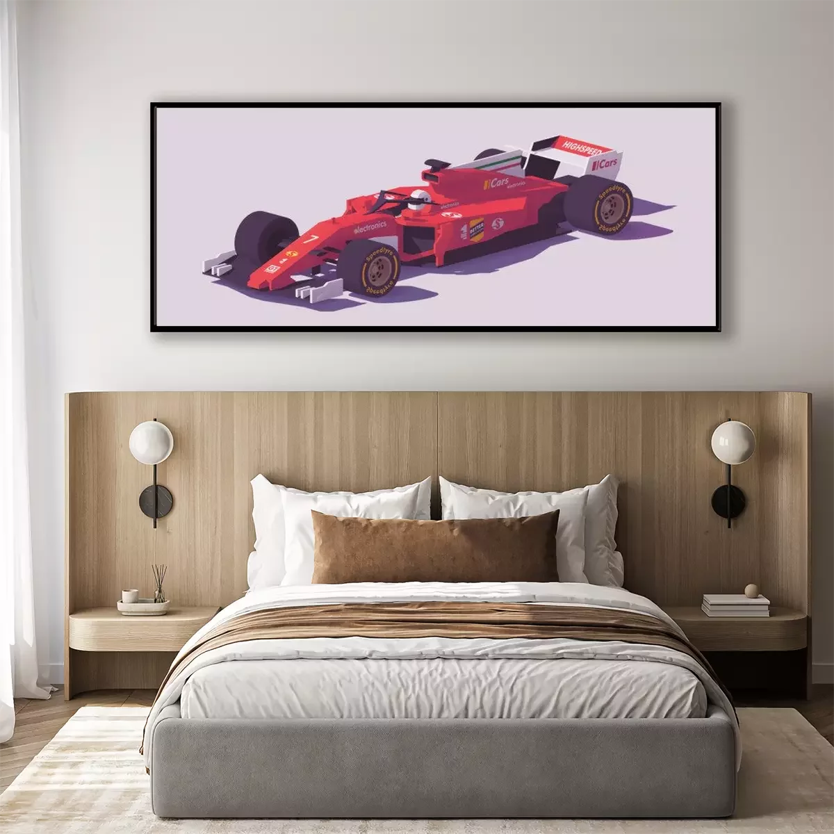 Poster: Rotes Auto auf lila Hintergrund