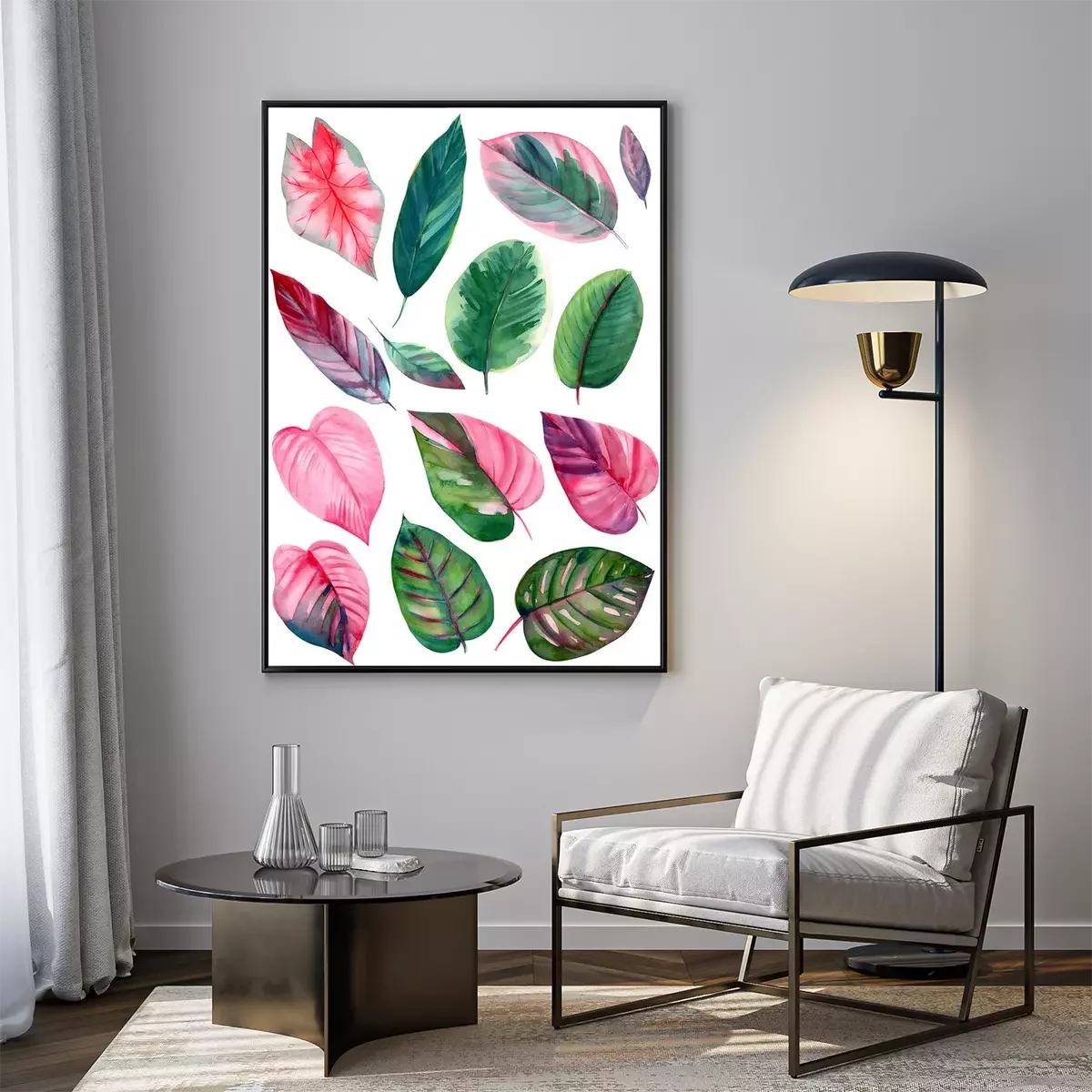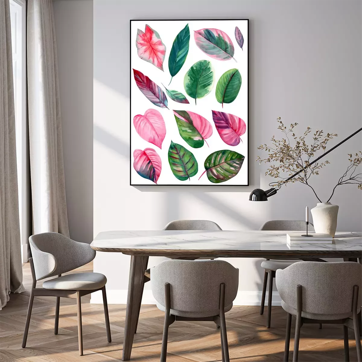 Poster: Sammlung von rosa und grünen Blättern