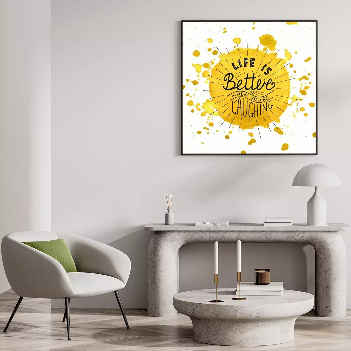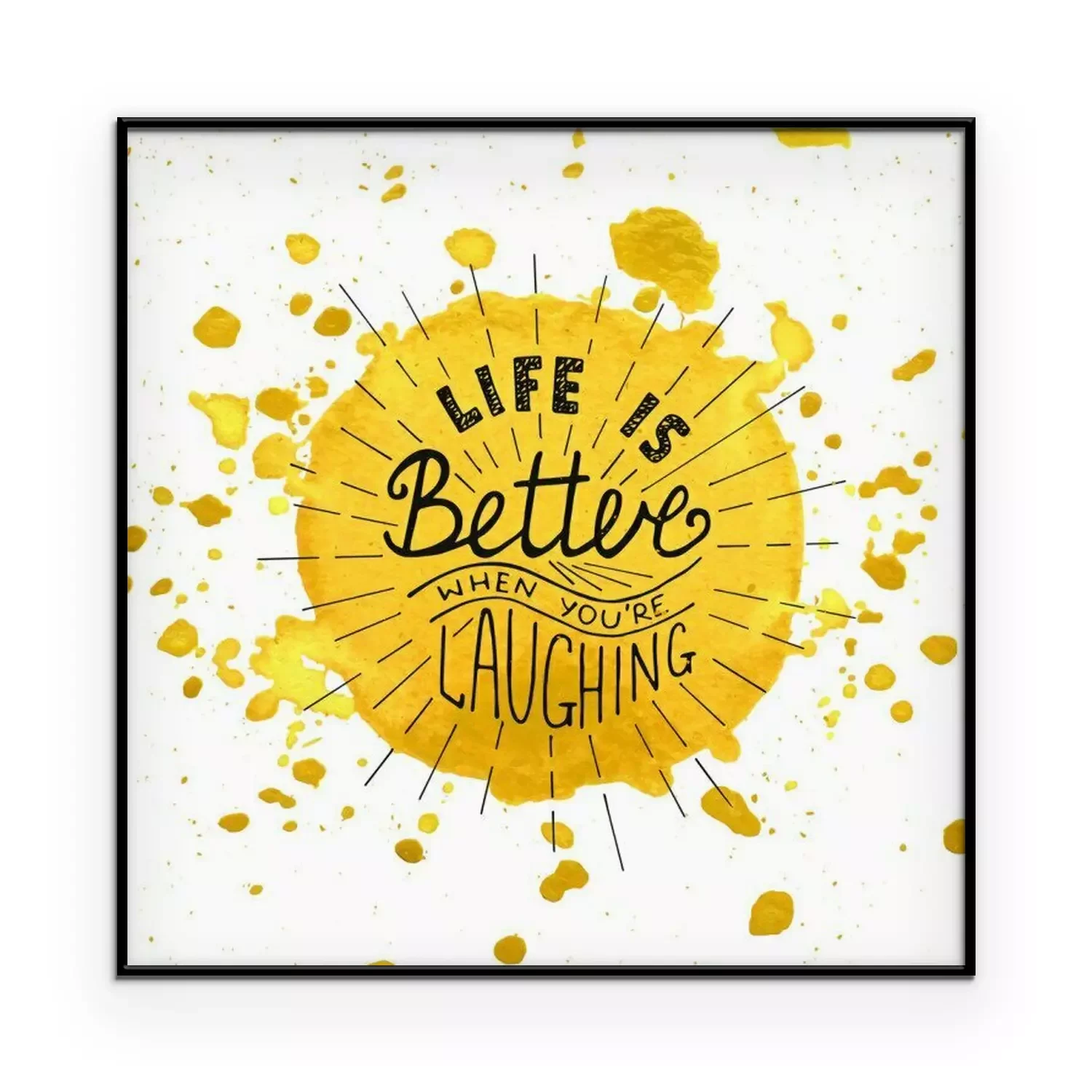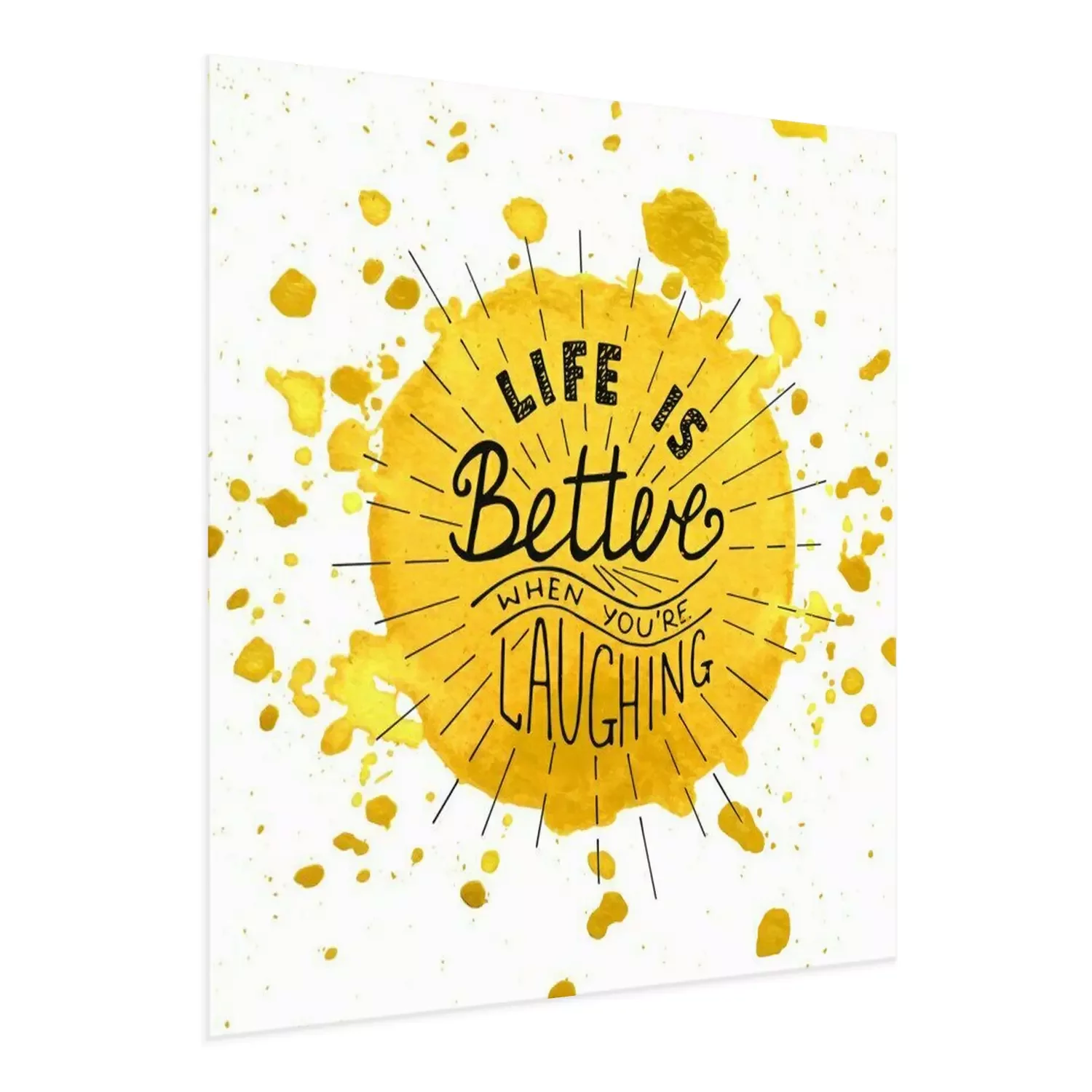 Poster: Satz über das Lachen auf einem gelben Klecks