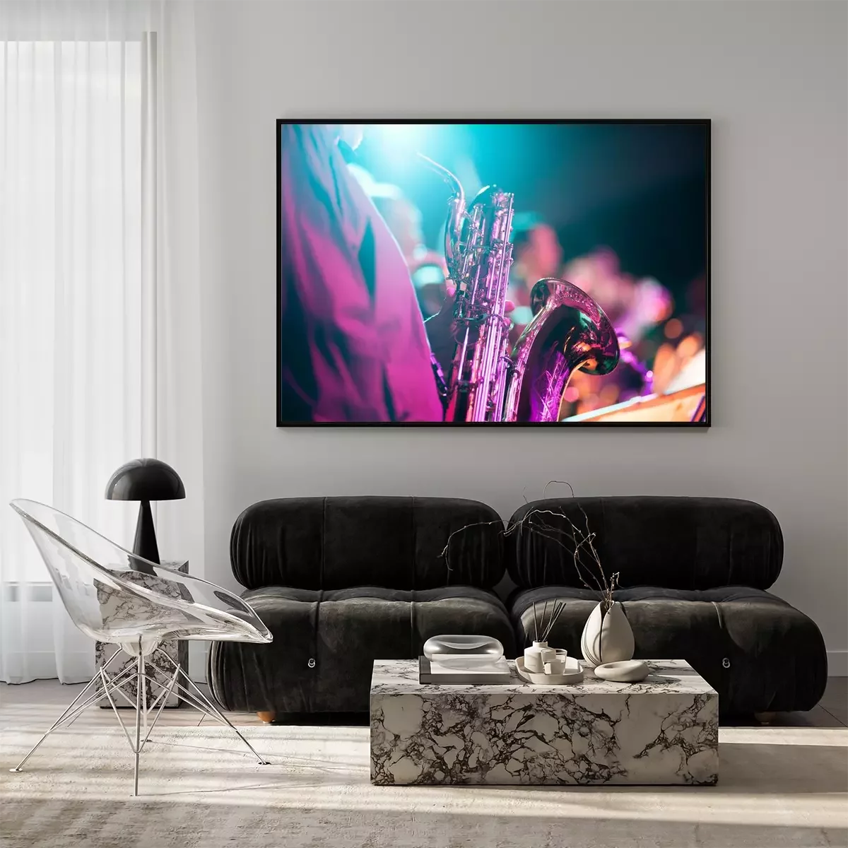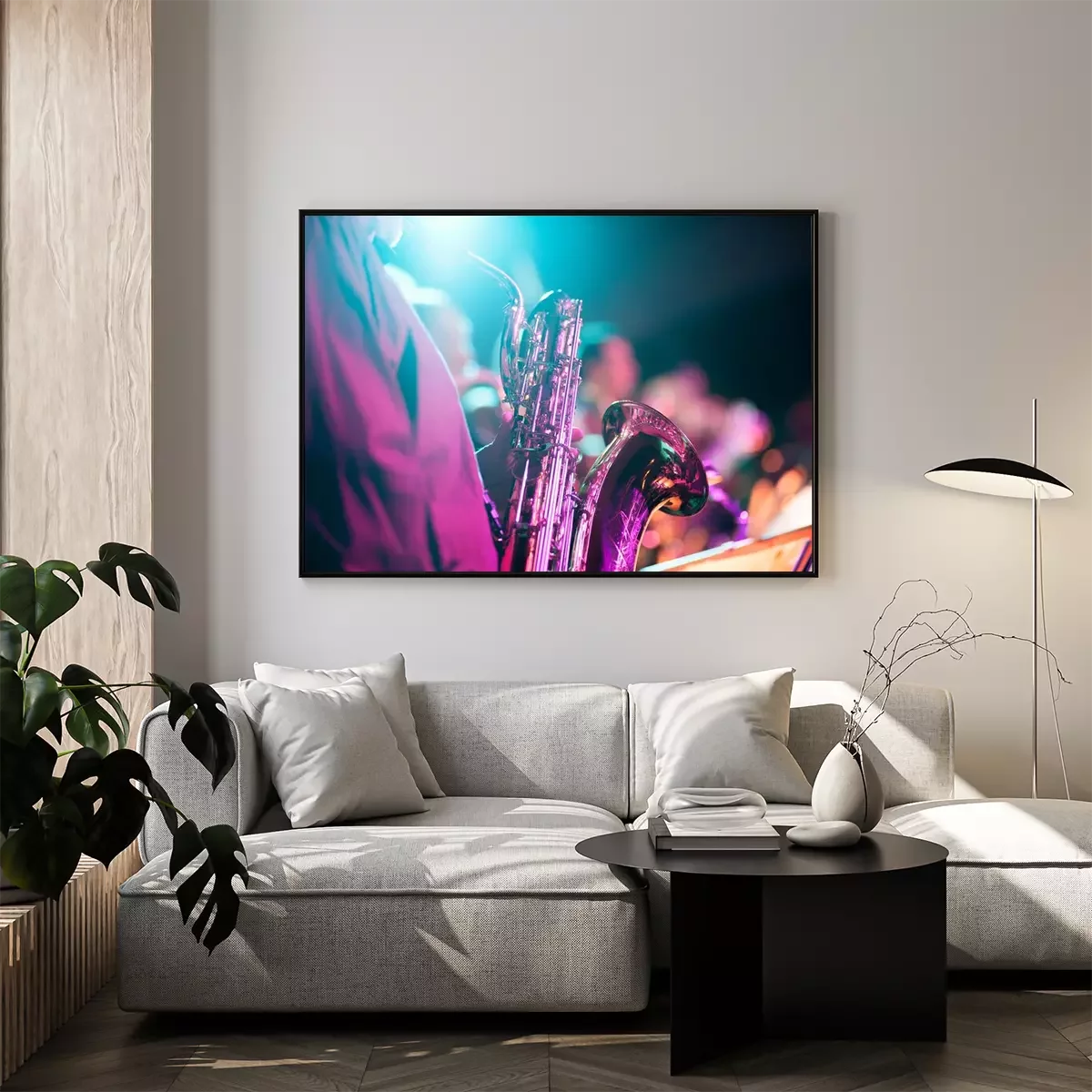 Poster: Saxophonist und Band