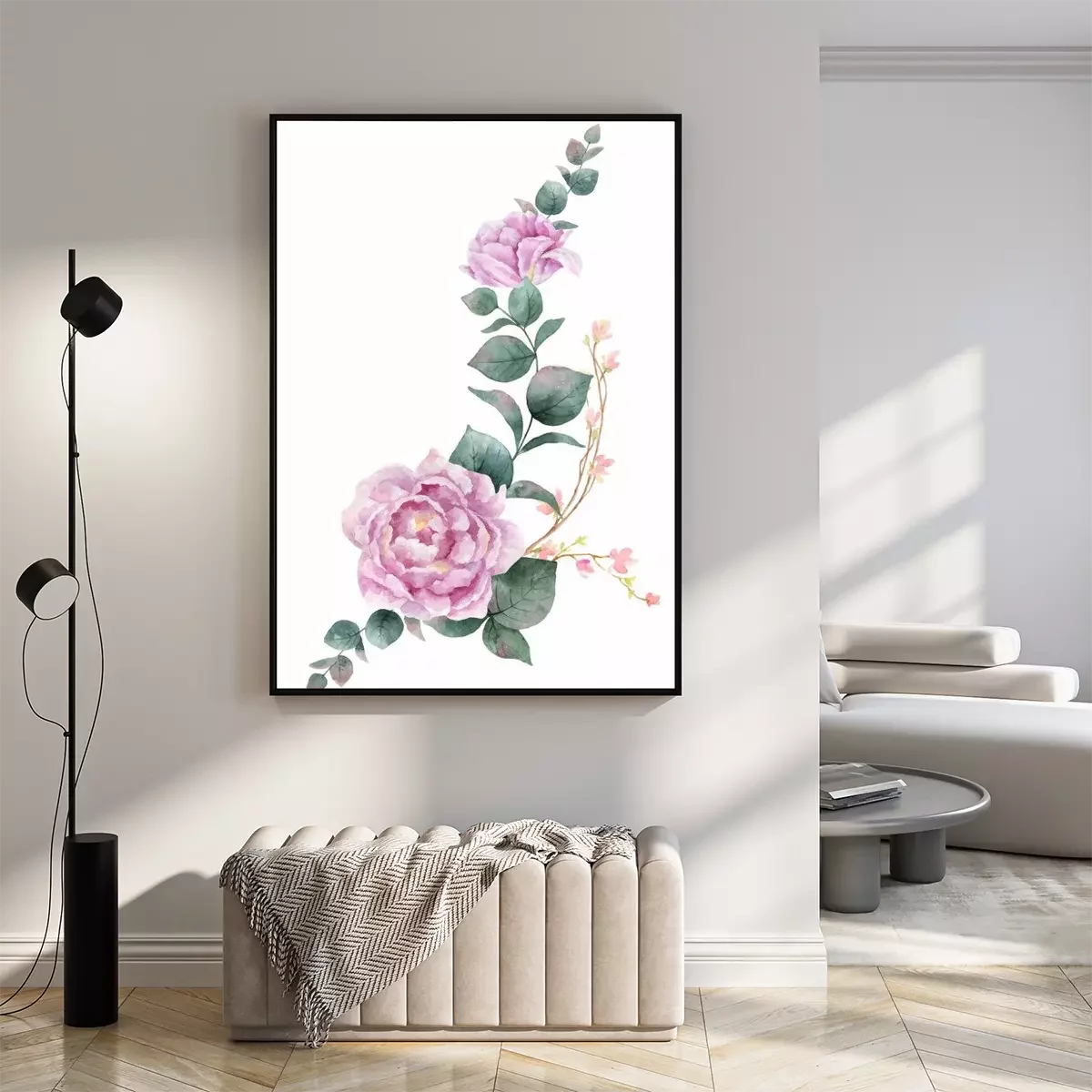 Poster: Schattierte Blätter und zwei Pfingstrosen