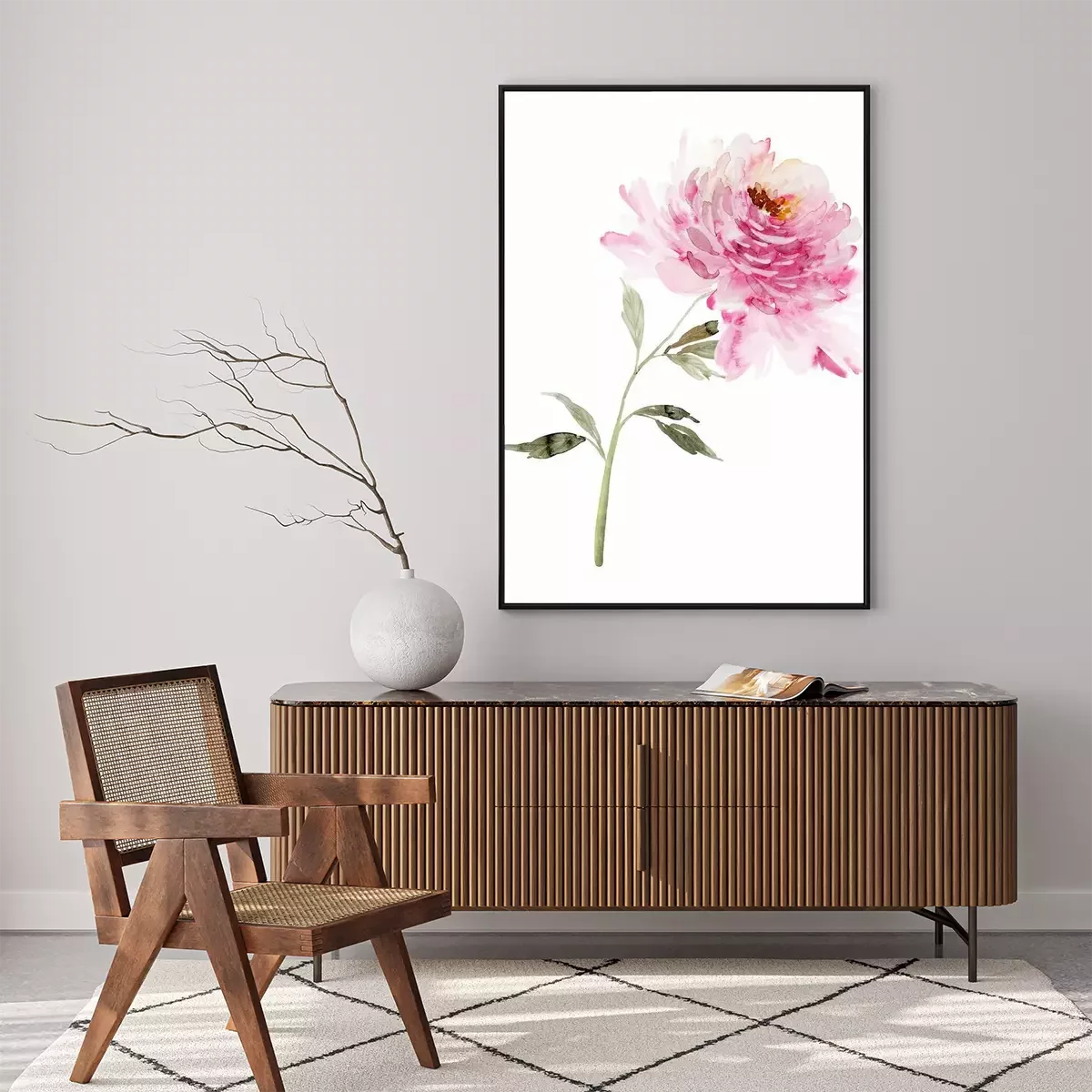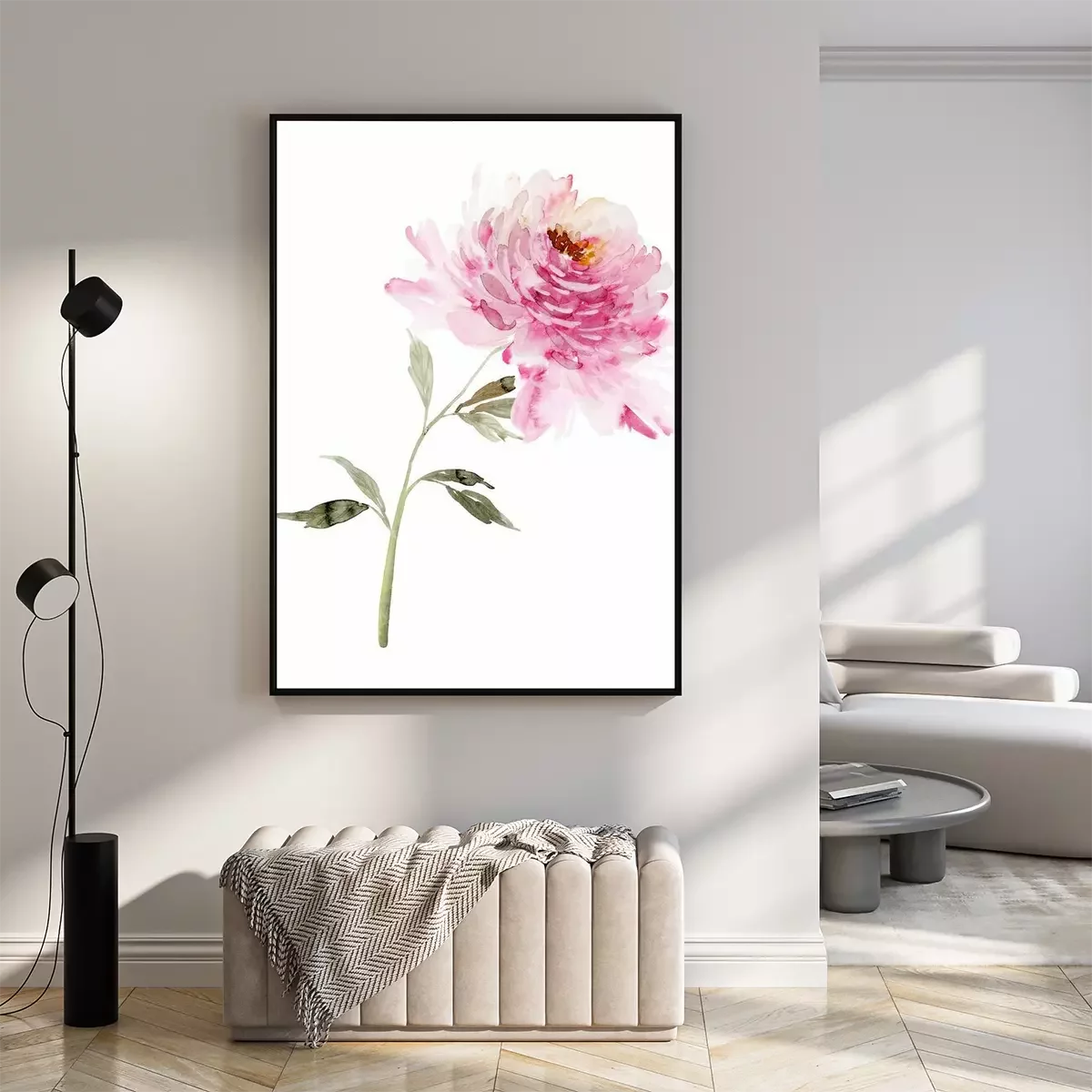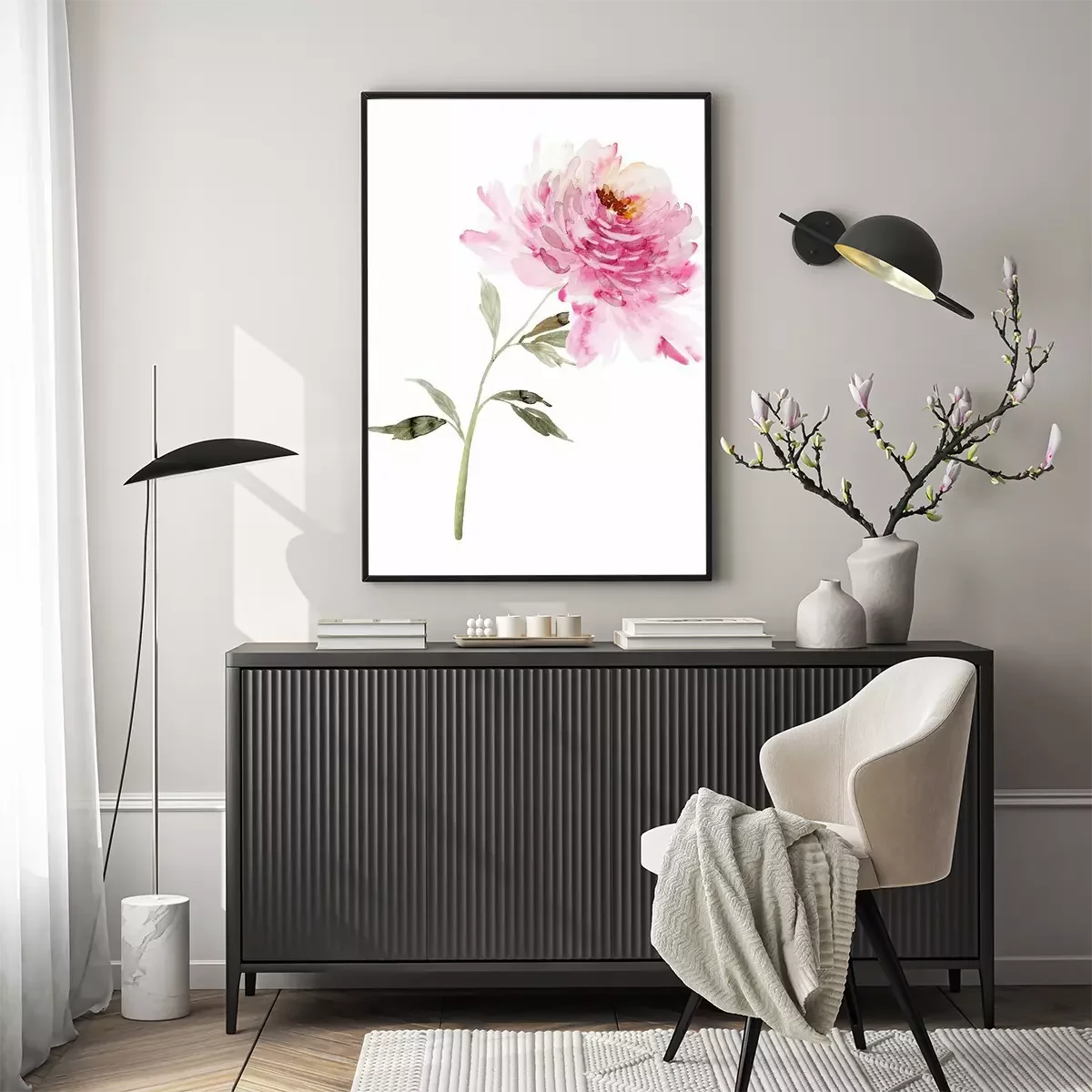 Poster: Schattierte Pfingstrose auf einem grünen Stiel