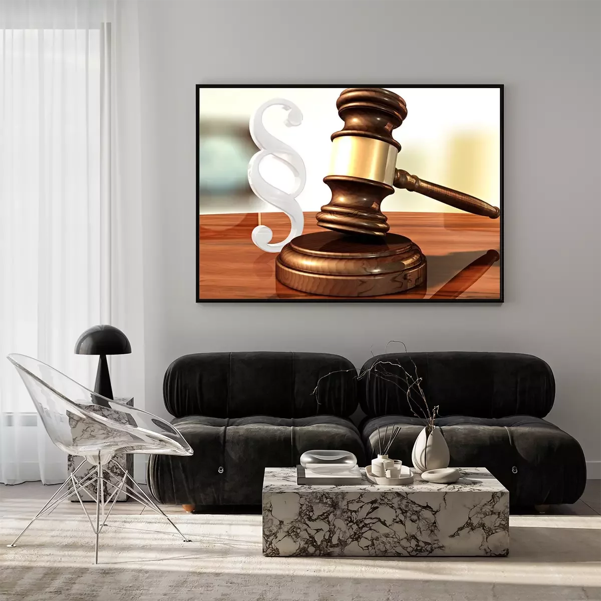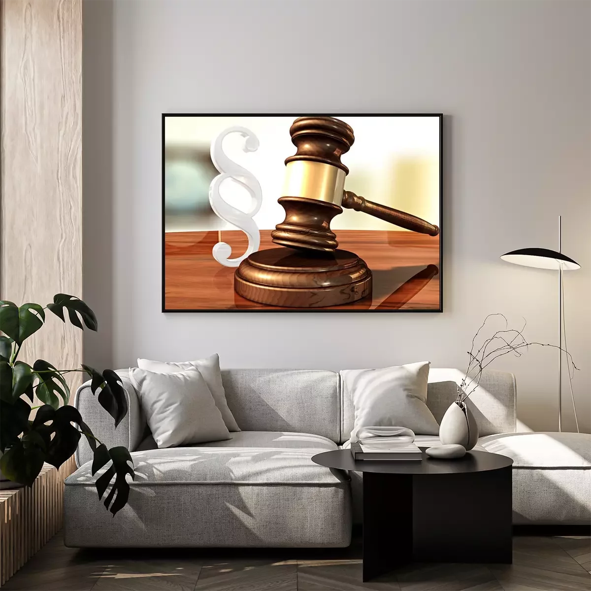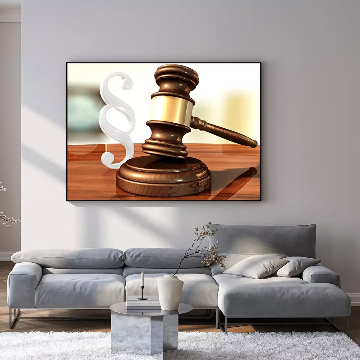 Poster: Schiedsrichterhammer und Absatzmarker auf einem Tisch