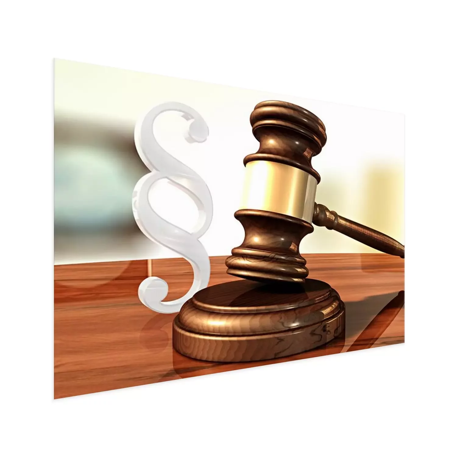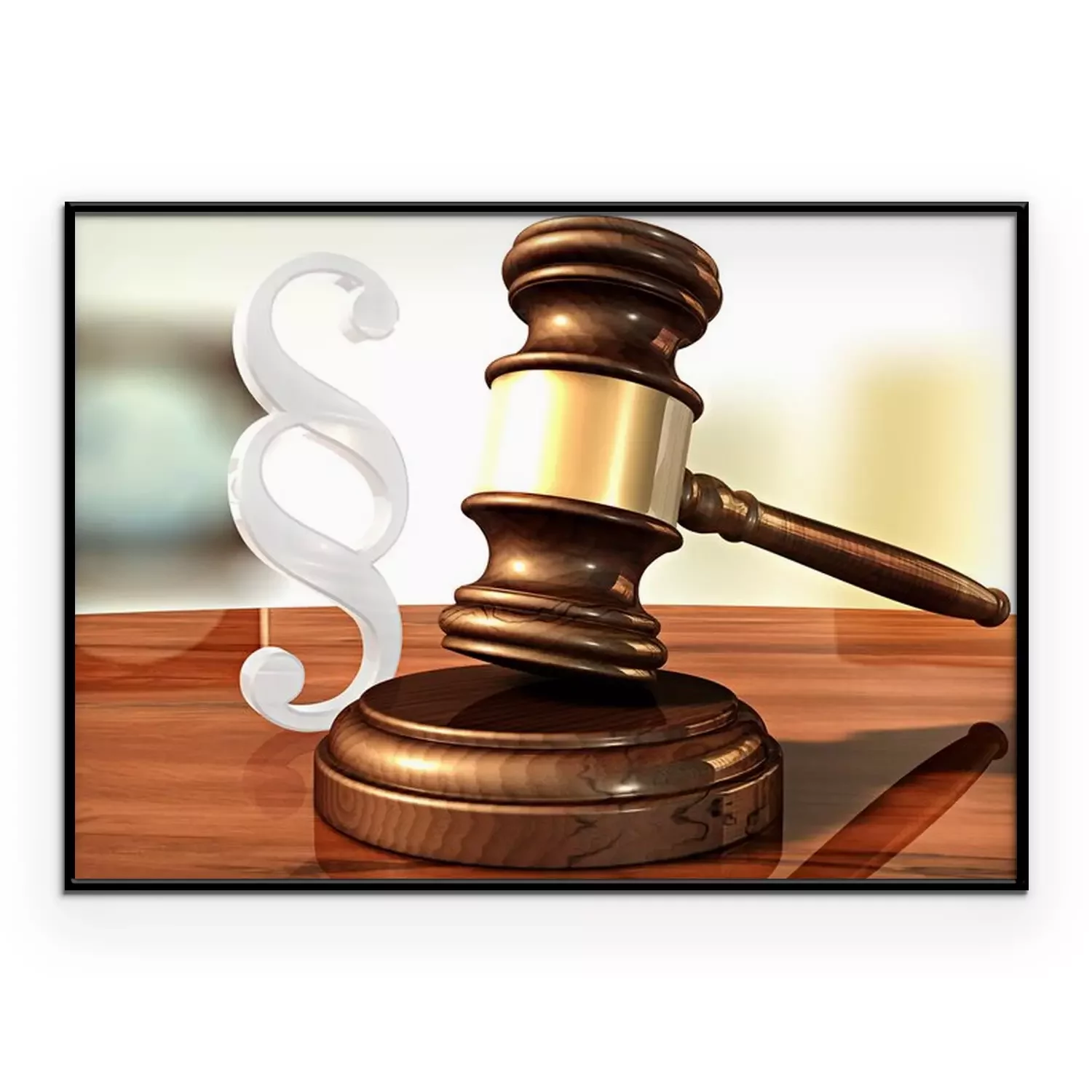 Hammer des Schiedsrichters mit Goldstreifen und Paragraphenzeichen