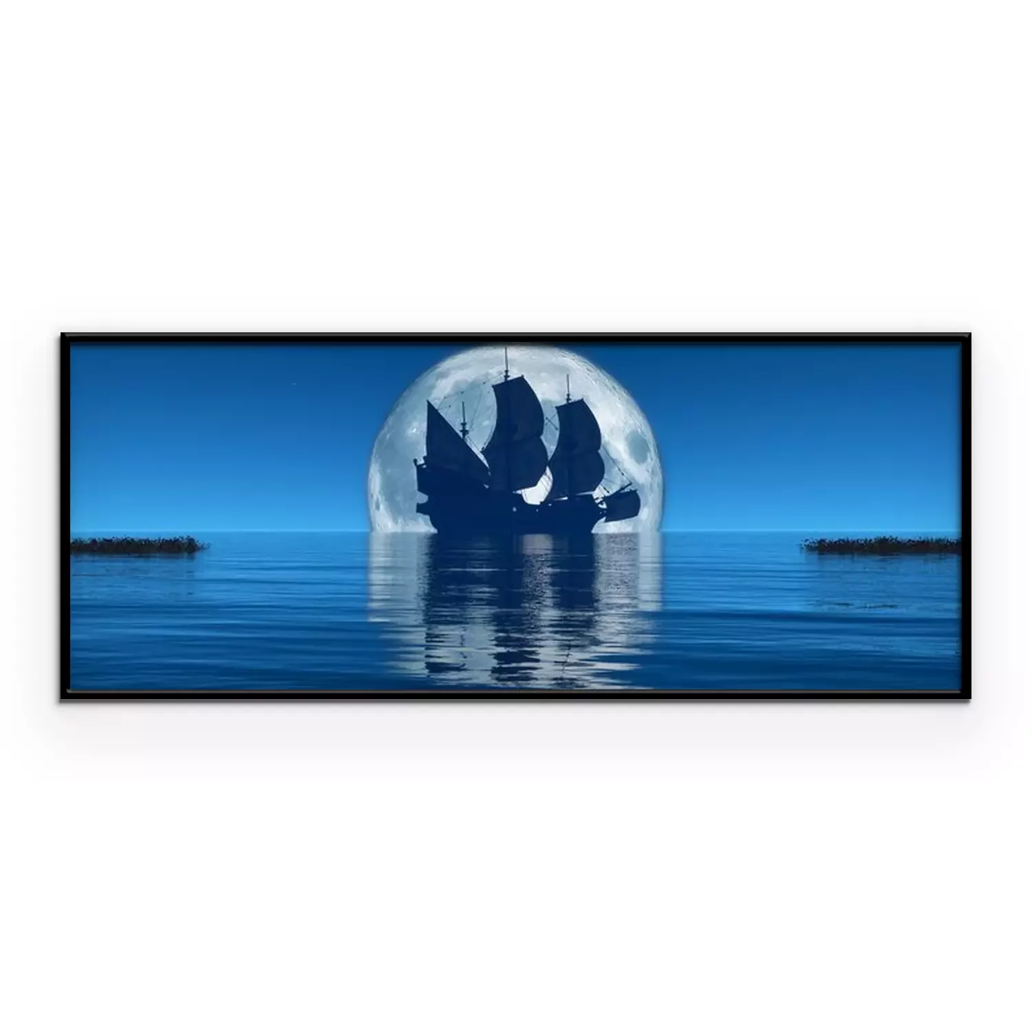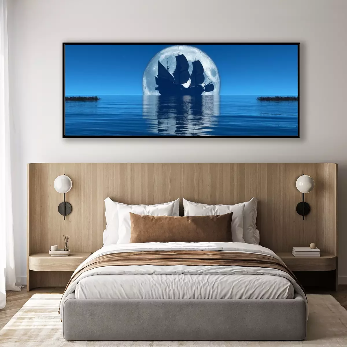 Poster Schiff auf See vor dem Hintergrund des Mondes