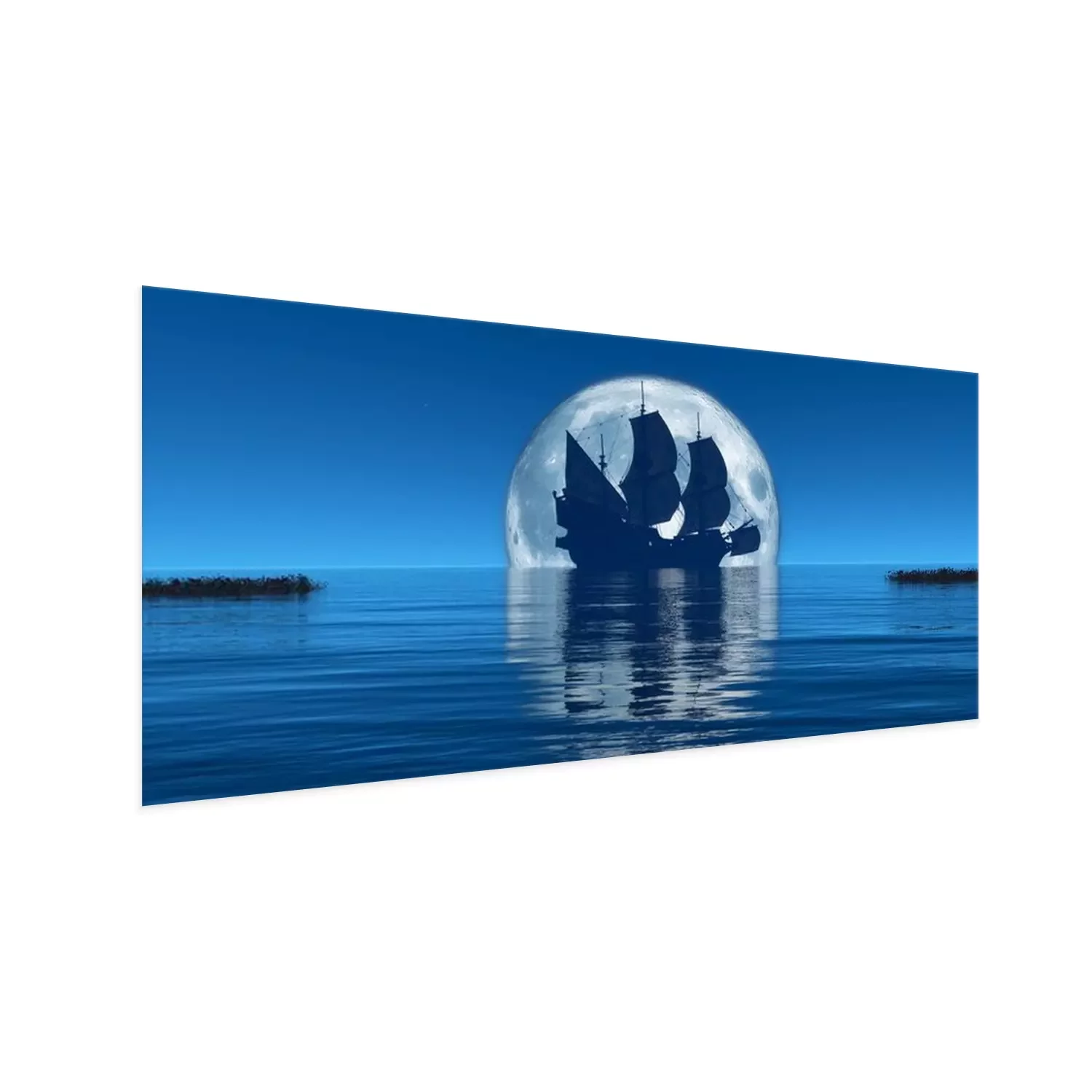 Poster: Schiff auf See vor dem Hintergrund des Mondes