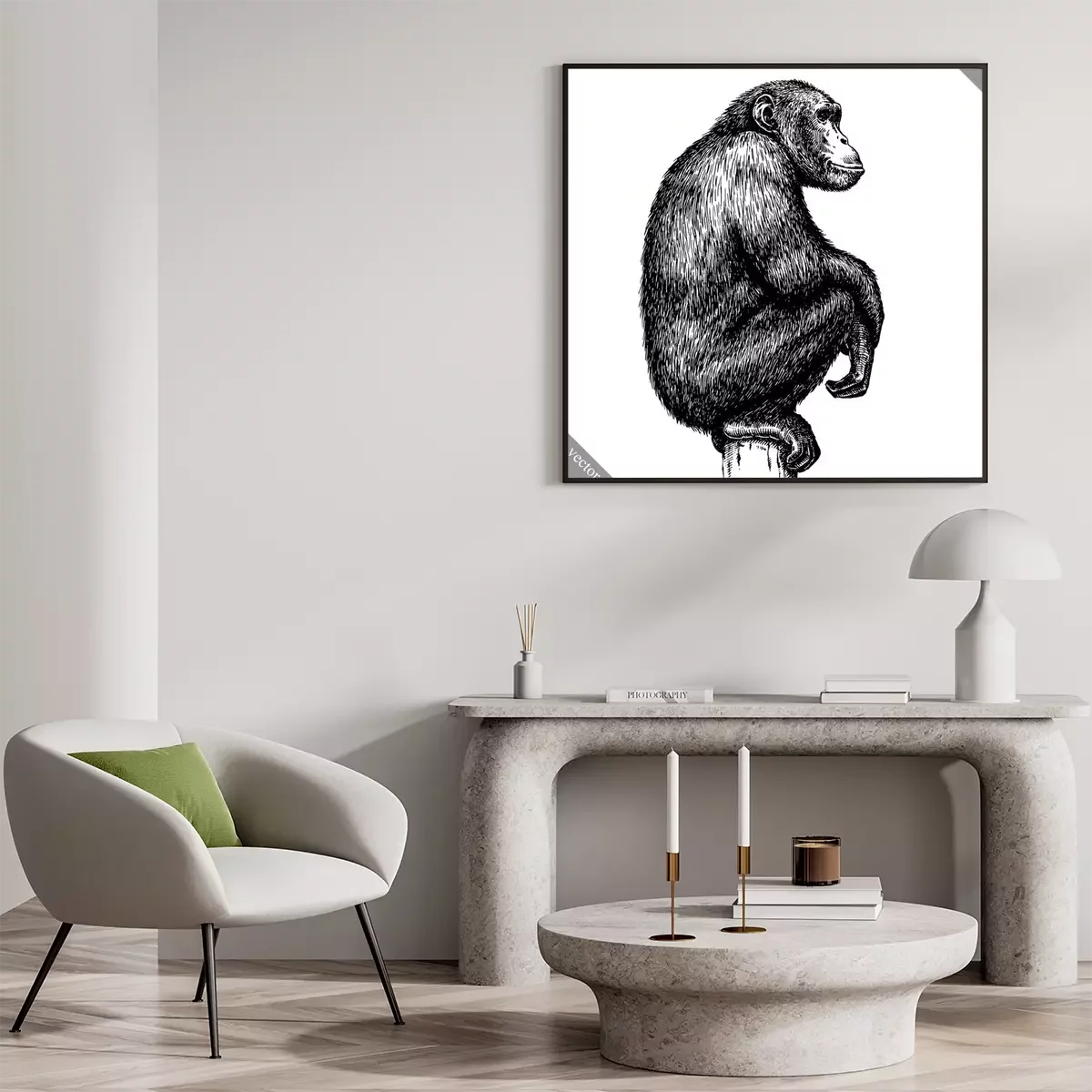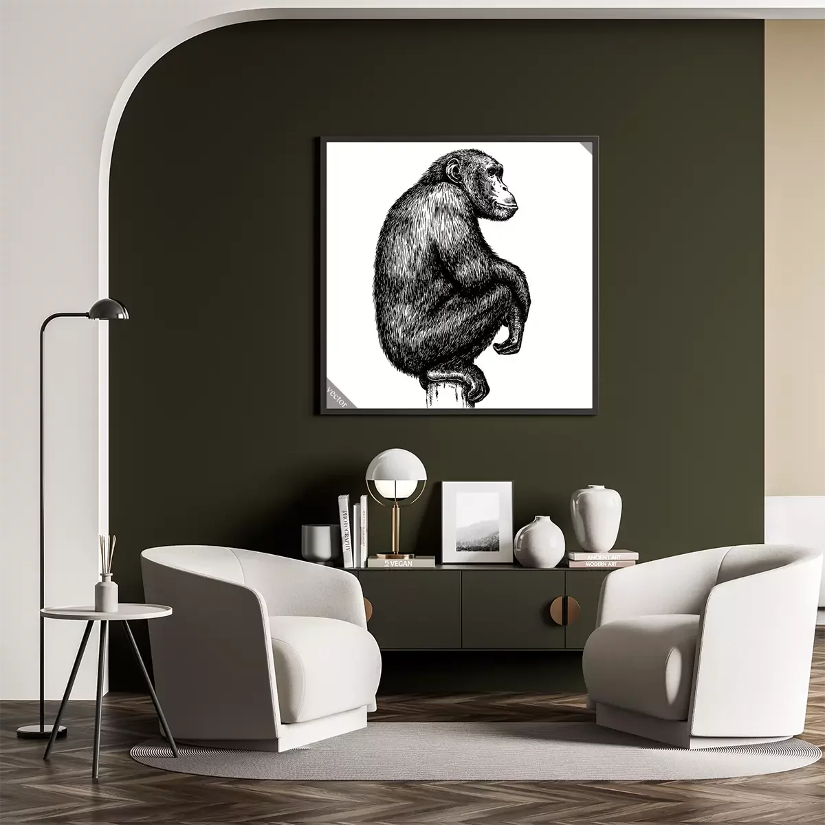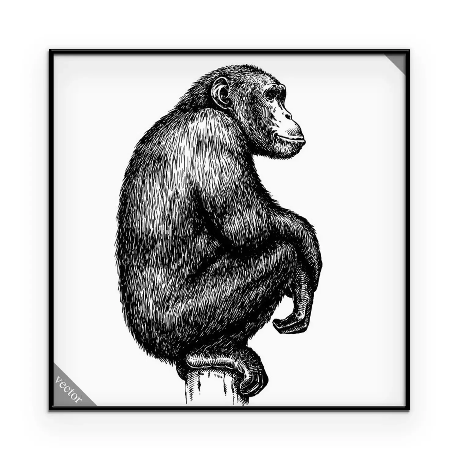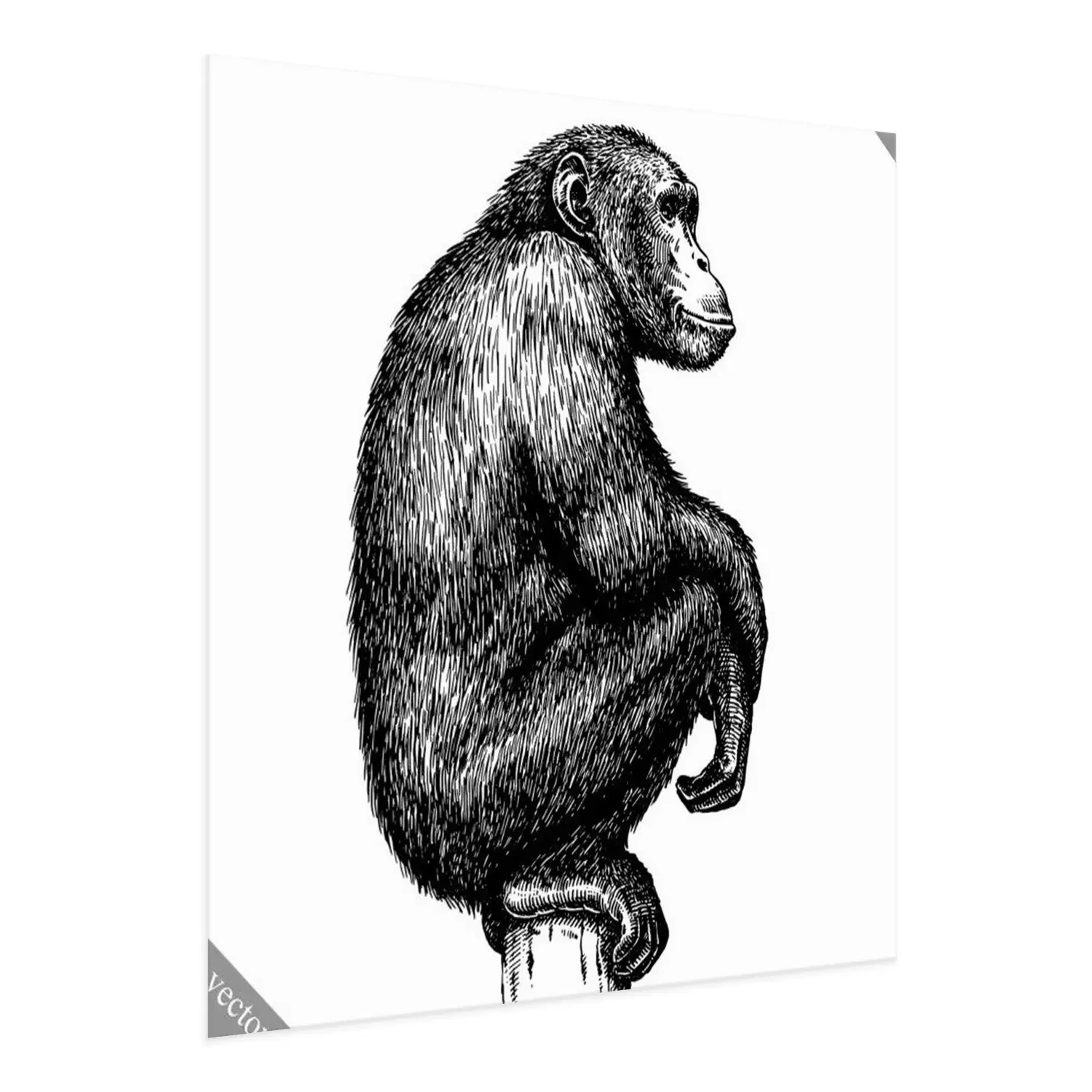Poster: Schimpanse sitzt auf einem Baumstamm