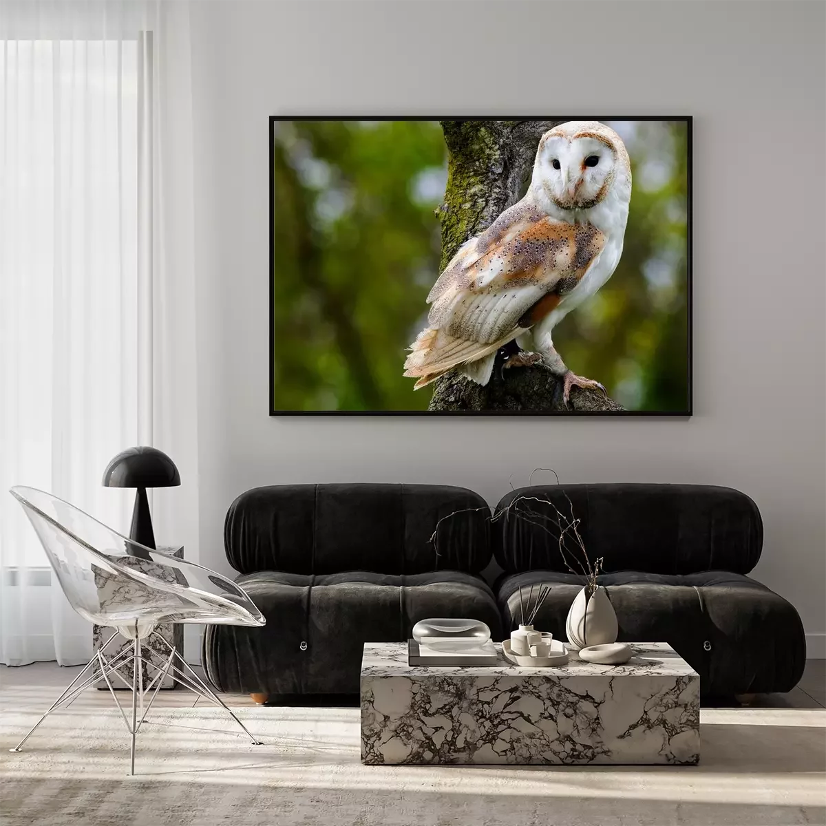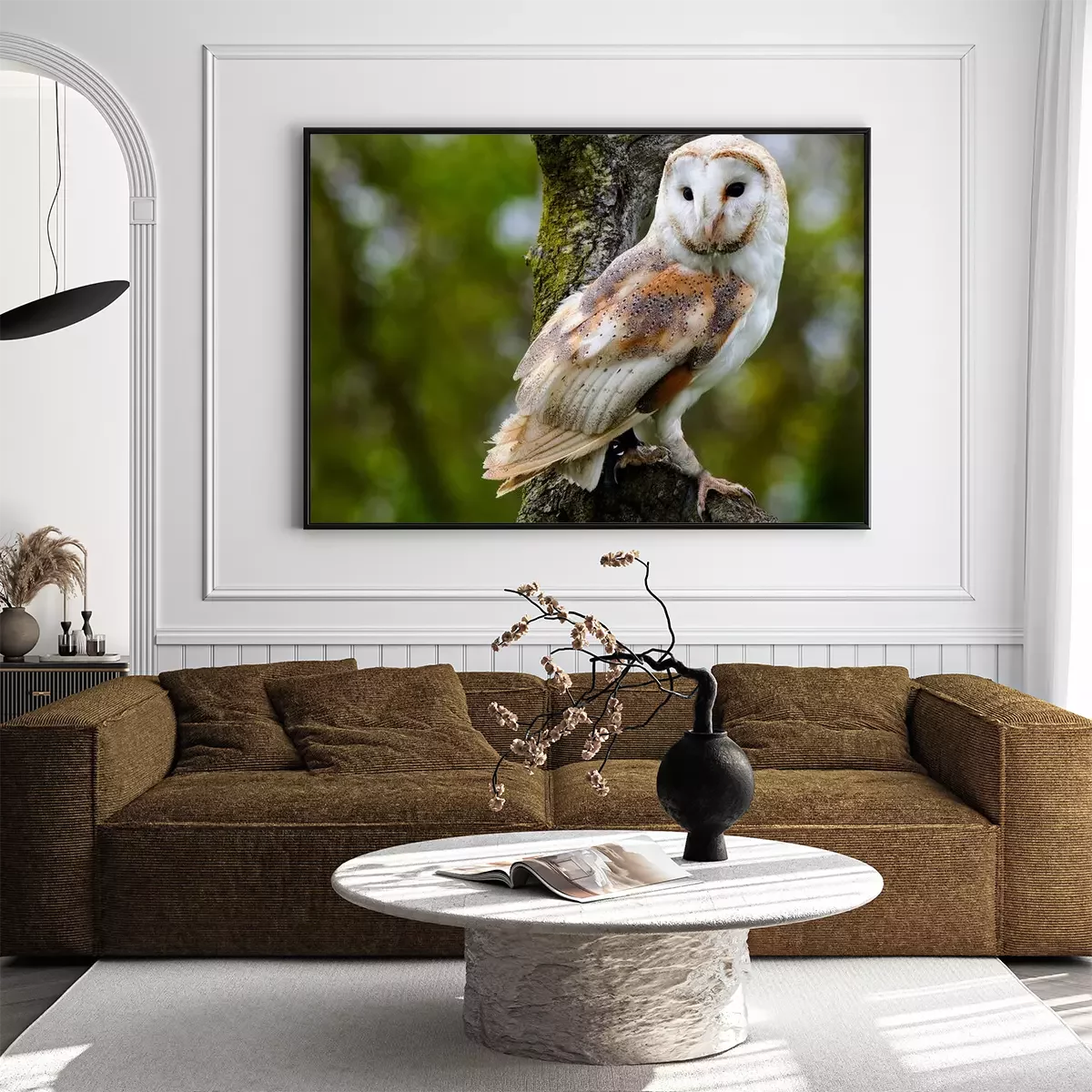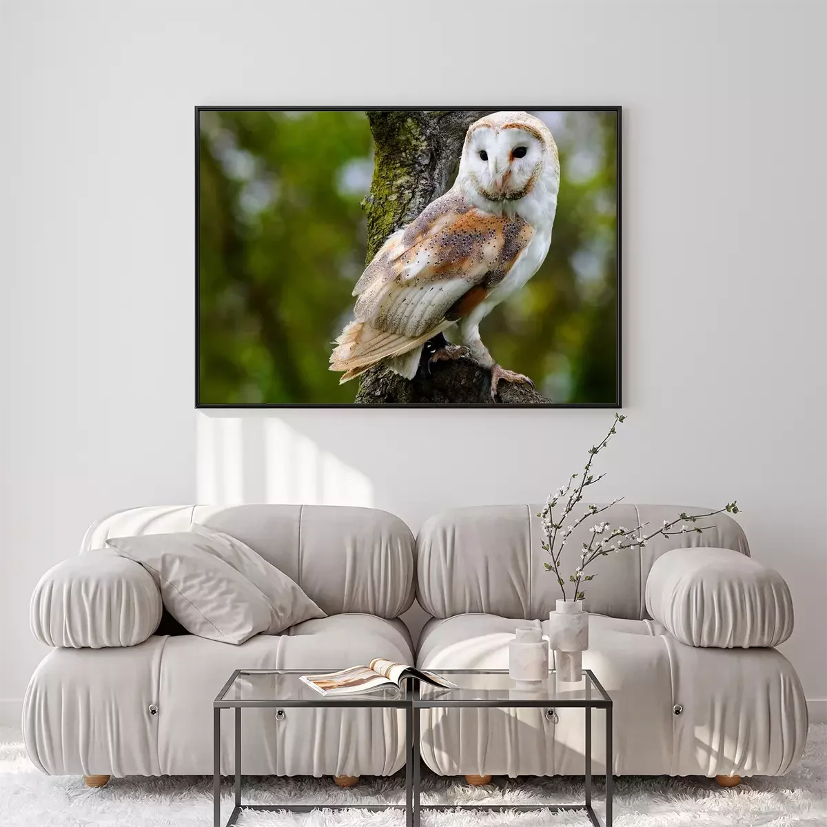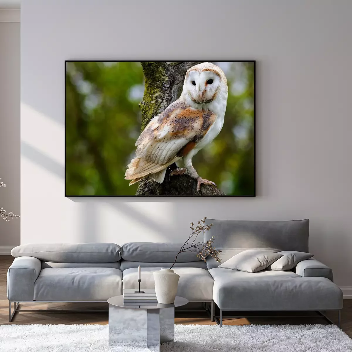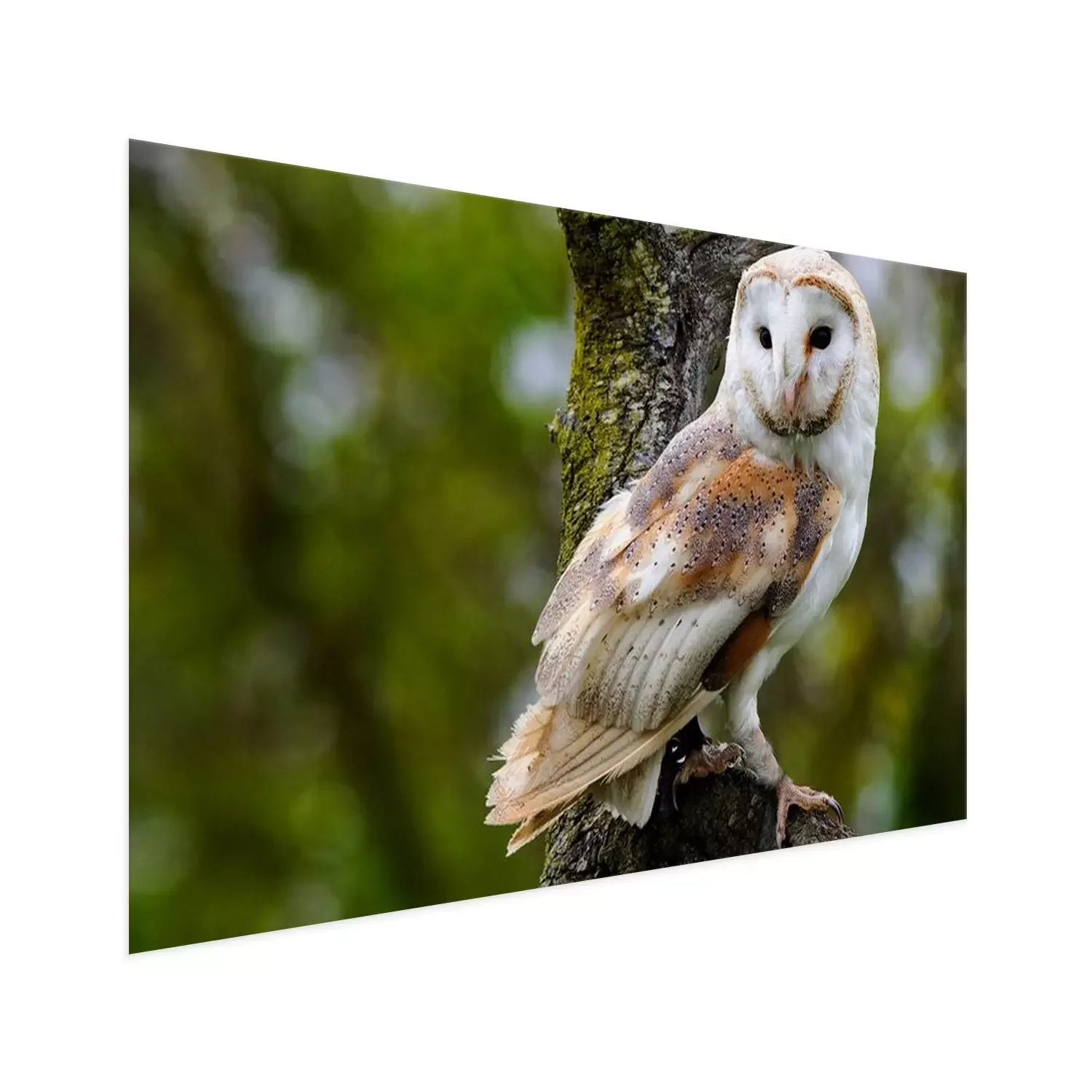 Poster: Schleiereule auf einem Ast sitzend