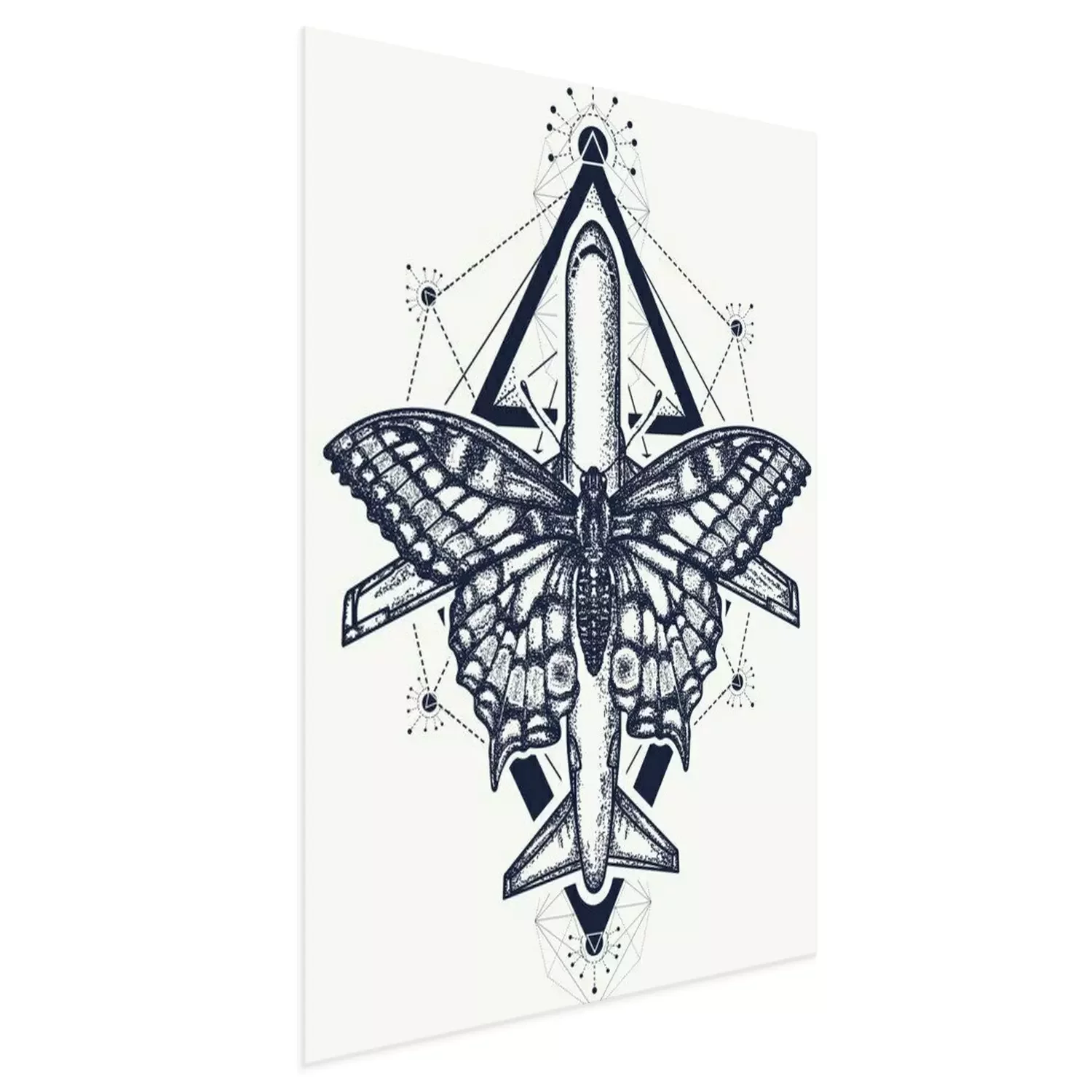 Poster: Schmetterling und Flugzeug Tattoo, Symbol für Tourismus, Reisen, Traum, Urlaub, Freiheit, Flug, Abenteuer, Motivationen, Lebensstil. Schöner Schmetterling und Start-Flugzeug T-Shirt Design