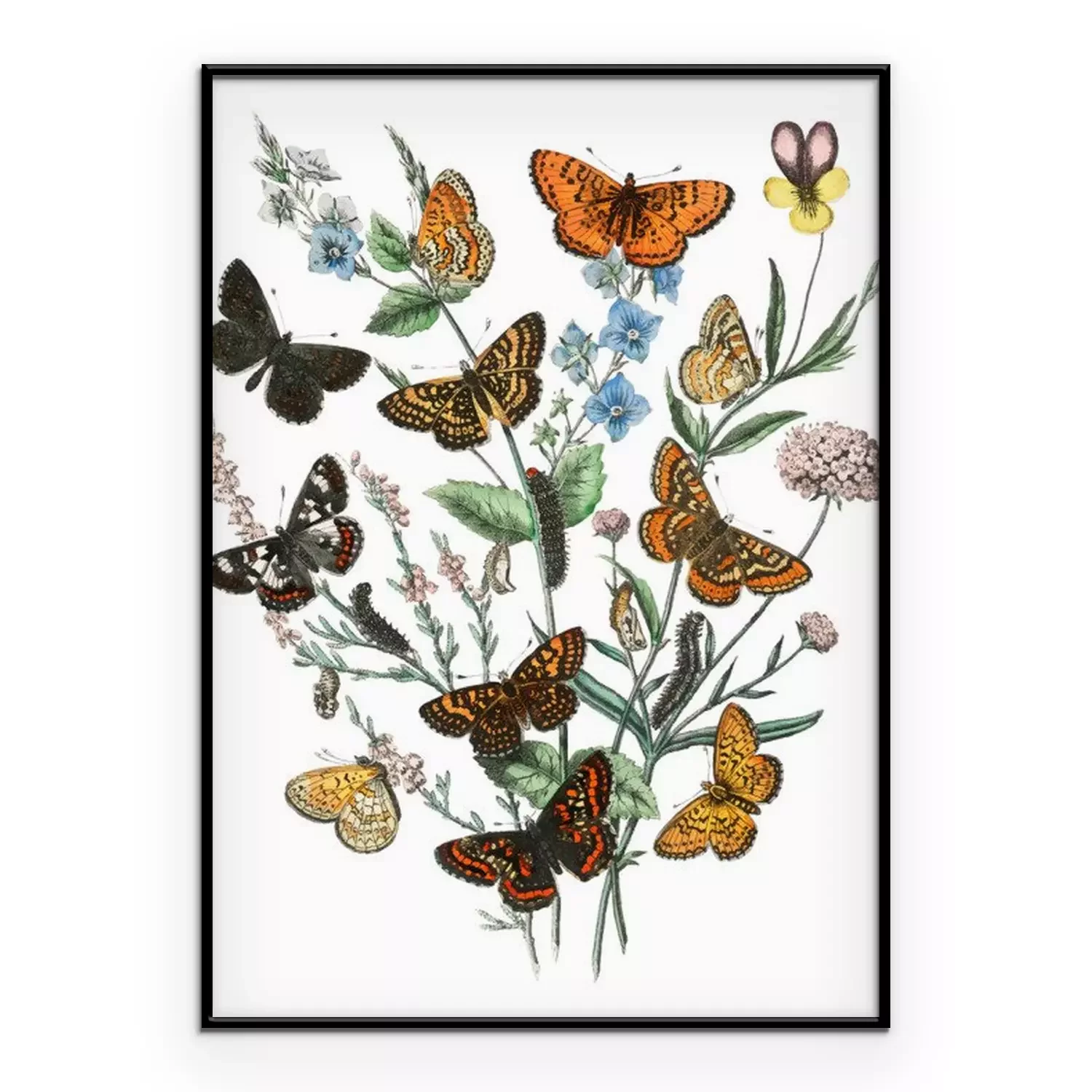 Poster: Schmetterlinge auf Pflanzenzweigen