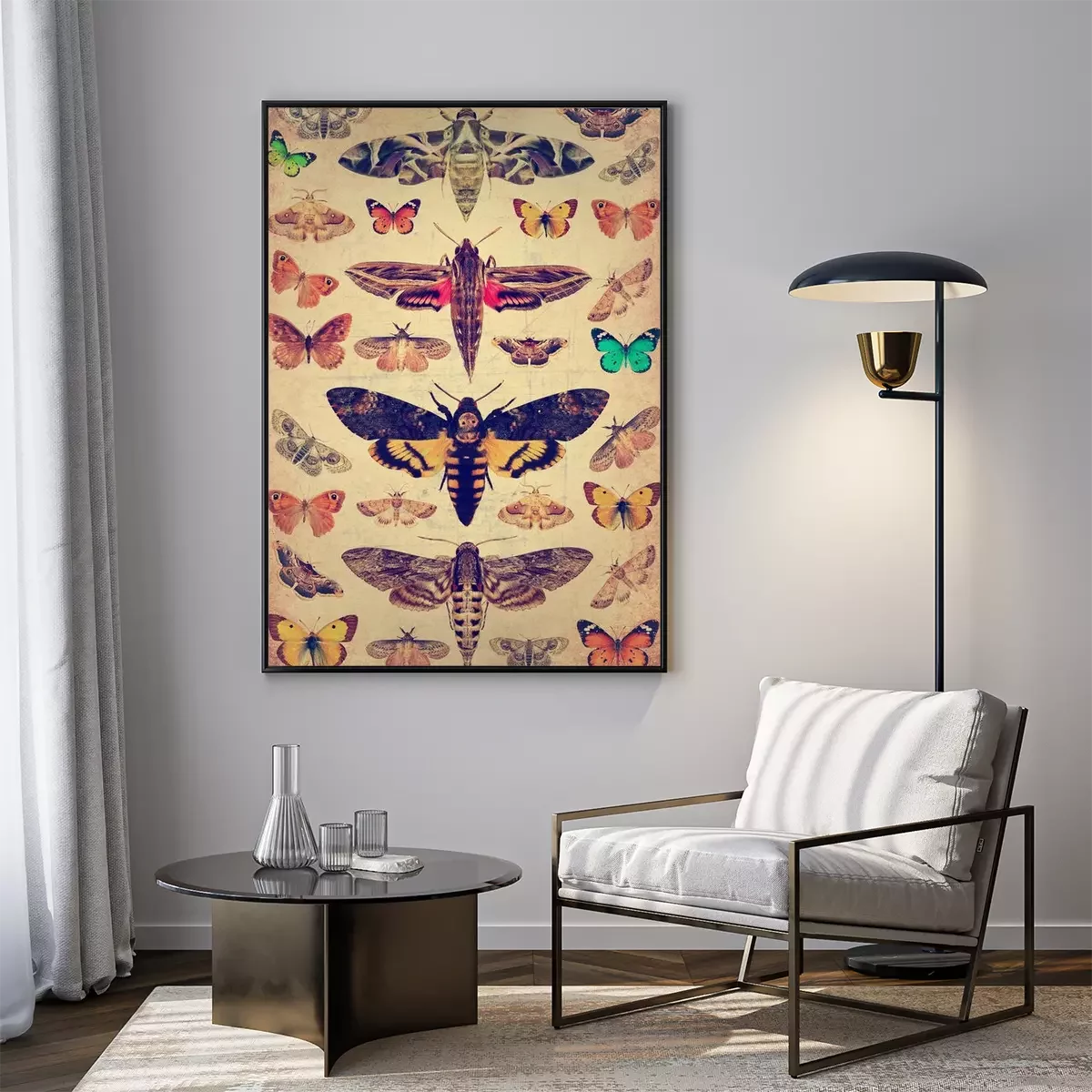 Poster: Schmetterlinge und Motten in Retro-Gravur