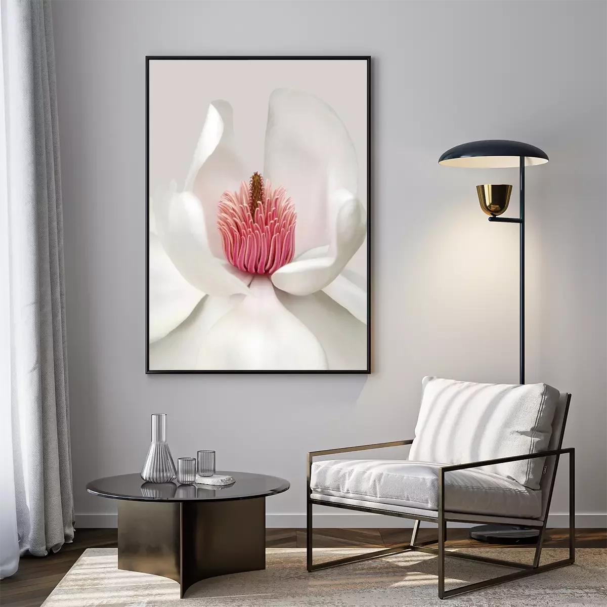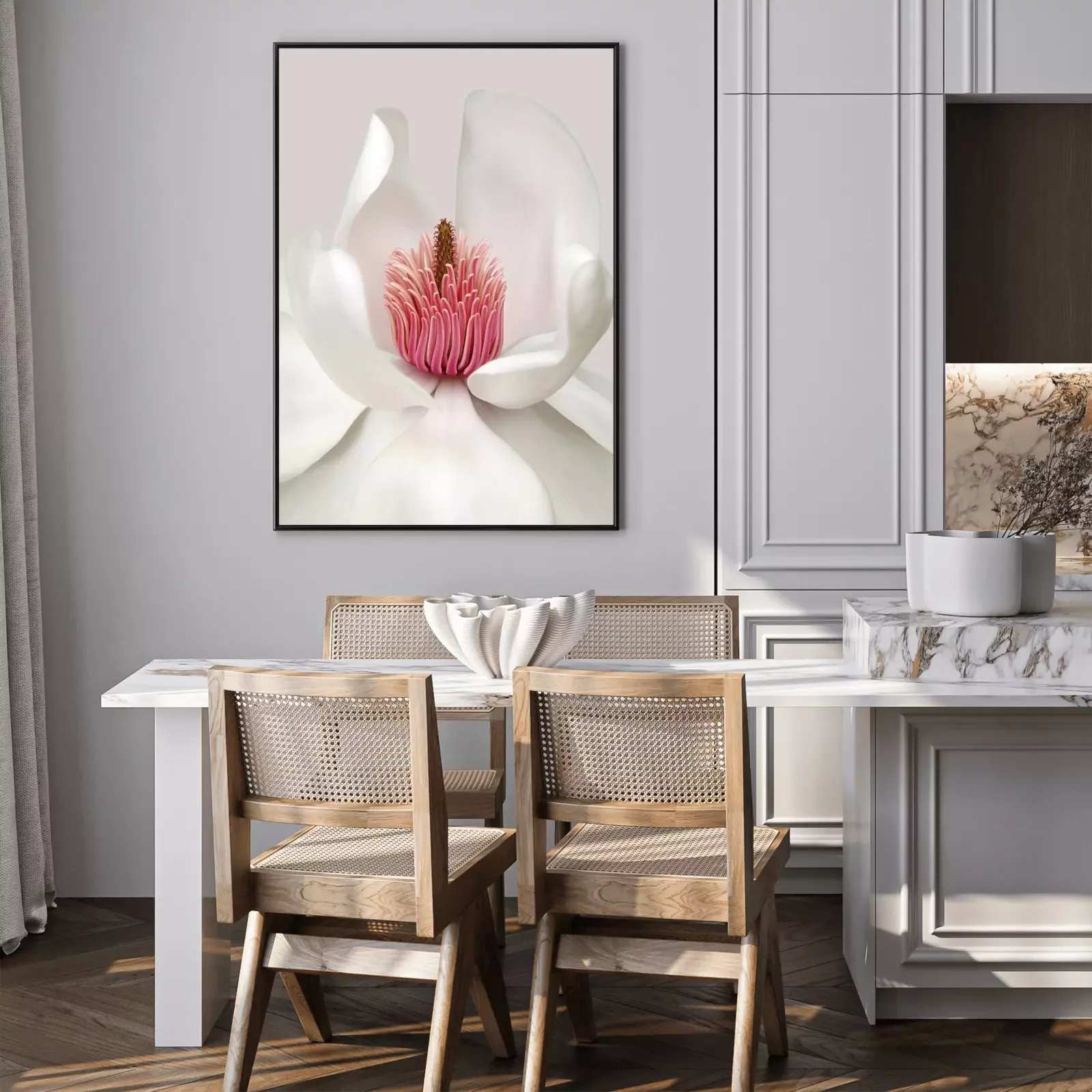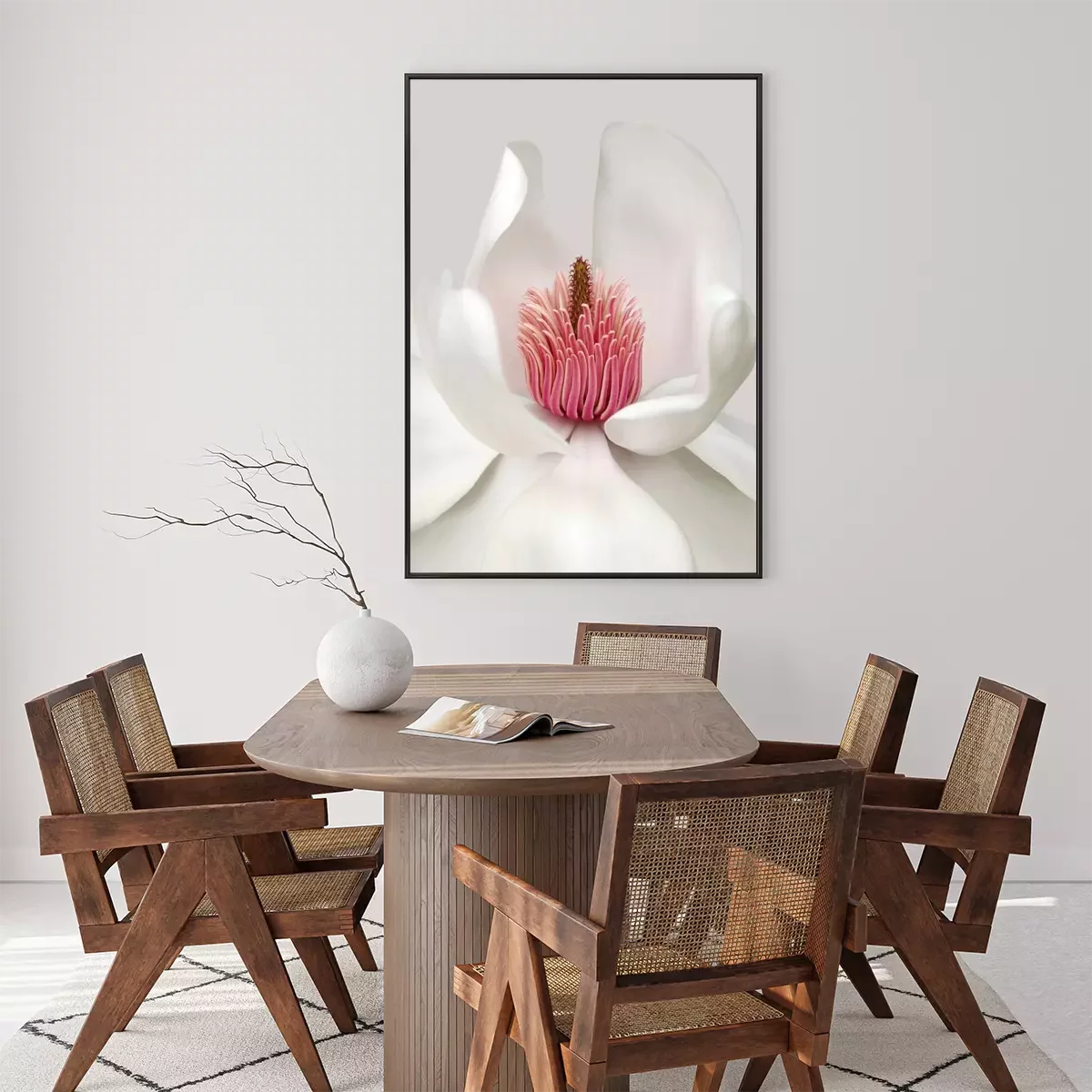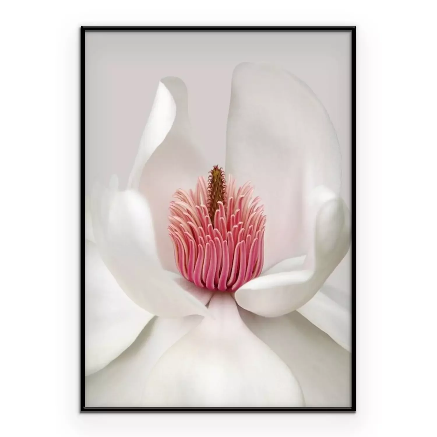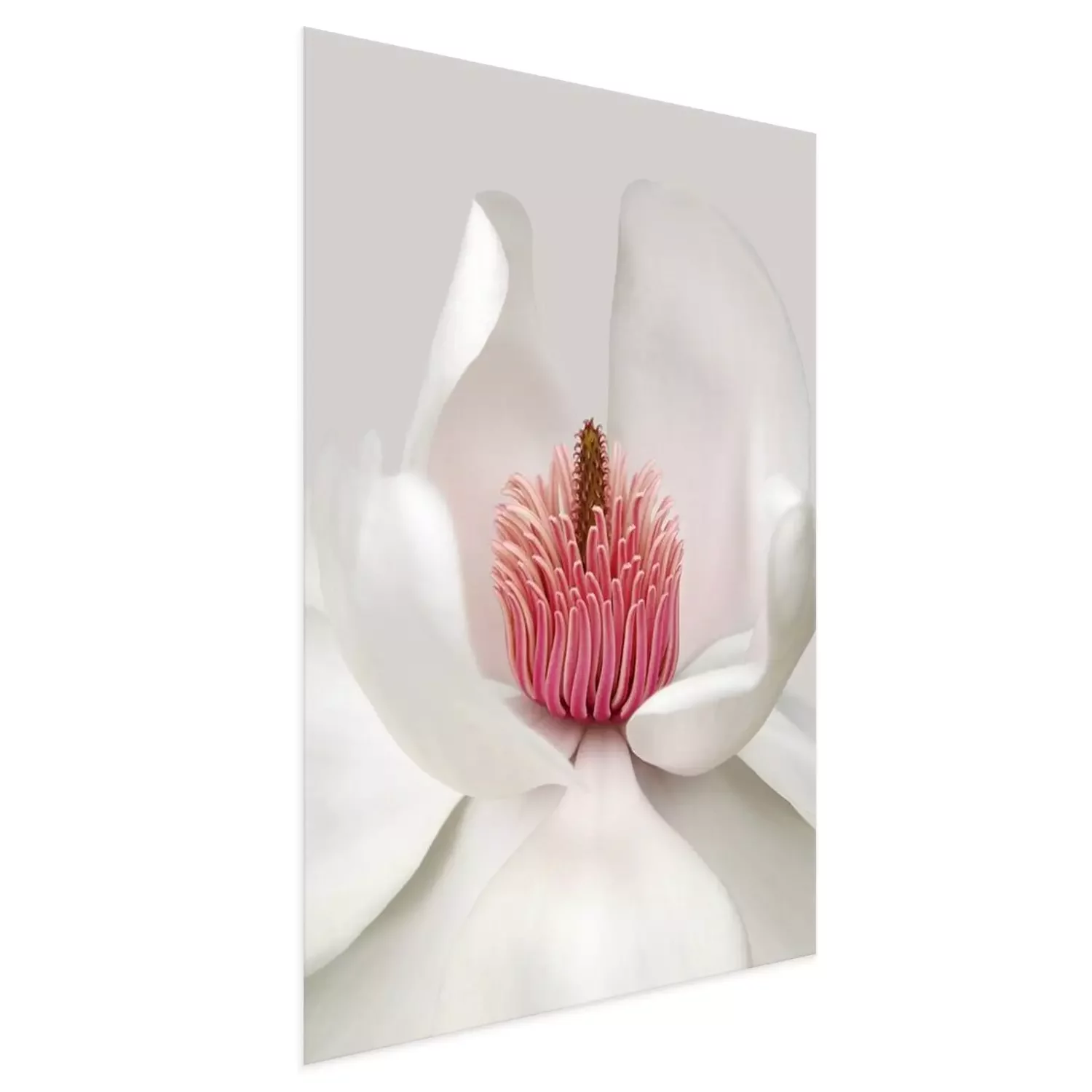 Poster: Schneeweiße Blüte mit rosa Staubgefäßen