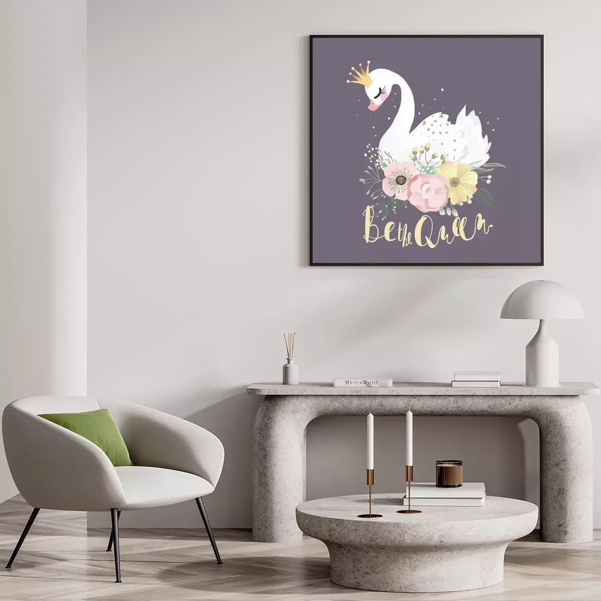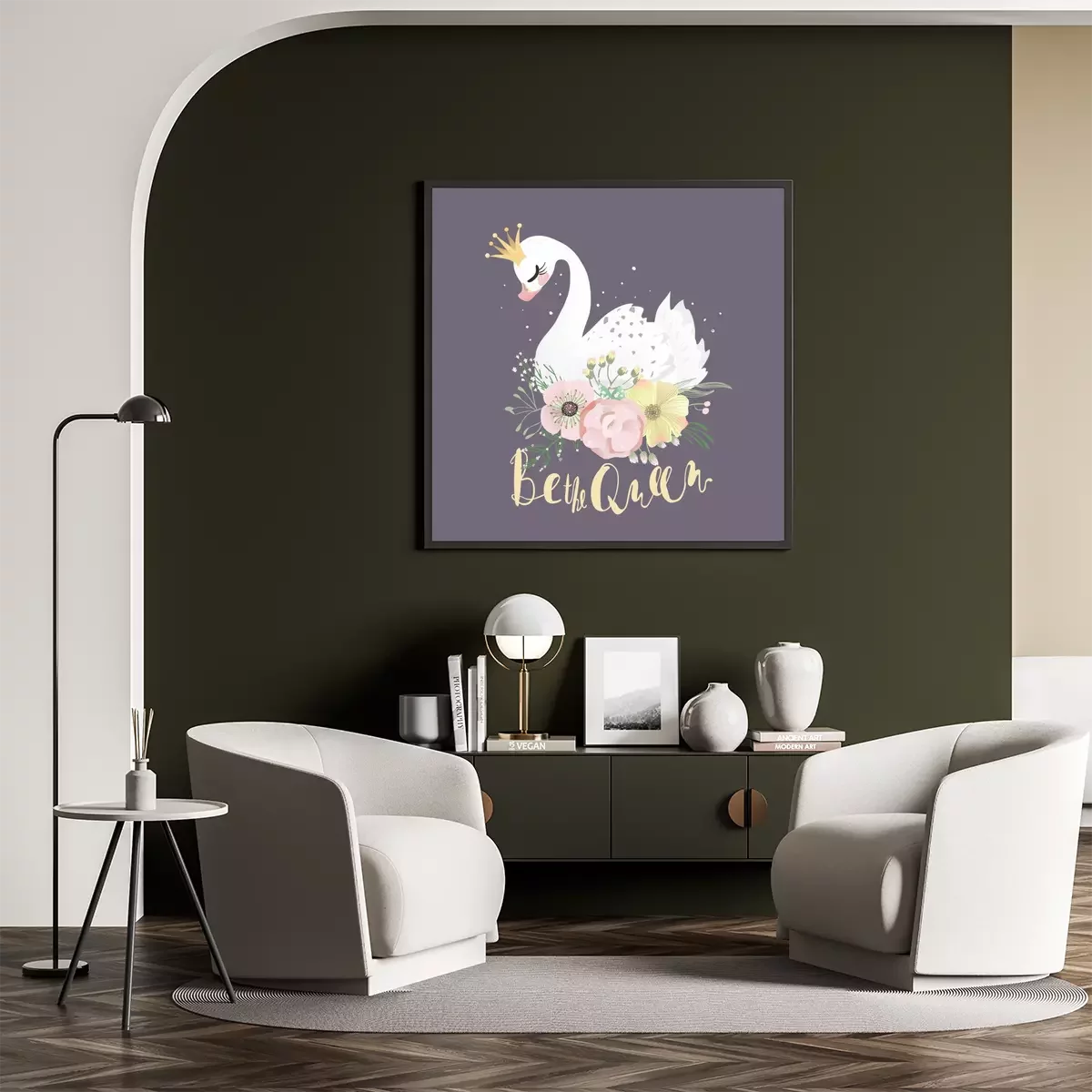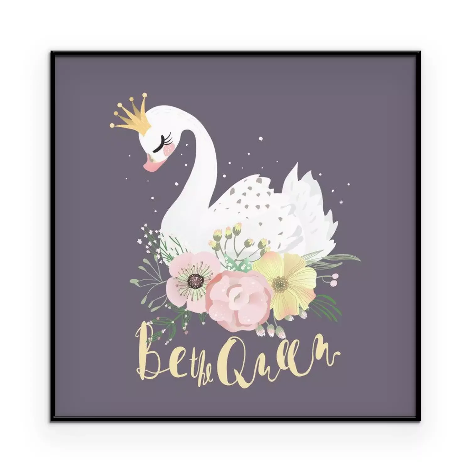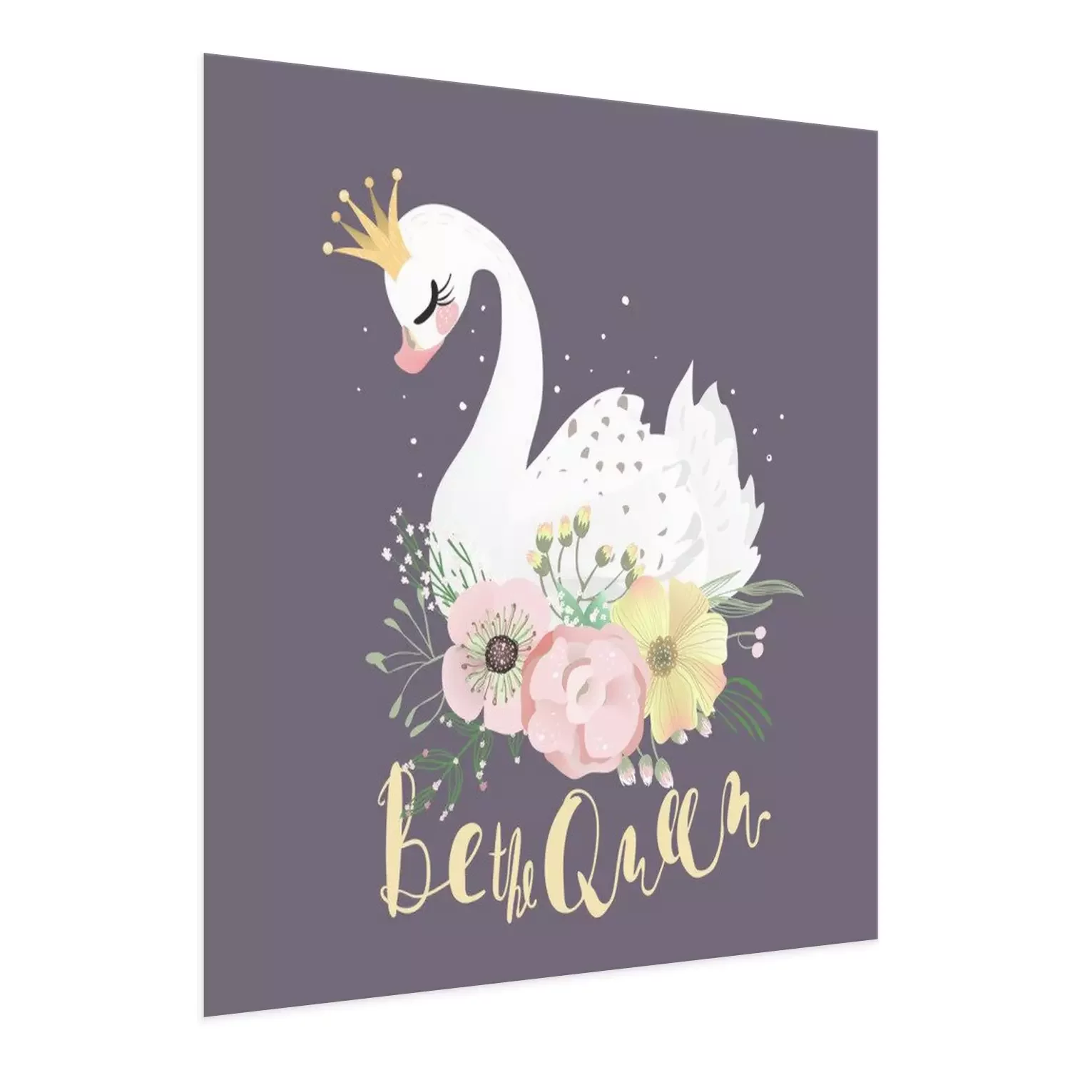 Poster: Schwan in einer Krone auf bunten Blumen