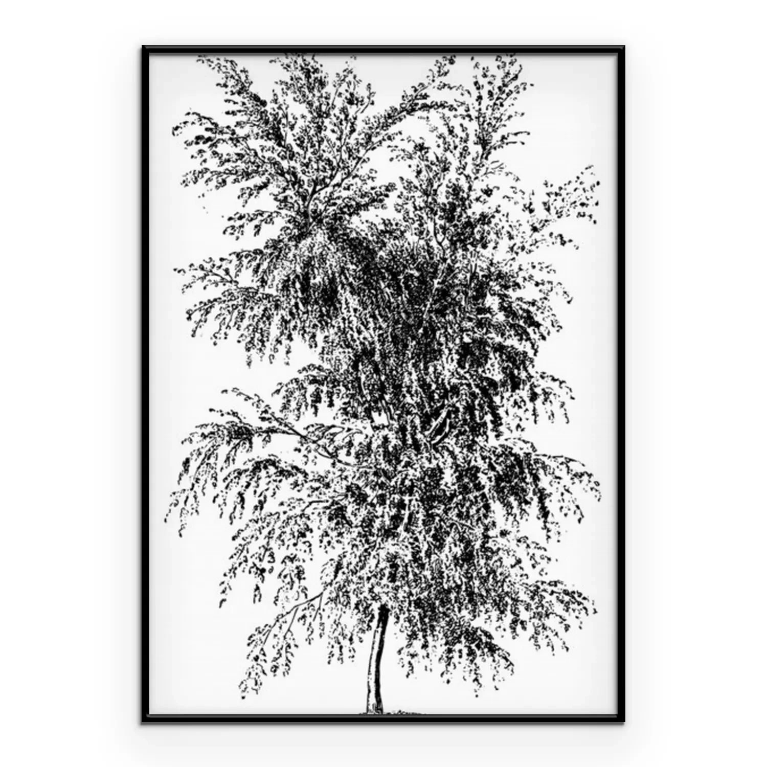 Poster: Schwarz-weiß Birke minimalistische Zeichnung