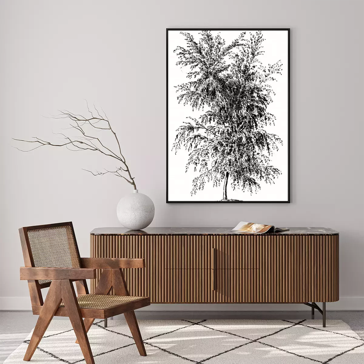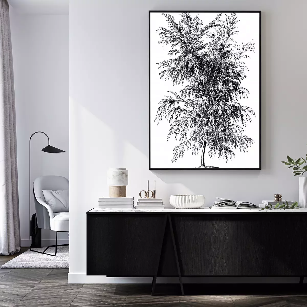 Poster Schwarz-weiß Birke minimalistische Zeichnung