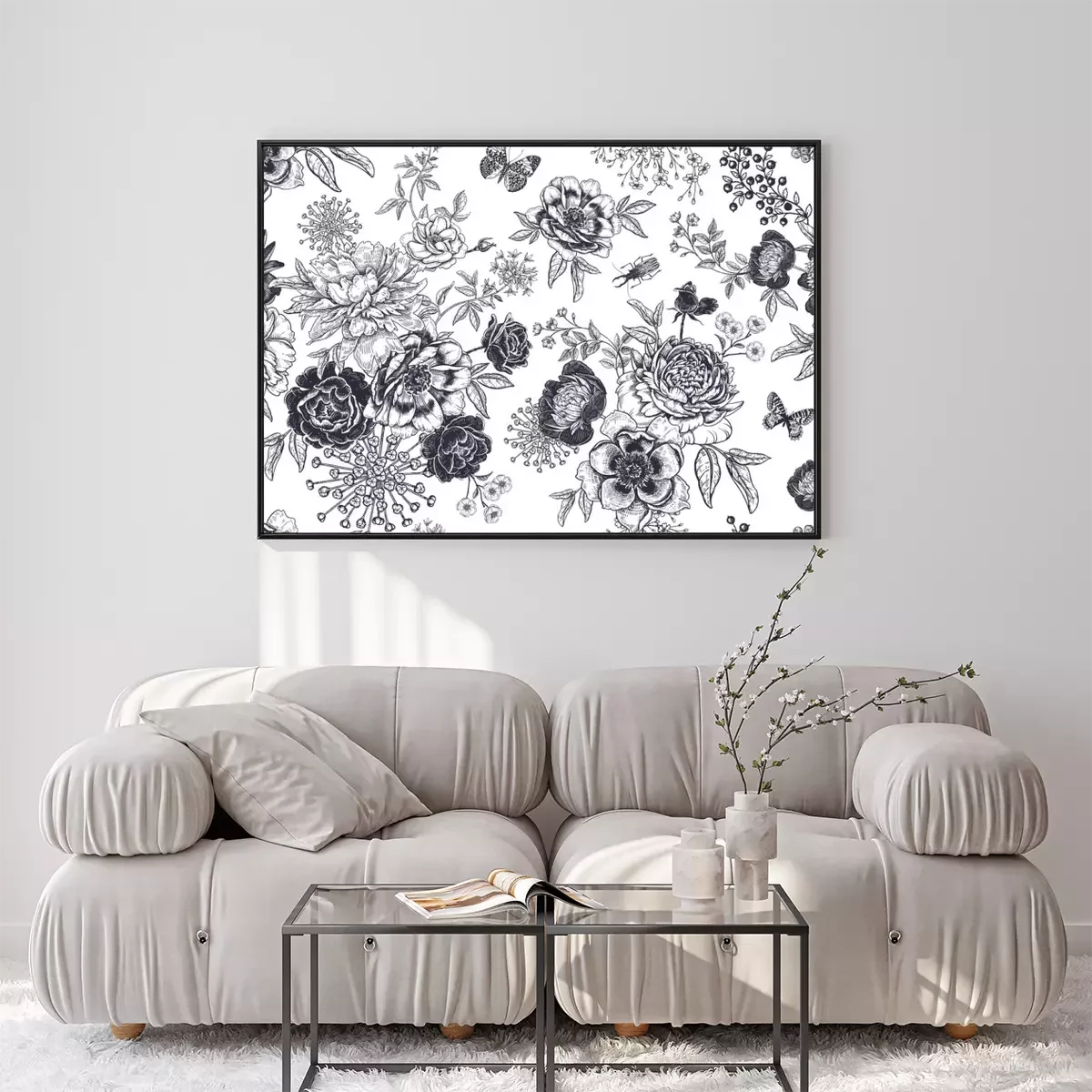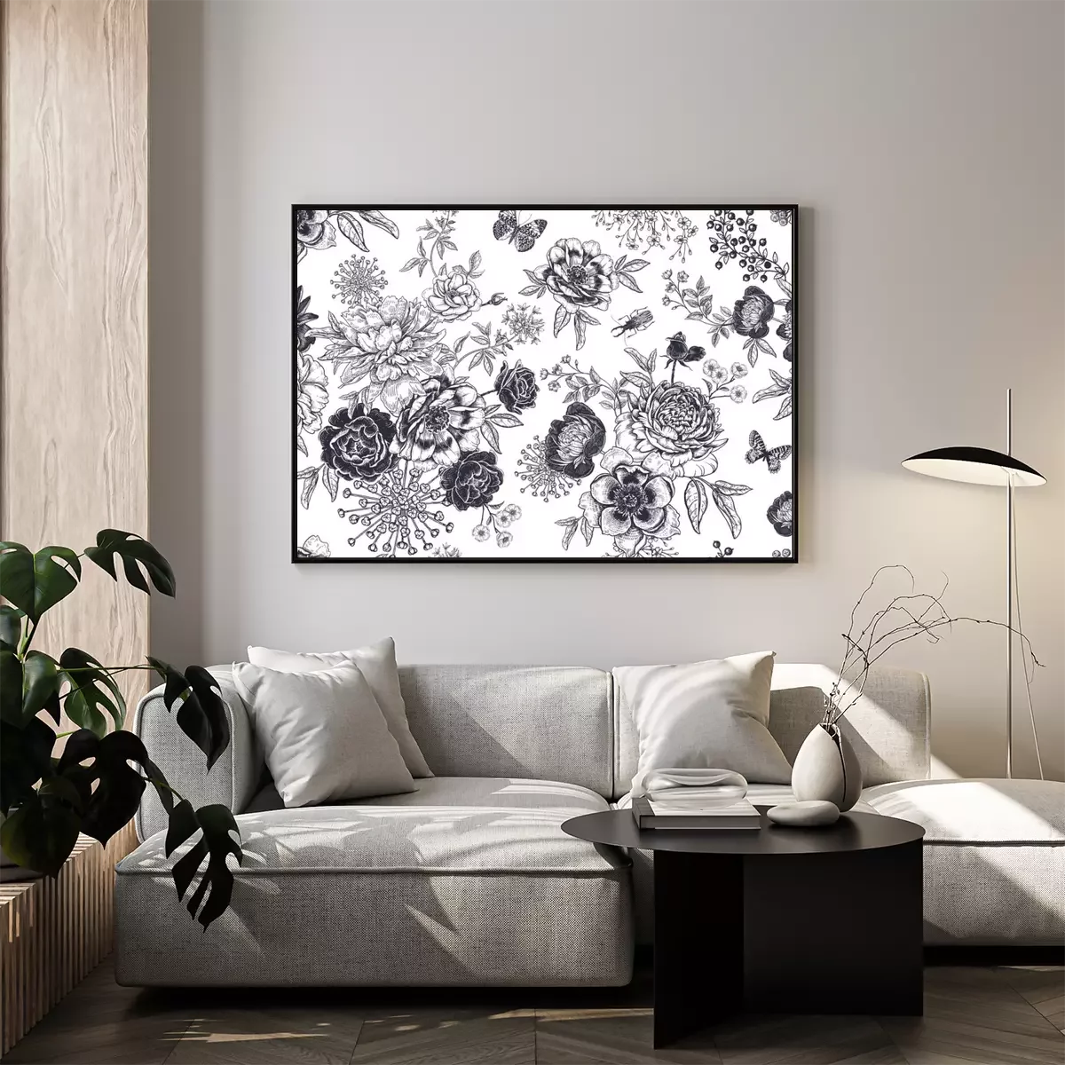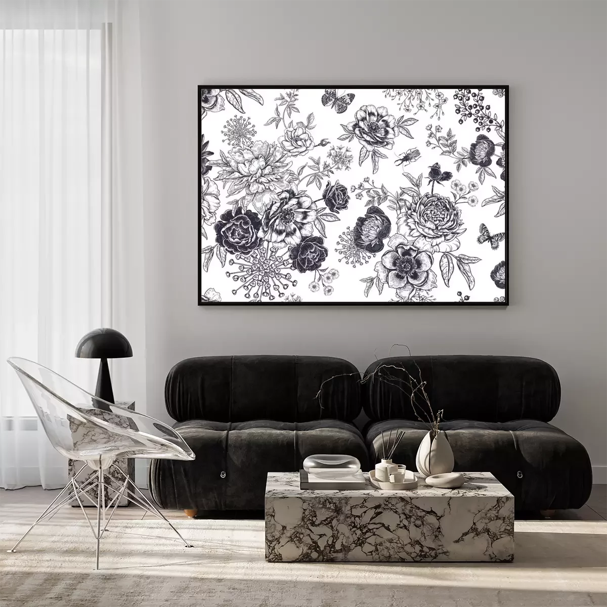 Poster: Schwarz-weiß Blumen verschiedener Sorten