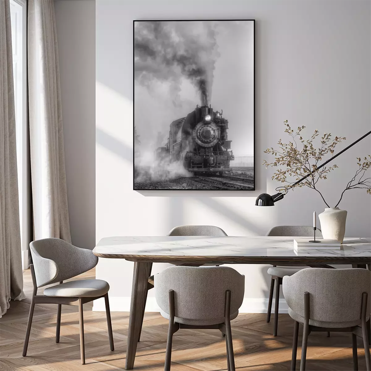 Poster: Schwarz-Weiß-Dampflokomotive