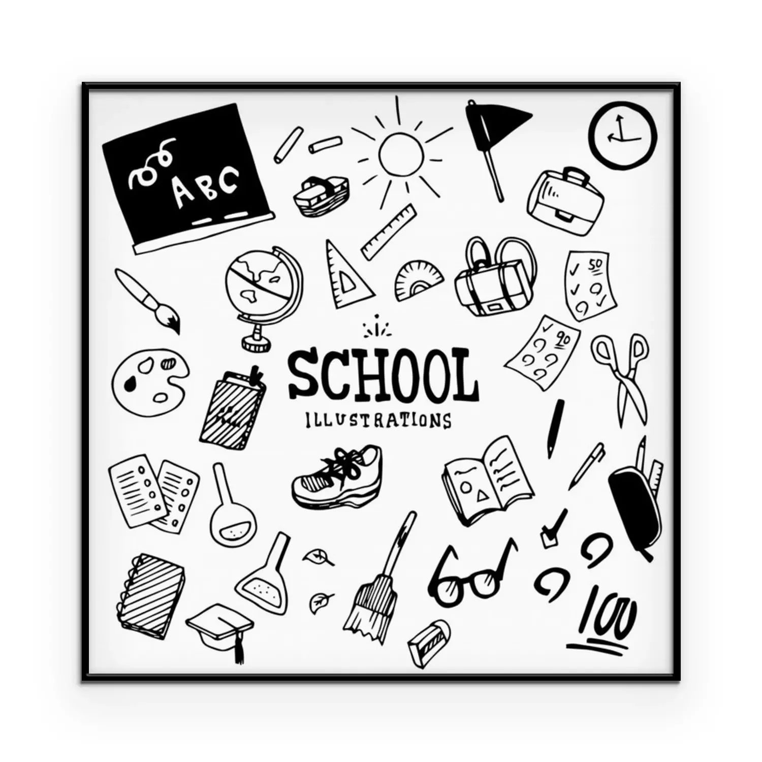 Poster Schwarz-Weiß-Illustrationen für die Schule