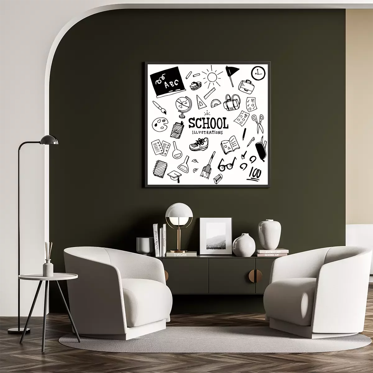 Poster: Schwarz-Weiß-Illustrationen für die Schule