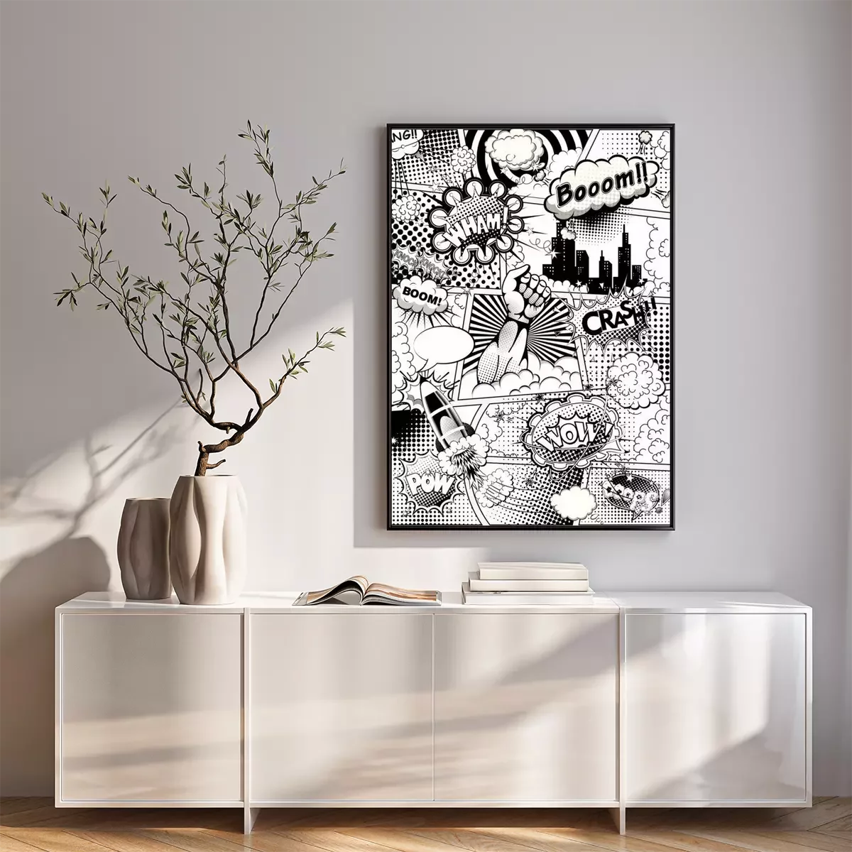 Poster Schwarz-weiß Schrift im Zeichentrickstil