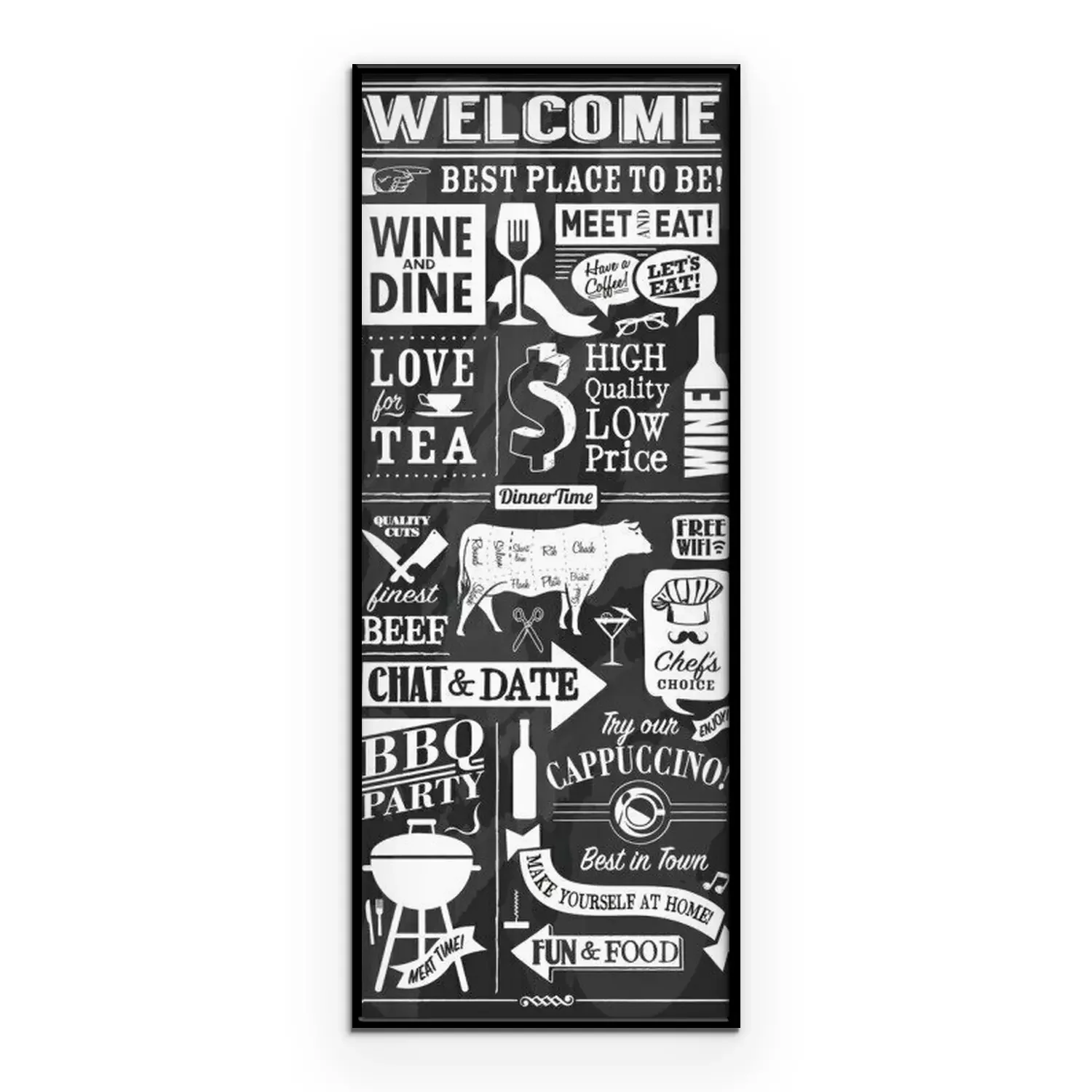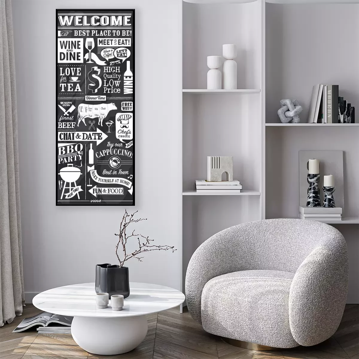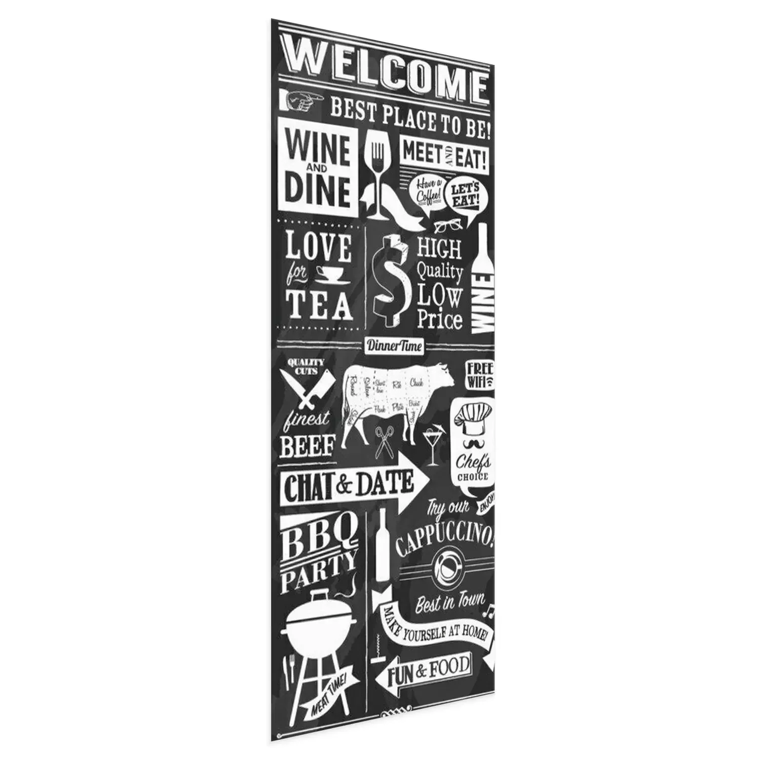Poster Schwarz-Weiß-Tafel über Lebensmittel