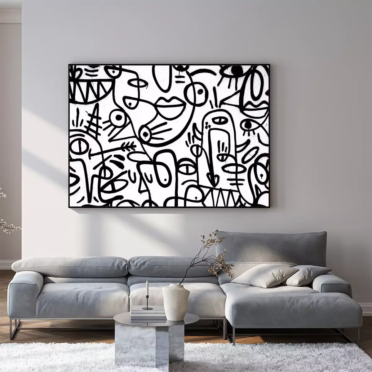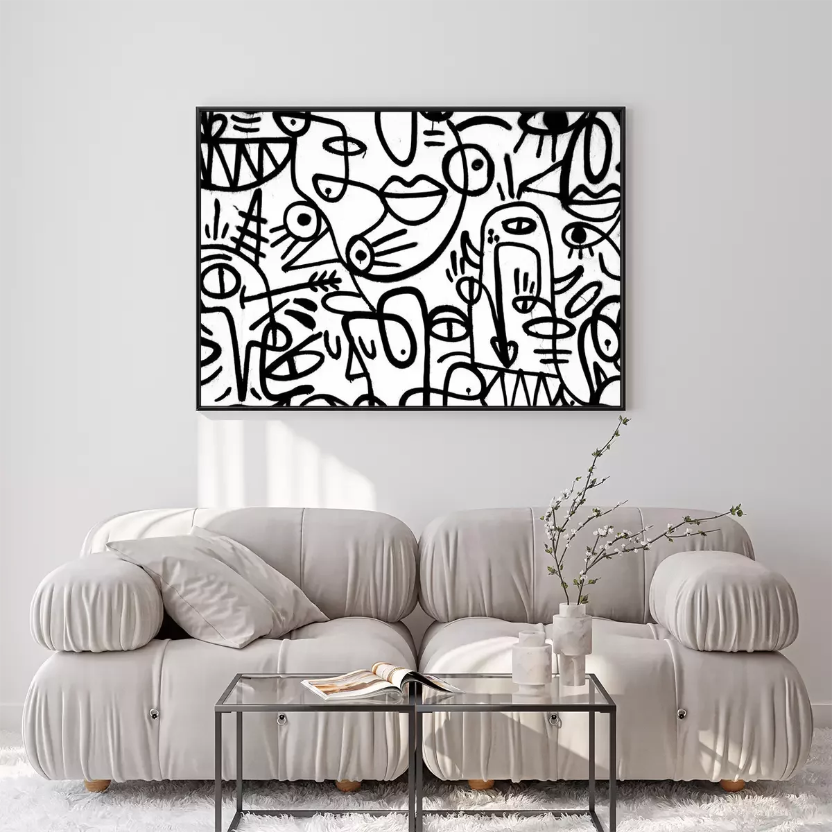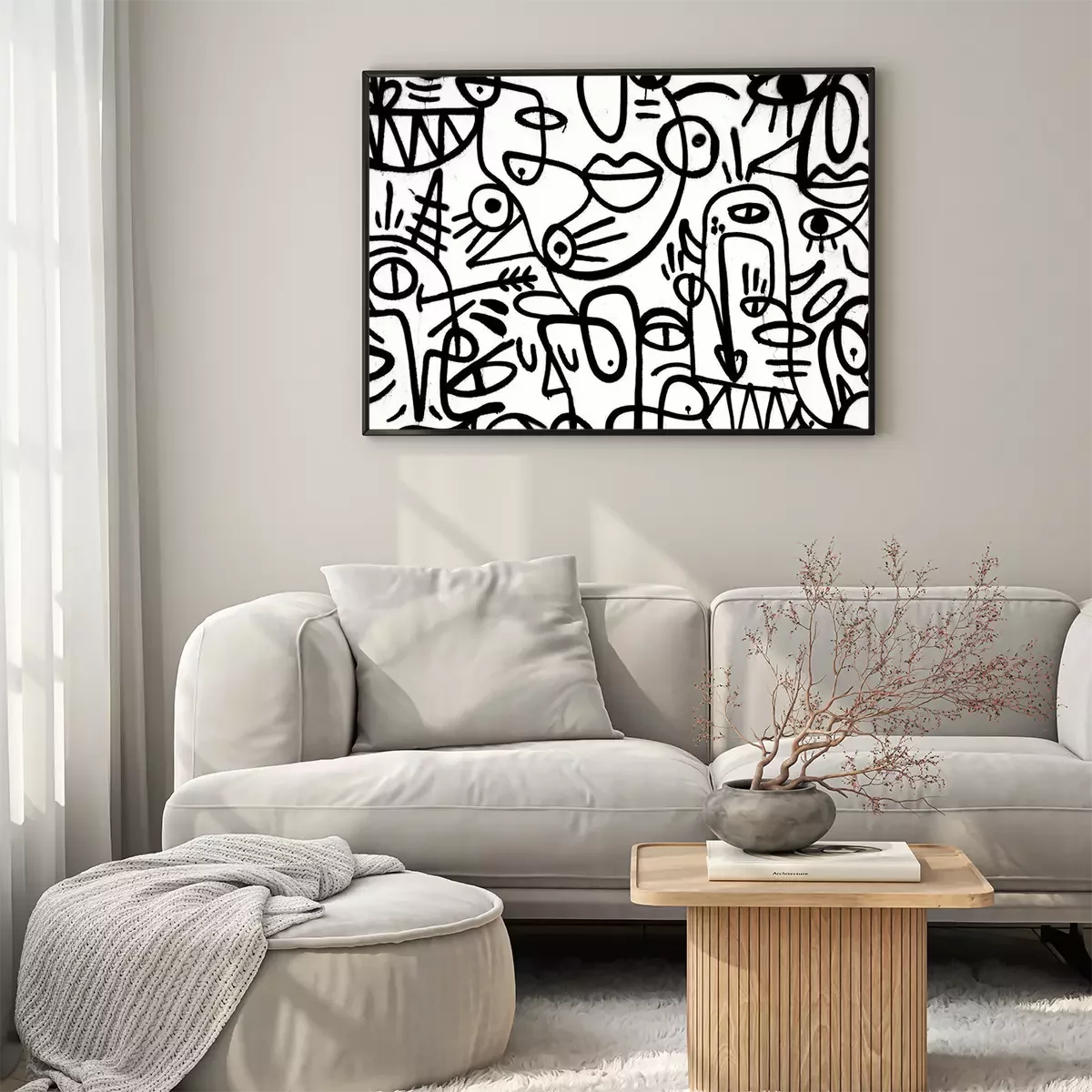 Poster Schwarz-Weiß-Zeichnung: Graffiti-Abstraktion