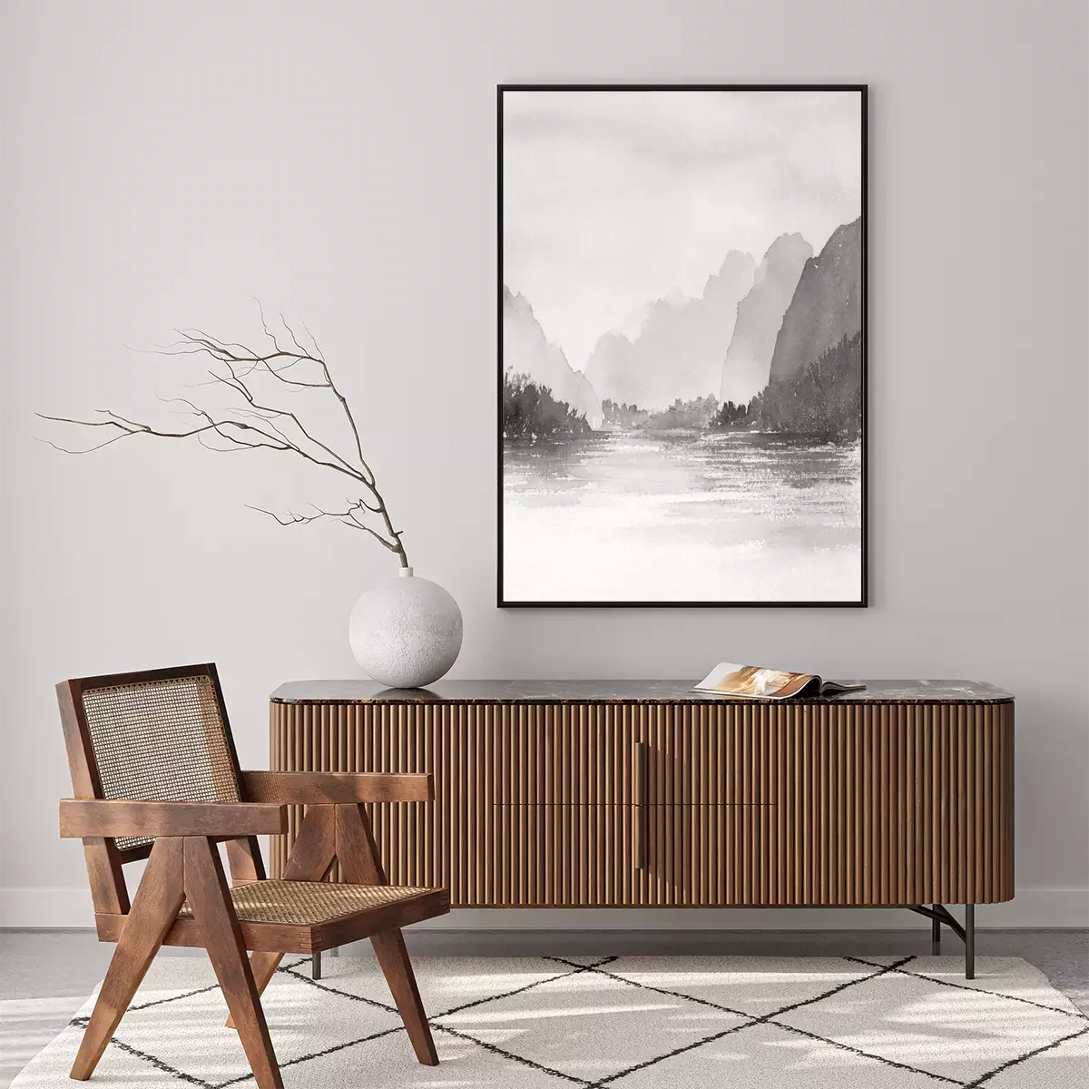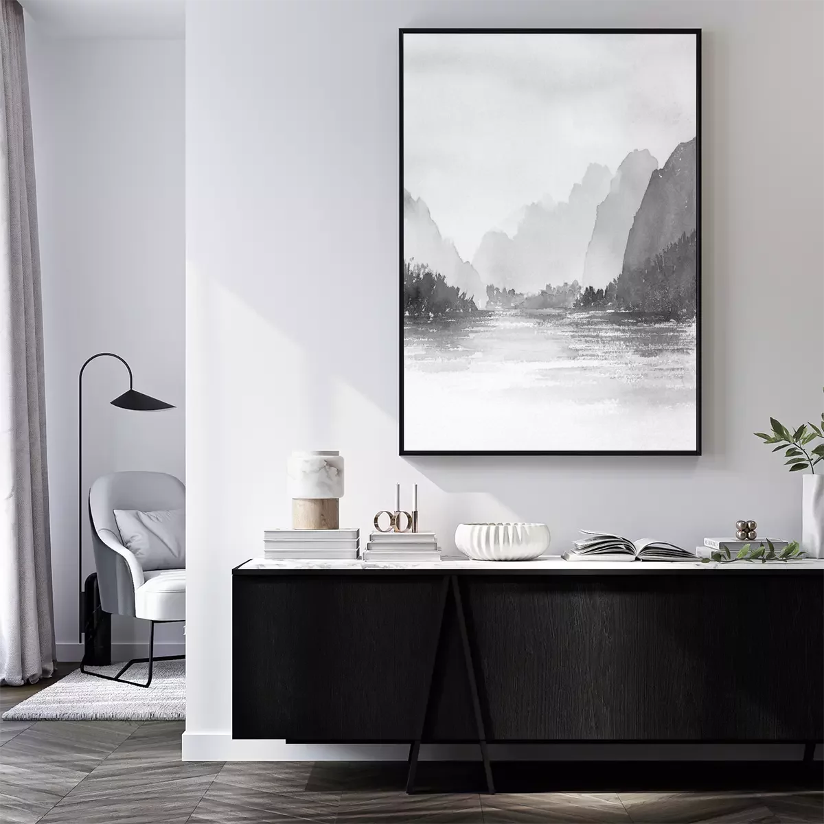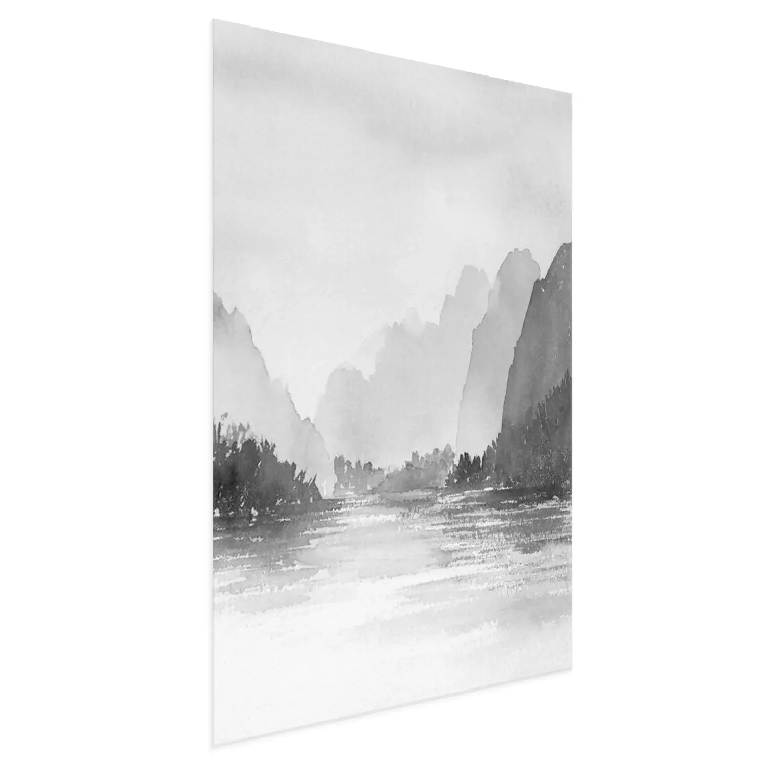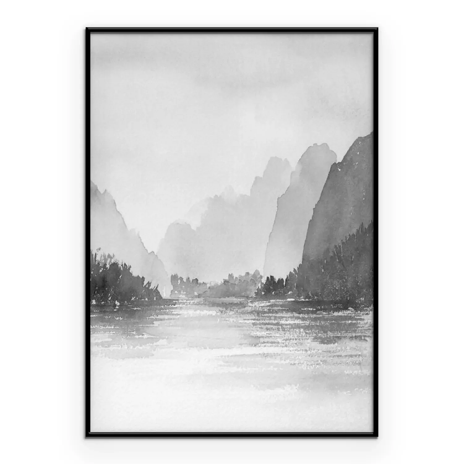 Poster: Schwarz-Weiß Zeichnungen: Berge und Meer