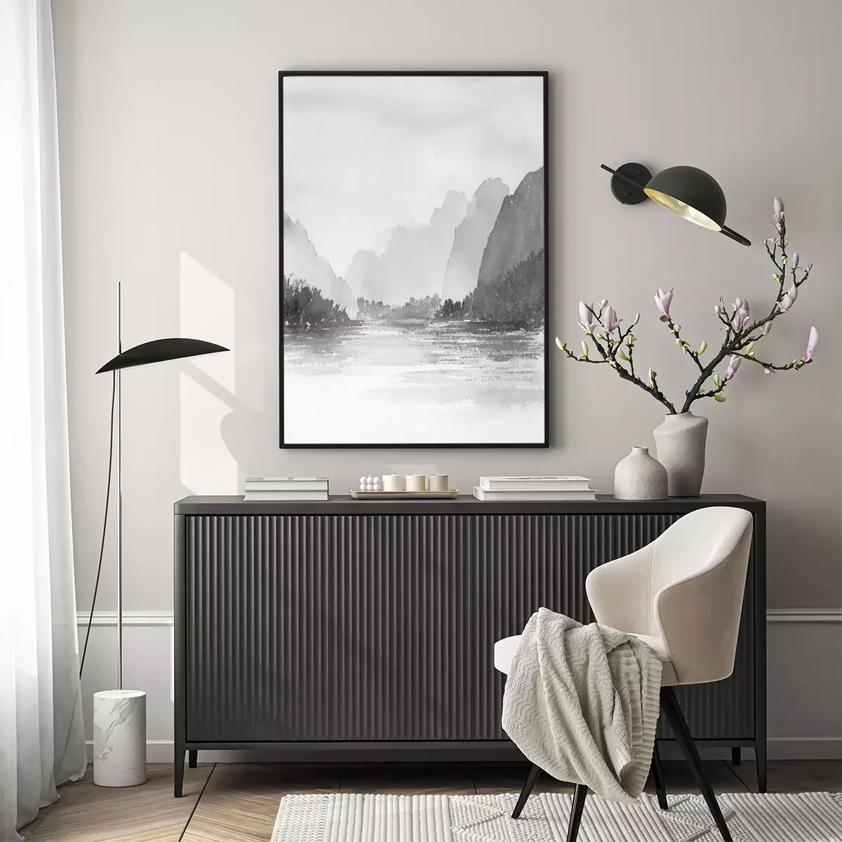 Poster Schwarz-Weiß Zeichnungen: Berge und Meer